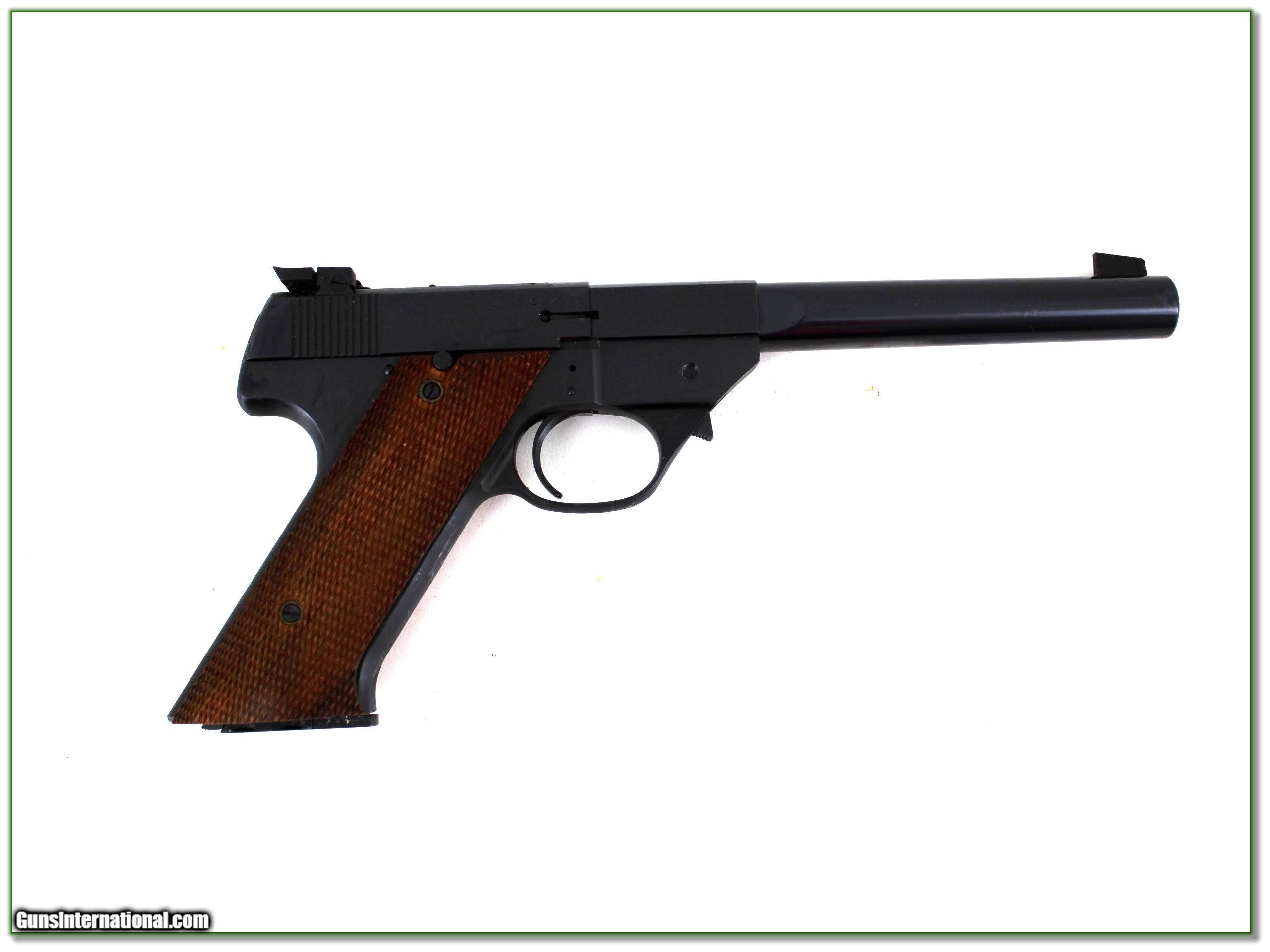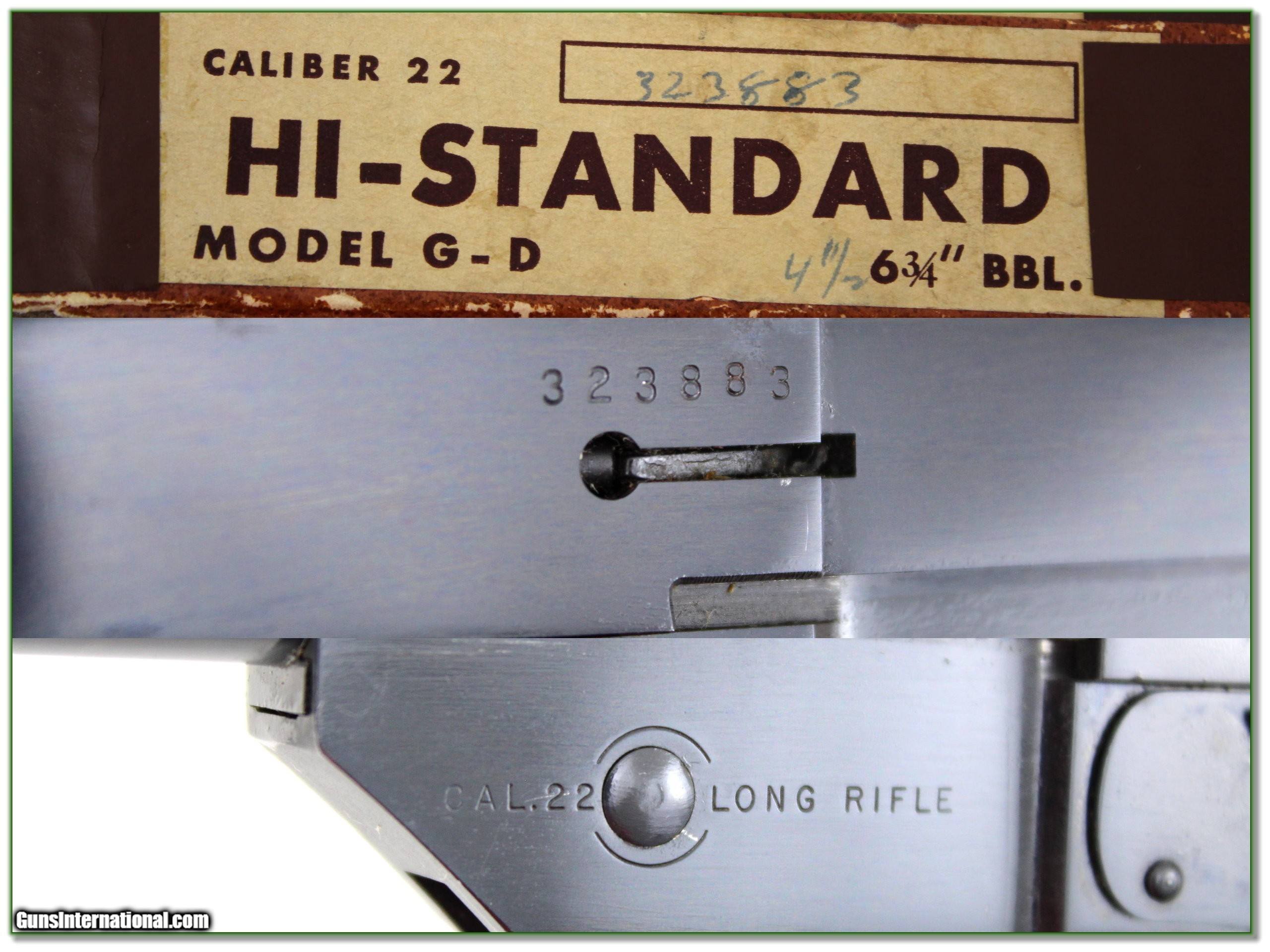 Description: Collectors, this is a top collector condition Hi-Standard Model GD 2 barrel set in 22 LR. It has a 6 5/8in and 4 3/8in barrels. I looks new and unfired with no marks I find on the metal or the wood. It comes in unmarked box that does have tape on edges. I don’t think you can find a nicer one! I am selling this one on consignment and as such lay-a-way can’t be used. It does of course have the standard 3-day inspection. Shipping and insurance is $49. Please email me with any questions or larger pictures. (Consign your quality firearms with Shooting Investments for only 12%! Let me know if you have any you would like to sell!) 22-1086 Payment: Payment is by Money Order, Cashier’s Check or Personal Check. I can now also accept Credit Cards (MasterCard, Visa, Discover & American Express) with a 3% convenience fee. Shipping: The shipping charge will be listed in each description. It is $49 for most firearms. Some heavy guns or those insured for over $2000 will be higher. Shipments to Alaska and Hawaii are higher because air shipment is required. Most firearms are shipped on Tuesday and Thursday and usually in 5 days of receipt of payment. We package all shipments carefully and insure them. Optics are shipped Priority Mail and most other non-firearm shipments are shipped First Class. Returns: Our return policy is simple. If for any reason you are not pleased with your purchase, you may return your item for a full refund of purchase price. Ammunition cannot be returned. It is important to us that you are happy. Guns cannot be fired or dissembled before returning them and they must be returned in the same condition as received. Notification of a return must occur within 3 days of receipt at your dealer. Shipping, convenience and dealer fees are not refundable and are the responsibility of the buyer. Lay-a-way: If needed, we offer a 60 day lay-a-way option on most firearms. It is 1/3 now, 1/3 in 30 days and 1/3 in 60 days. Lay-a-way firearm sales are final and cannot be returned. If a lay-a-way is not completed the first payment cannot be refunded. Consigning your firearms with Shooting Investments: We will help you get top dollar for your firearms. While most local guns shops charge 20% or more, our fee is only 12% with a minimum of $75. At your local gun shop it might take months to sell. Selling on-line provides instant access to thousands of interested buyers. You won’t find any other on-line dealer willing to sell your firearms for only 12% or listing every gun on 3 separate s. Selling through an House typically costs the seller 15% and the buyer an addition 15% (so 30%) and you have to wait several months to sell and longer to receive funds. If properly priced, we will sell your firearms within a few weeks. Send us an email or give us a call and we’ll explain how easy it is for you to get top dollar. Trading: Trading for us is really just buying your gun to re-sell. If you have a gun you want to trade, please email a picture and we will let you know what we can give for it. You will always get more if we sell it for you on consignment. SOLD |