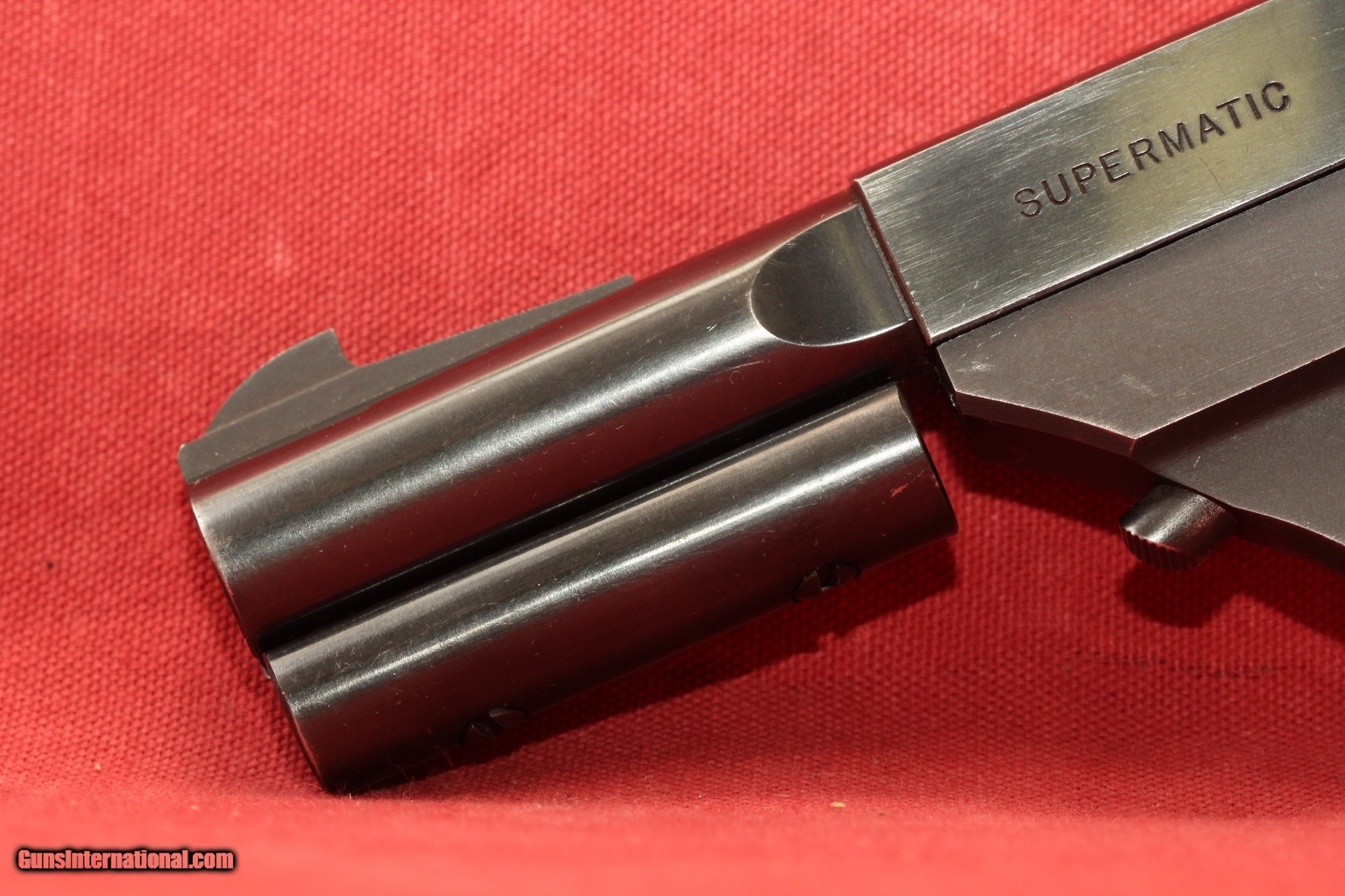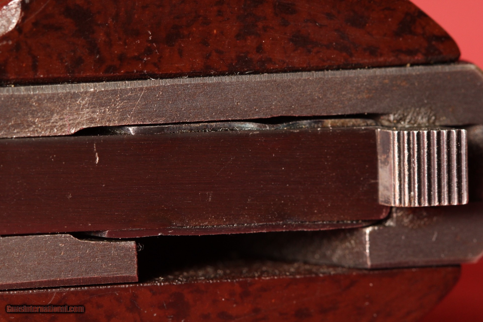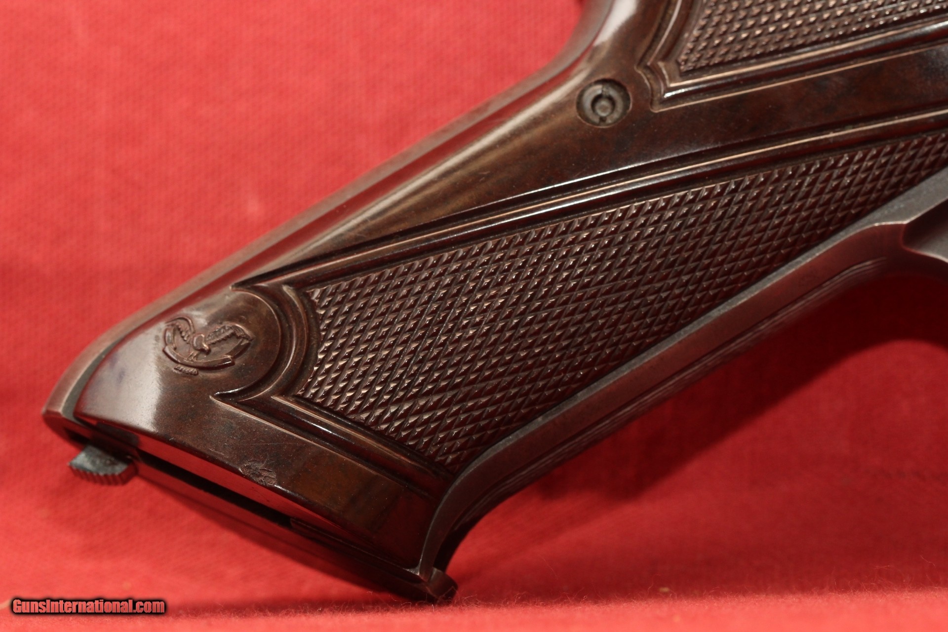 Description: 22lr, serial number 4751XX. Made in Hamden Ct. 4.5" barrel. Overall in good condition, shows normal wear. Meatl shows wear overall, and especially on sharp edges, muzzle and grip frame. Small areas of light pitting on right side of barrel and frame. Bore is excellent. Grips are in good condition, small chip out of bottom of right panel, 2 small chips out of bottom of left panel. No cracks. Comes with barrel weight. More photos on request. Please add $35.00 for shipping and insurance. SOLD AS-IS, NO RETURNS. SOLD |