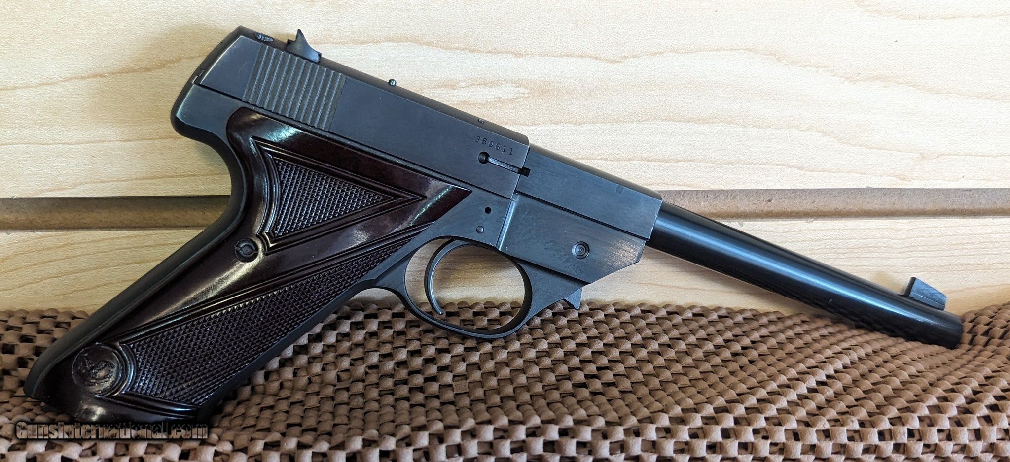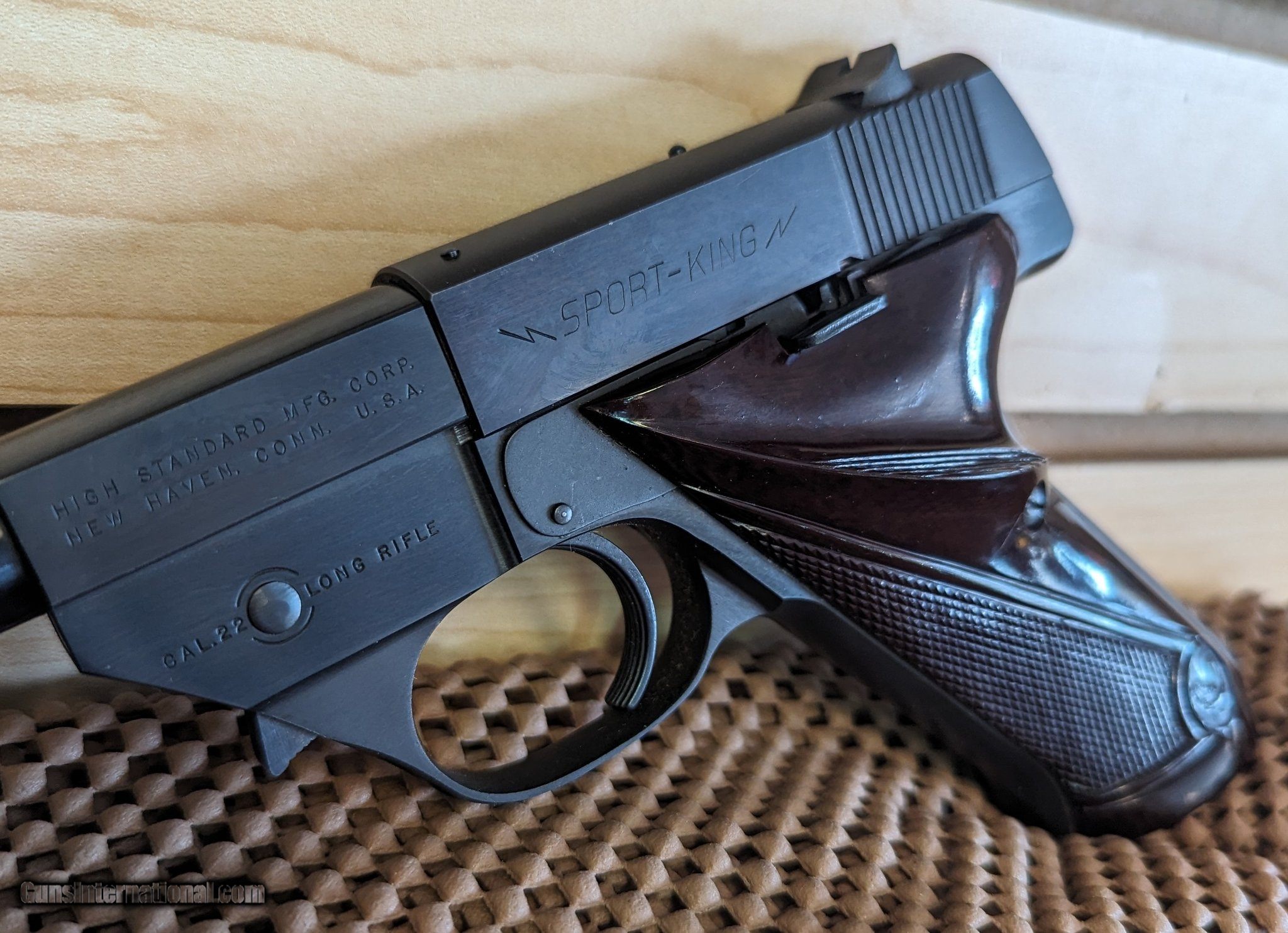 Description: Guns Listing ID: 1306776 The . 22 LR chambered semi-automatic High Standard Sport King wears a 6.5-inch round, blued steel barrel. SOLD Manufacturer: HI-STANDARD Model: SPORT KING Caliber Info: .22 LR Condition: Used - Non-Certified Barrels: 6.5 BARREL Finish: BLACK |