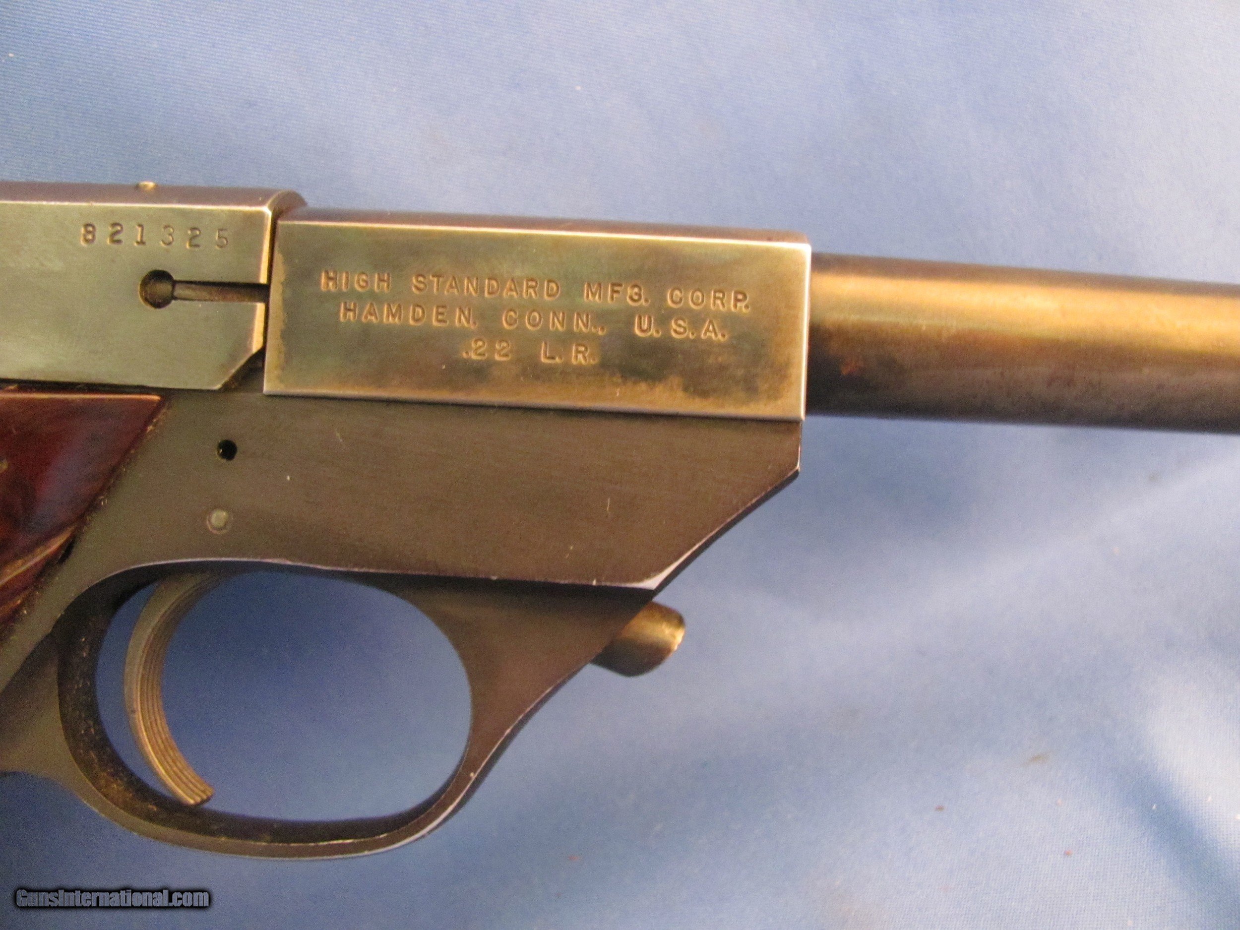 Description: THIS IS A HI STANDARD SPORT-KING LIGHTWEIGHT SEMI AUTO 22LR CALIBER PISTOL THE BLUE FINISH IS AS SUCH, THE COLD-BLUE IS WORN AND ON THE LEFT SIDE THE NAME "RILEY HELMS" WAS ETCHETCHED (SHOWN) IF YOU WANT MORE PHOTOS ASK BEFORE YOU BUY THE FACTORY SYNTHETIC GRIPS SHOW SOME WEAR BUT NOT BAD GOOD NEWS, THE BORE OF THE 6-3/4” BARREL IS BRIGHT, SHINY AND AT LEAST 95% WITH NO PITTING I FIRED 3 ROUNDS OF GRAB-BAG RANDOM 22LR THROUGH IT AND SHE CYCLED JUST FINE AS SHOWN IN THESE MANY CLOSE UP PICTURES WITH NOTHING ELSE. DUE THE FAST PACE AND VOLATILITY OF THE CURRENT GUN MARKET THERE IS NO INSPECTION PERIOD OFFERED OR GIVEN SO BUY KNOWING THAT A CURIO OR STANDARD FFL WILL WORK FOR THIS RIFLE BUT UNDERSTAND THAT WE WILL PUT A SIGNATURE ON THE PACKAGE SO IT WON'T GET LEFT ON A PORCH BUYER PAYS A FIXED AMOUNT OF 35.00 GROUND INSURED SHIPPING TO THE LOWER 48 MAINLAND STATES. SHIPPING TO ALASKA, HAWAII OR PUERTO RICO WOULD BE 78.00 NO SHIPMENTS OUTSIDE THE USA. MISSOURI RESIDENTS DO PAY A 8.575% SALES TAX. NO EXTRA CHARGE FOR CREDIT CARDS. BRANDON'S GUN TRADING CO LLC 321 EAST 20TH ST JOPLIN MO. 64804 (417)-623-8787 FAX (417)-623-2326 9-5 TUESDAY-SATURDAY CENTRAL TIME WE ARE ALSO CLOSED THE 1'ST SATURDAY OF EVERY MONTH AND HOLIDAYS. DO NOT BUY IF YOU CAN'T PAY FOR IT WITHIN 2 WEEKS OF THE LISTING CLOSE. INVENTORY REFERENCE: CC1267 PLEASE NOTE, UPS SERVICE HAS GOTTEN SO BAD UNDER CURRENT MANAGEMENT THAT WE WON’T SHIP UPS UNLESS WE ABSOLUTELY HAVE TOO. WHEN WE DOUBLE PACK, INSURE, ADD SIGNATURE, USE GOOD BOXES AND UPS EVEN NOTES THEY DAMAGED THE ITEM AND THEY STILL WONT PAY. ALSO, ANY INSURANCE WE DO PUT ON OUR PACKAGES IS VOID IF YOU OR YOUR DEALER THROWS AWAY THE BOX, ANY PACKING MATERIALS OR FAILS TO PICTURE AND NOTIFY US AND THE SHIPPING COMPANY IMMEDIATELY SOLD Curio/Relic: Yes Manufacturer: HI STANDARD Model: SPORT KING LIGHT WIEGHT Bore Condition: EXCELLENT Action: SEMI AUTO Item Location: JOPLIN MO |