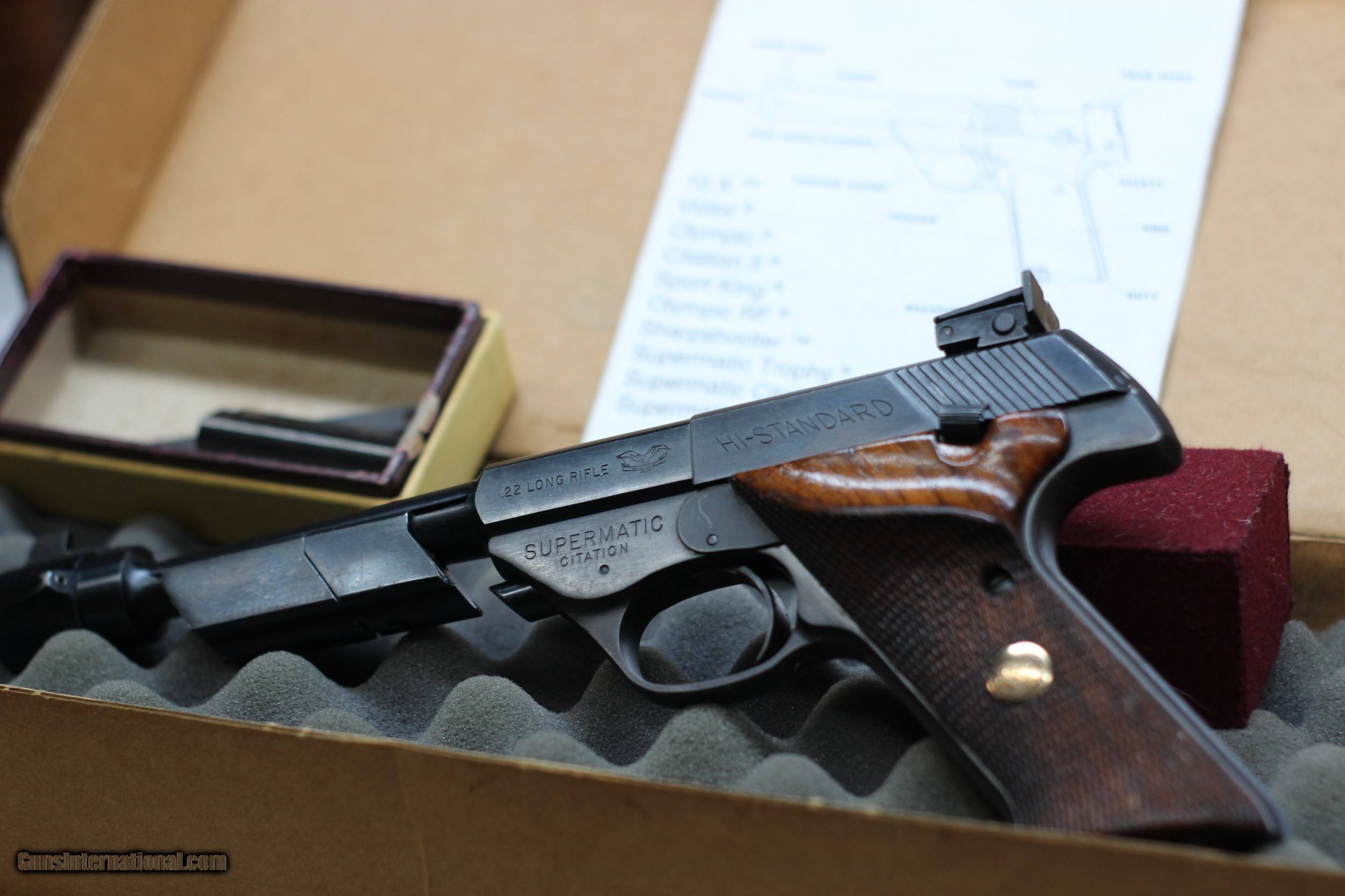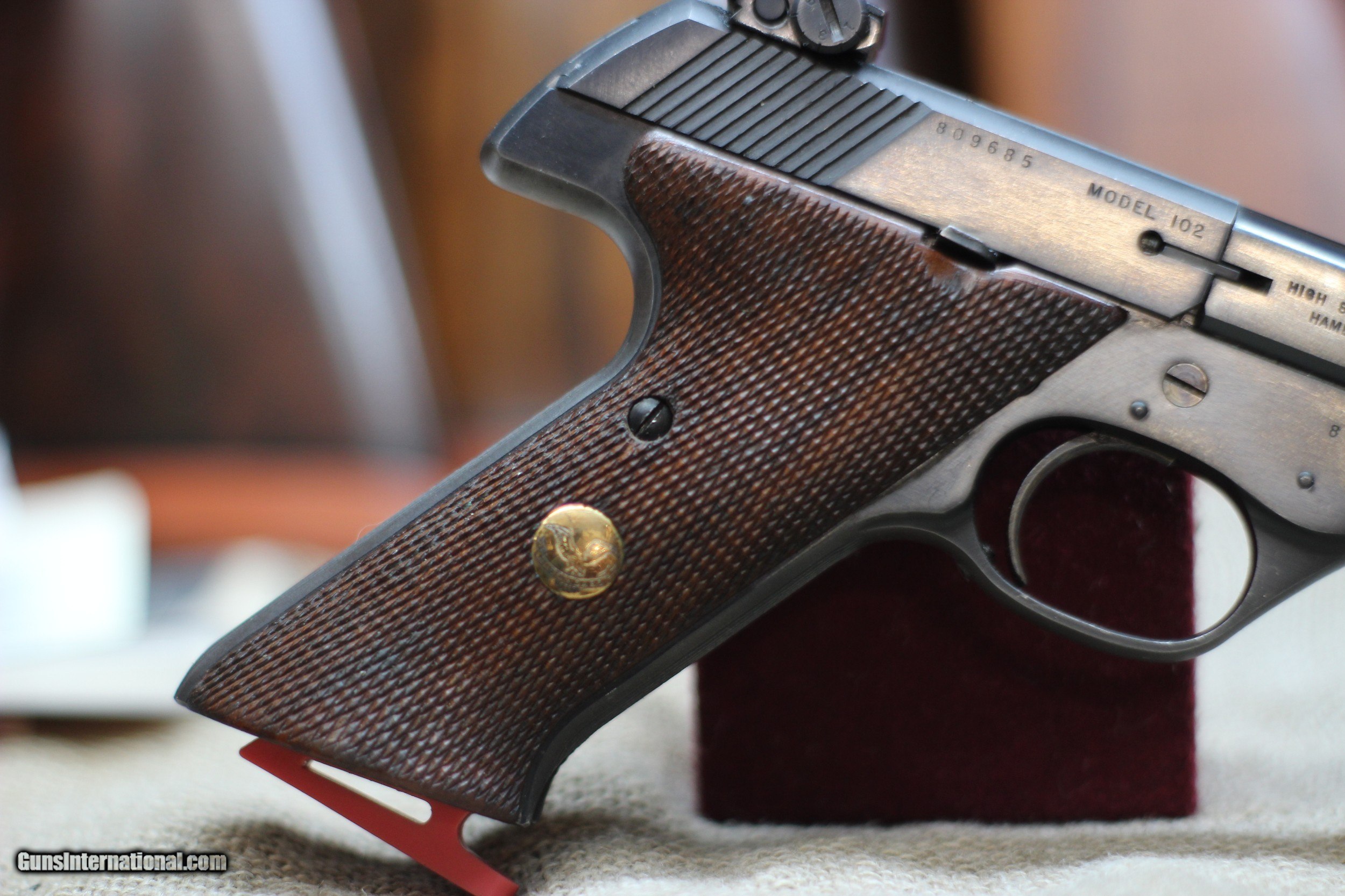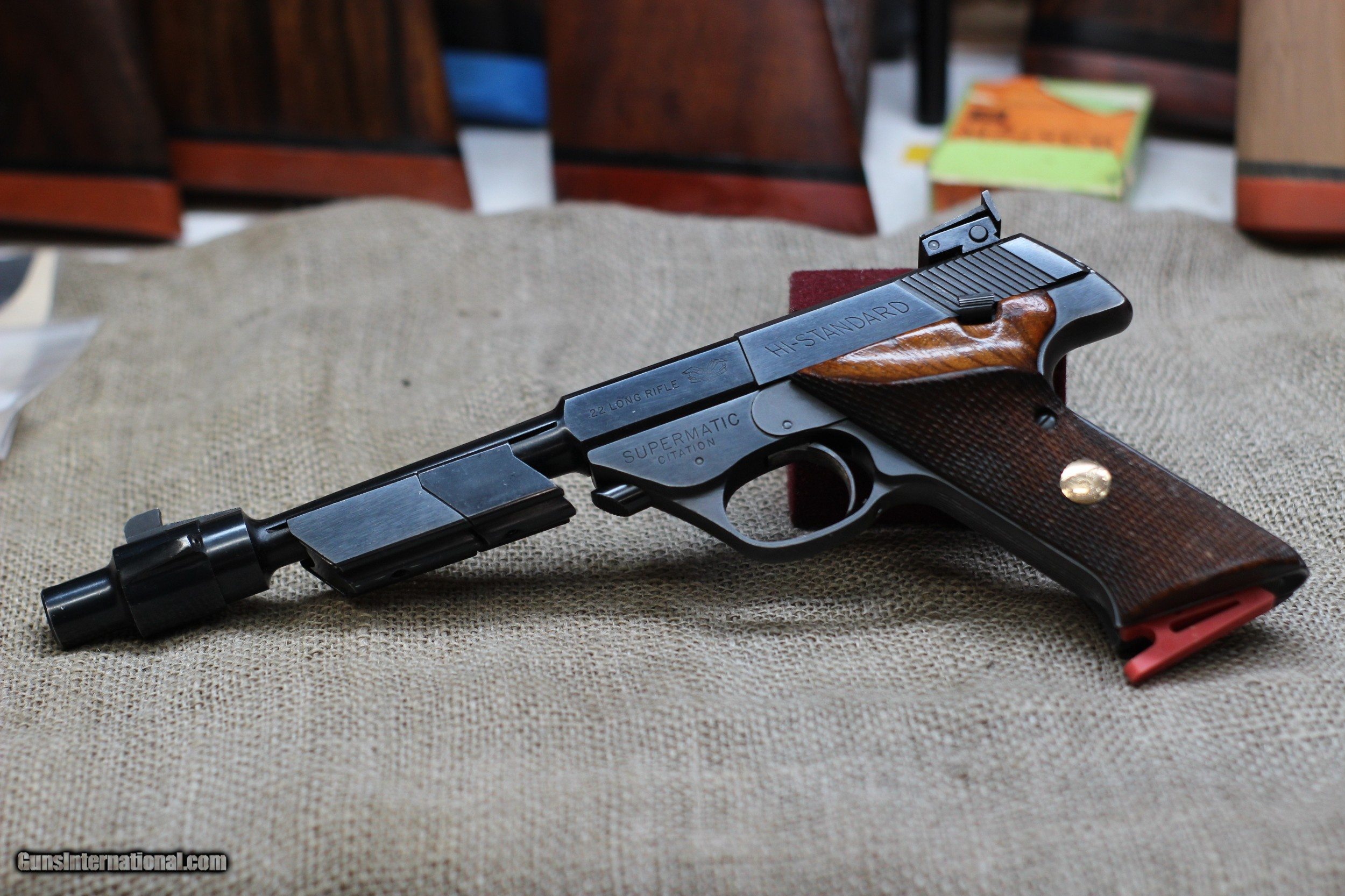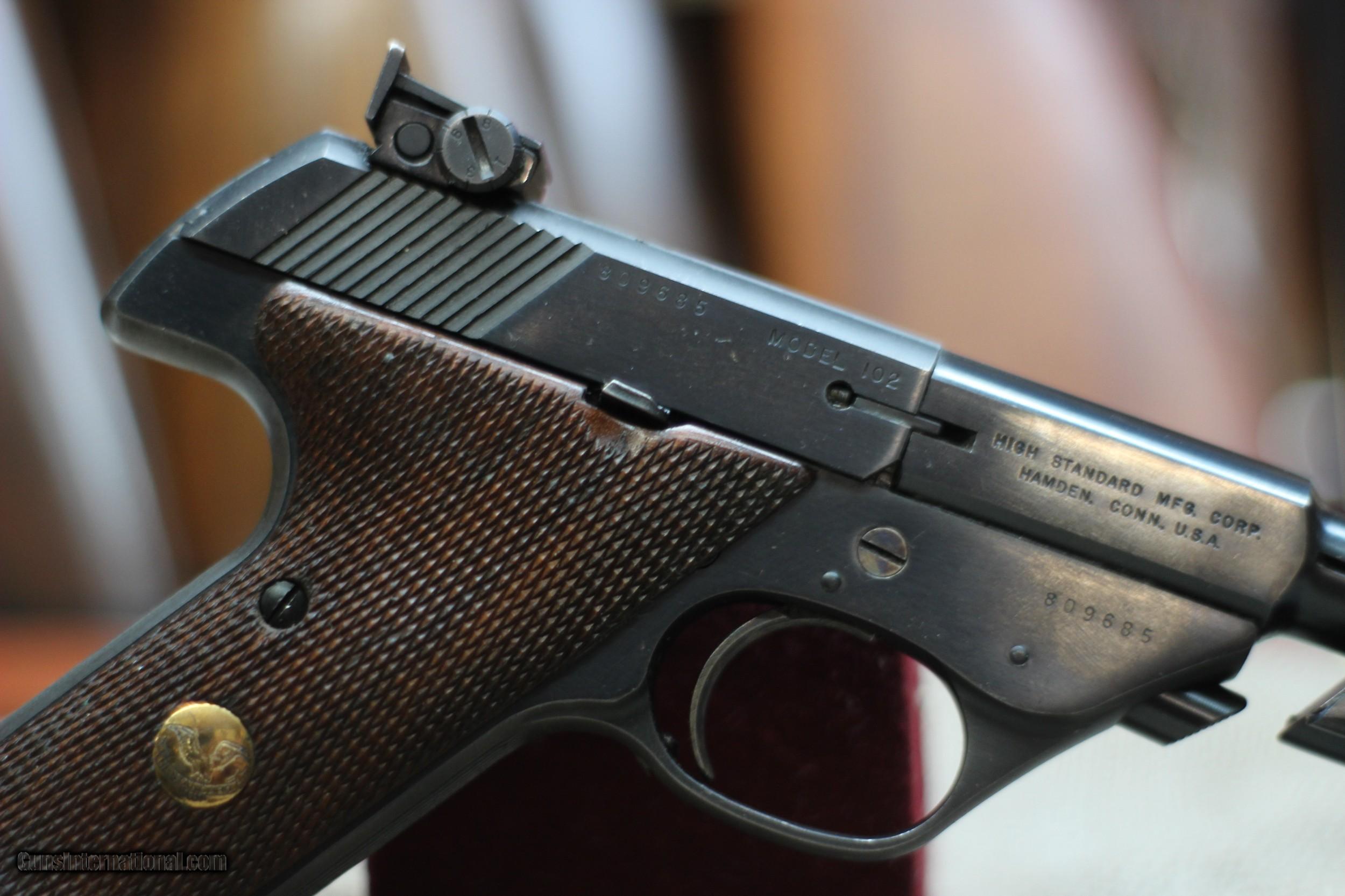 Description: 6 ¾” tapered fluted barrel with weights & muzzle brake Hamden manufacture. All original gun with Hi-Standard, correct grips, & extra barrel weights in box. 98% blue Excellent bore Serial #: 809xxx Price: $895 Shipping: $40 We accept cash, check or money order. All payments take 5 days to clear. SOLD |