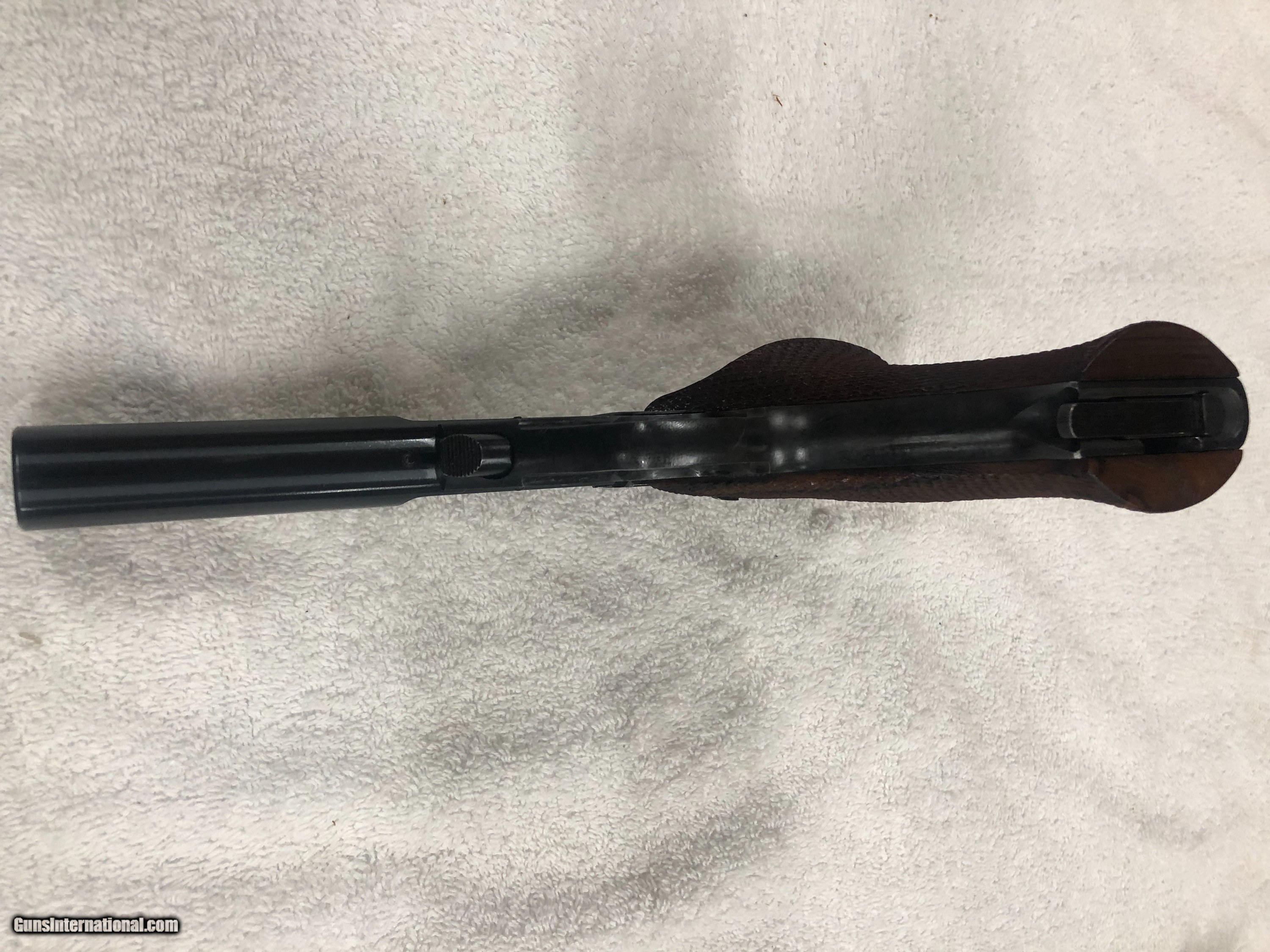 Description: This fine pistol has adjustable target sites, 5 1/2 inch heavy barrel and hand cut checkered thumb rest pistol grips. Condition: Excelent + Ser #: 2499XXX NOTE: If you have a genuine interest, please phone me directly at: 802-293-4570 and I will be happy make any arrangements and answer any questions you may have while I am actually holding the gun in my hand... SOLD Curio/Relic: Yes |