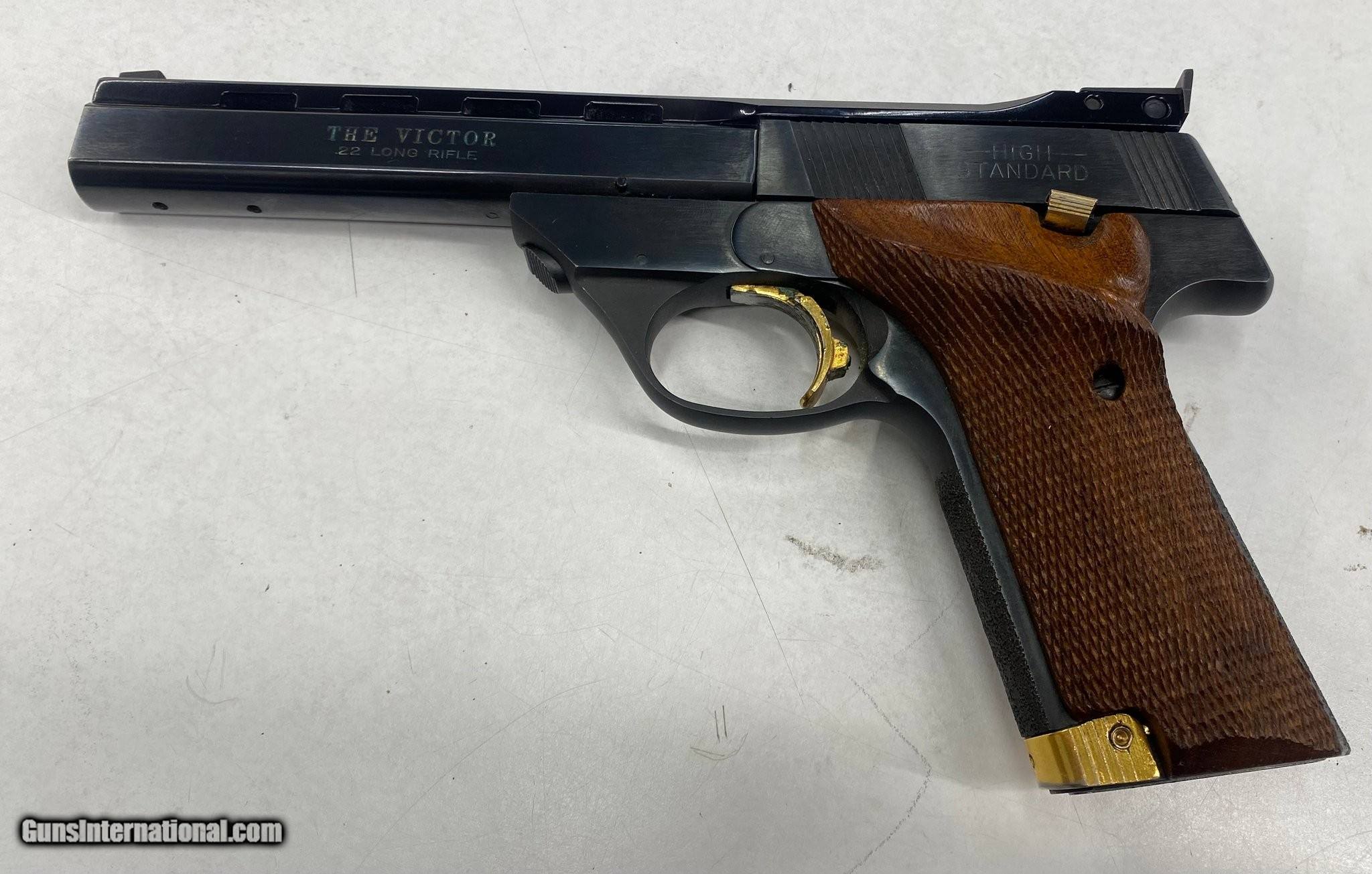 Description: Guns Listing ID: 584935 High Standard The Victor model 22LR semi auto pistol. This classic is in great shape except for the trigger it has a slight amount corrosion on it. The rest of the gun looks great Manufacturer: HI-STANDARD Model: THE VICTOR Caliber Info: .22 CAL Condition: Used - Non-Certified Barrels: 5.5" BARREL Action: SEMI AUTOMATIC Finish: blue Price: $895.99 Contact Seller |