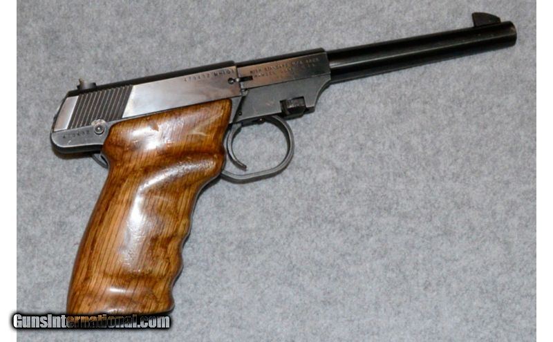 Description: SOLD Caliber Info: .22 Long Rifle Metal Condition: Fair, some thinning around the muzzle and many small scratches across the pistol Wood Condition: Good Bore Condition: Good Barrels: 6.5" Straight taper barrel Triggers: Factory trigger Stock: Aftermarket fingergroove grips Weight: 2lbs 2oz Sights: Fixed front & rear sights Extras: Comes with a set of extra grips. Item Location: Lacey, WA |