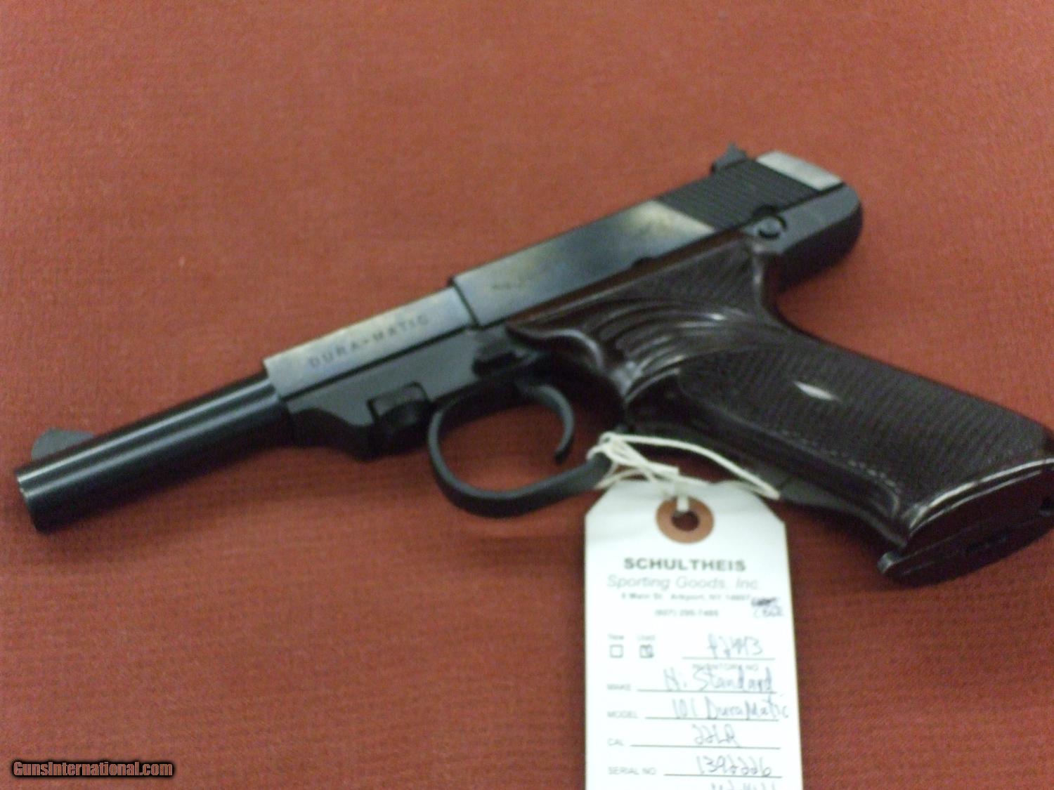 Description: High Standard 101 Dura-Matic 22LR, 4 1/2" bbl, 99% blue, near mint. SOLD |