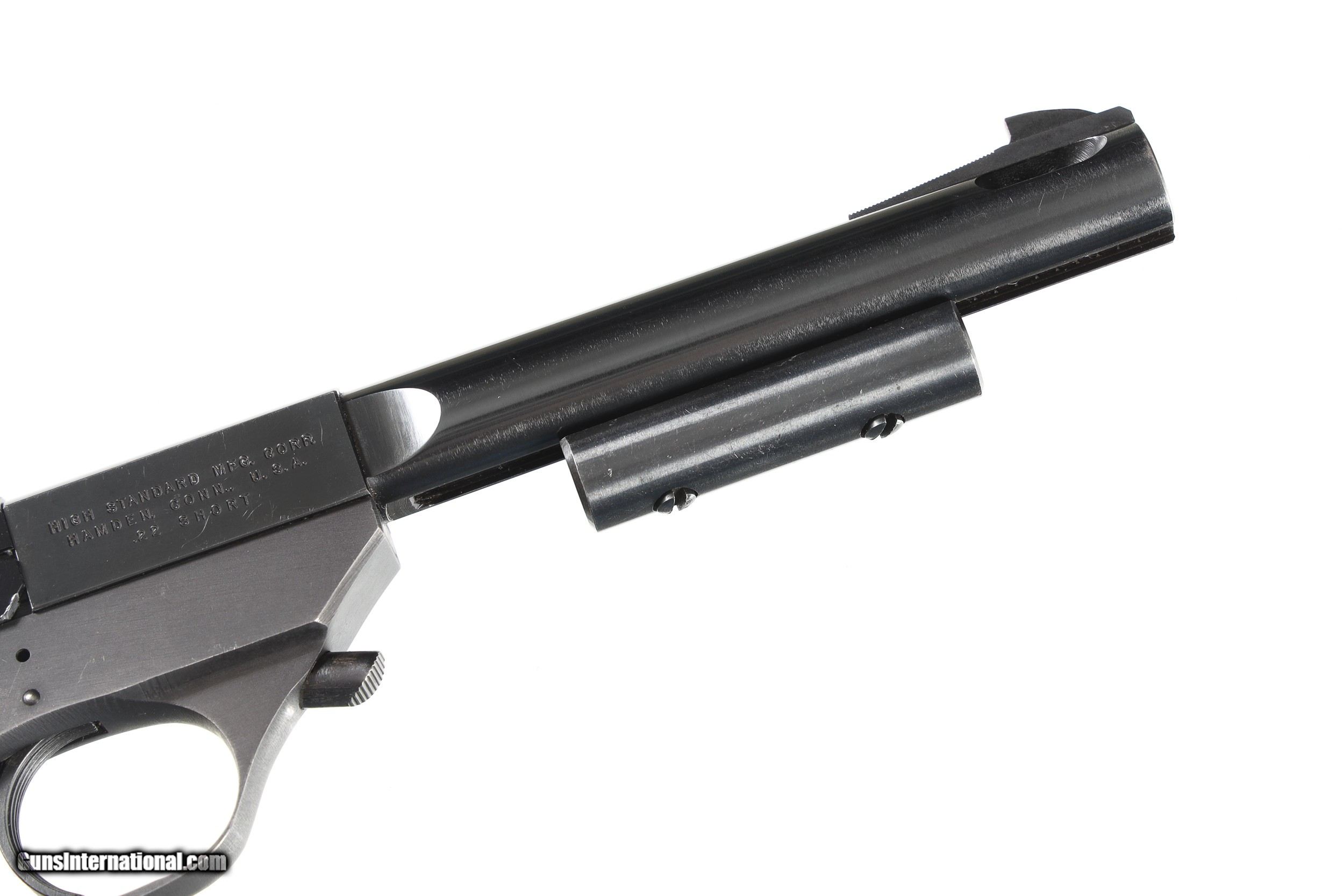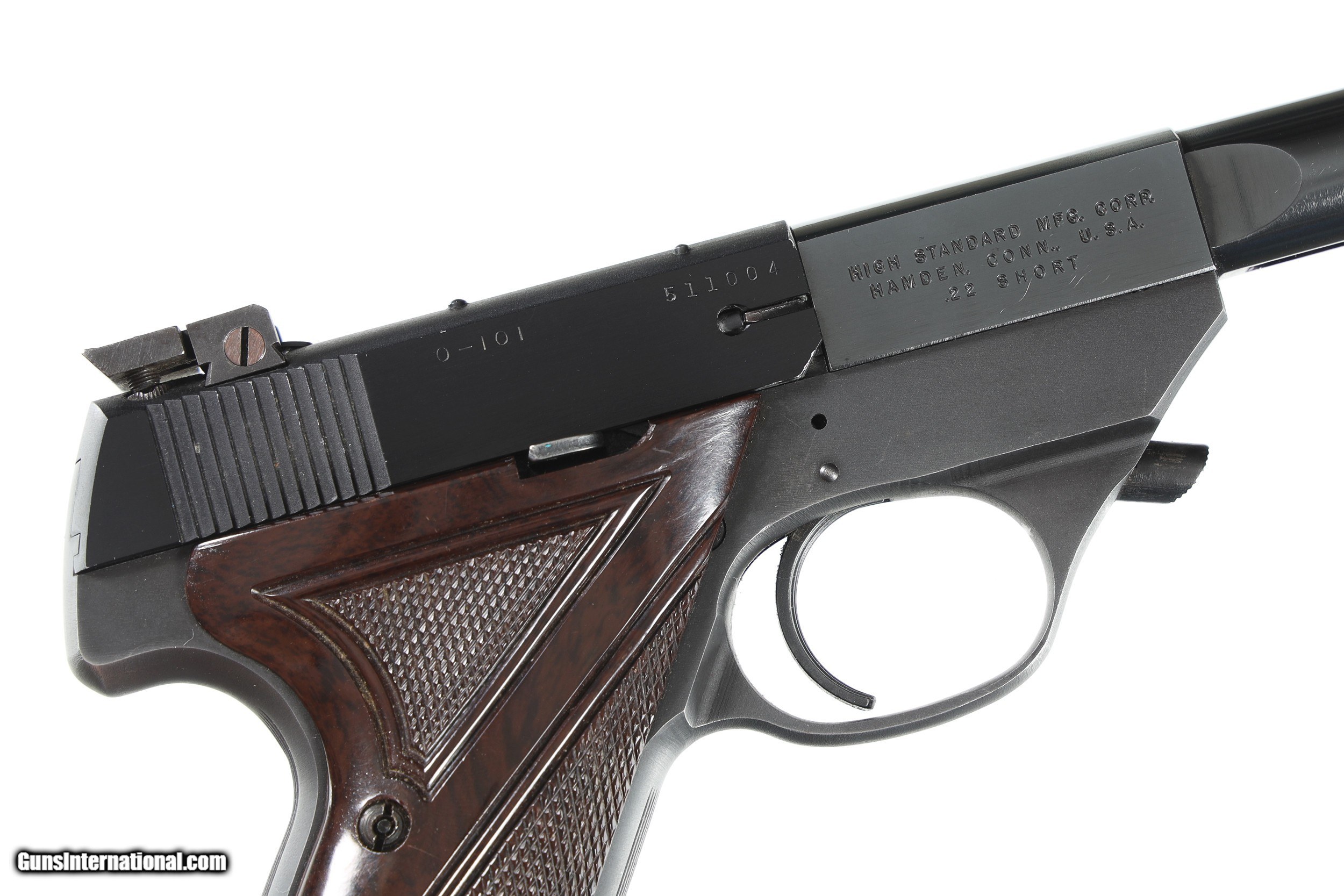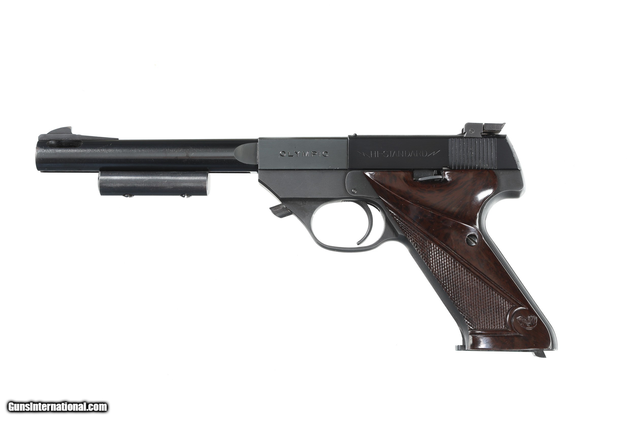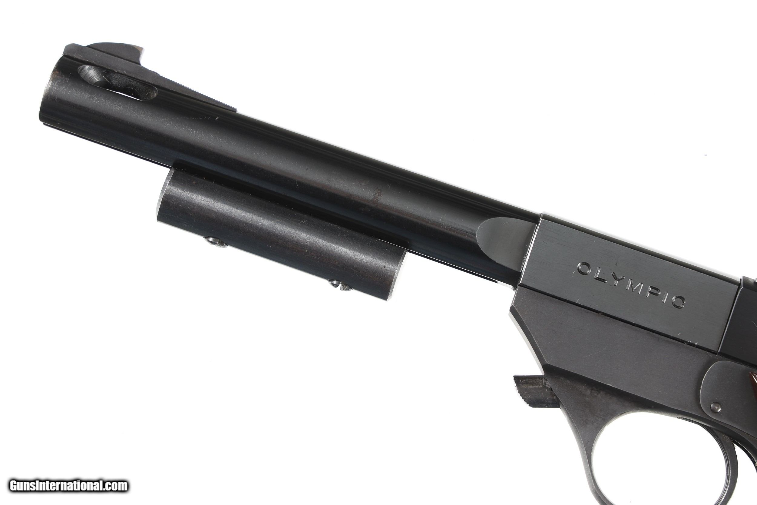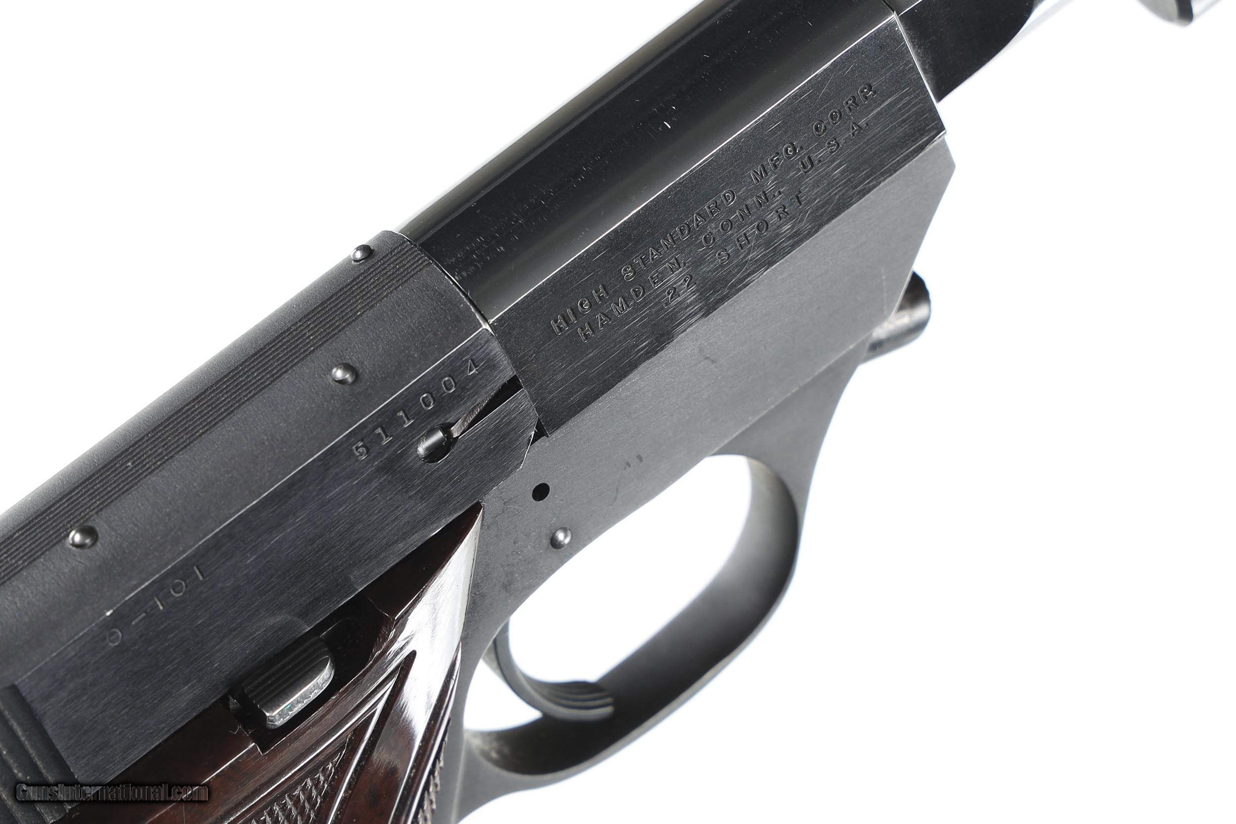 Description: Excellent overall condition, limited handling marks, barrel weight with ported barrel. Free Shipping, No Credit Card Fees! SOLD Handgun Caliber: .22 Short Manufacturer: High Standard Model: 101 Olympic Serial Number: 511004 Barrel Length: 6-3/4 |