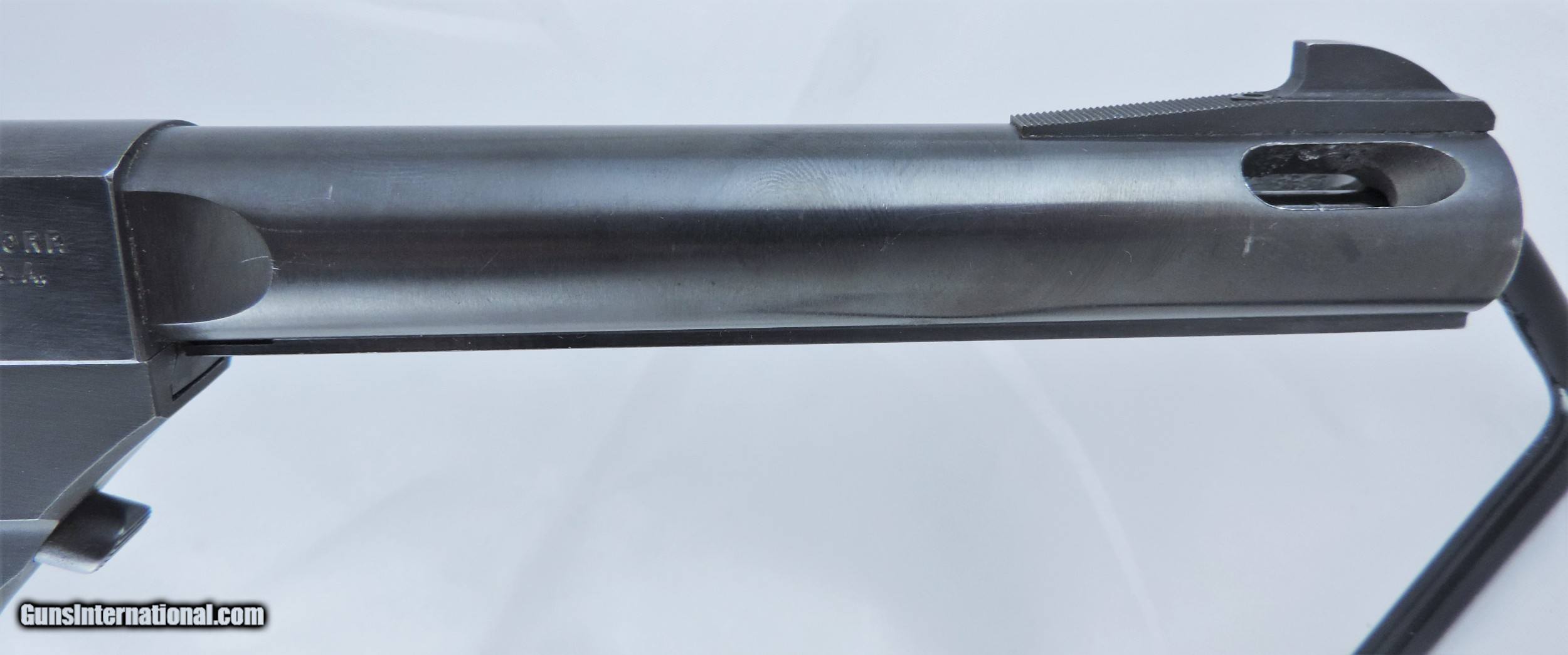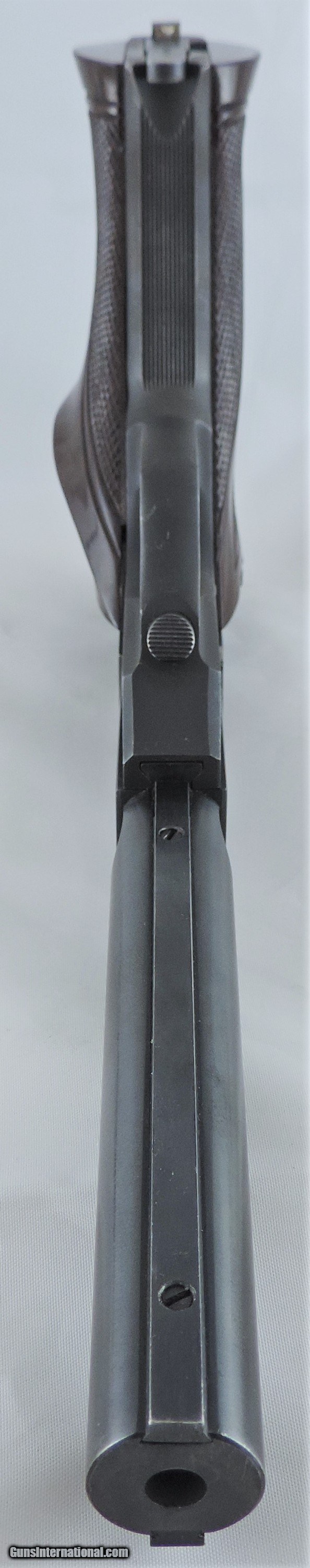 Description: Inv. 7545 High Standard 101 Supermatic, Cal. .22LR, Ser. 7439XX, Original Hamden Ct. Mfg. 1953. Awesome condition. As close to unfired as you will find for an estate "Safe Queen". The gun has retains at least 99.9% percent of the original blue and correct matte finish. The only loss we could find is some very slight sharp edge silvering. Nothing else. The striated grip straps which are always first to show graying are perfect. Not a scratch, pin prick or rub mark anywhere on the gun. The correct brown plastic thumb rest grips are in similar condition, perfect. In addition it still has the original barrel filler bar which the factory provides to fill the barrel weight slot. This bar is frequently missing. The bore like the rest of the gun is pristine, sunshine bright with scalpel sharp rifling. There is not s trace of frost anywhere. it comes with Two magazines one original H/s and one replacement. It's wonderful find for the collector/investor or someone that wants a modest super accurate target icon for the range......Shipped...... $625*** *** It come with our "Purchase Satisfaction Guarantee". To purchase this firearm or if you want to request more information contact us at: Email ckguns[at]ymail[dot]com Phone 201-512-0002 Cell 201-575-6838 FAX 201-215-4759 We accept most major credit cards. Prices shown are Discounted 3% for Cash or Check. The buyer must be familiar with all the laws governing the purchase and the ownership of firearms in their own city and state. The Yankee Armorer, Inc is not responsible for any failure to comply with or observe these laws. The Yankee Armorer, Inc will only ship after full payment and receipt of all required documents. Shipping: Add $35.00 for handguns, $45.00 for long guns. New Jersey buyers are subject to a 7% sales tax. The Yankee Armorer, Inc offers a 3 day inspection period with full refund upon return of intact firearm and in the original condition. The Yankee Armorer, Inc offers a no interest lay away program - 25% down; 25% in 30 days; 25% in 60 days; and full payment in 90 days. Any violation of this policy is subject to restocking and forfeiture of all payments. Any variation from this policy must be agreed to in advance. Unshipped Cancelled sales are subject to a 20% restocking fee. Be advised that all firearms sold by The Yankee Armorer, Inc. or the Gun Exchange, LLC (SELLER) are sold as collector’s items. They have not been fired or tested for safety and must be examined by a license gunsmith prior to use. By purchasing any item from the (SELLER), you are agreeing to hold the (SELLER) free from any damages or lawsuits of any nature. Any item left for transfer or storage will be charged to $25.00 per month, per item from the day of its receipt. Any variation from this policy must be agreed to in advance. Store hours 10:00 am to 5:00 pm Tuesday -Saturday. It's always best to call for appointment. Store 201-512-0002, cell 201-575-6838. SOLD Curio/Relic: Yes Manufacturer: High Standard Model: 101 Supermatic Serial Number: 7439XX Caliber Info: .22 LR |