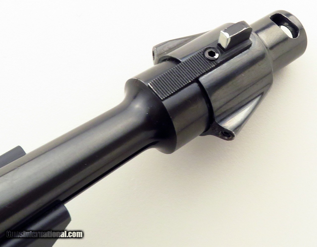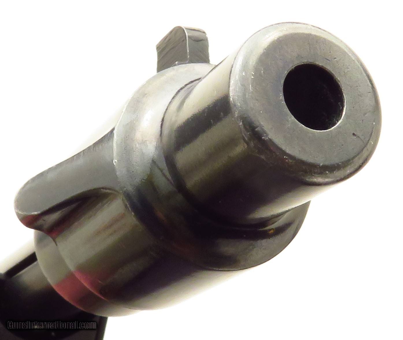 Description: High Standard Model 102 Supermatic Citation. Serial 950209 has an 8-inch barrel (9 inches with finned brake, blade front sight, 2x dovetailed weights), adjustable rear sight and checkered target grips (fit medium-size hands). Two 10-round magazines and aftermarket synthetic stag target grips are included. CONDITION: The bore is superb. Metal finish is approximately 90 percent. Wood grips are approximately 85 percent. No box or papers. The price is firm. $900 plus shipping. SOLD Handgun Caliber: .22 Long Rifle |