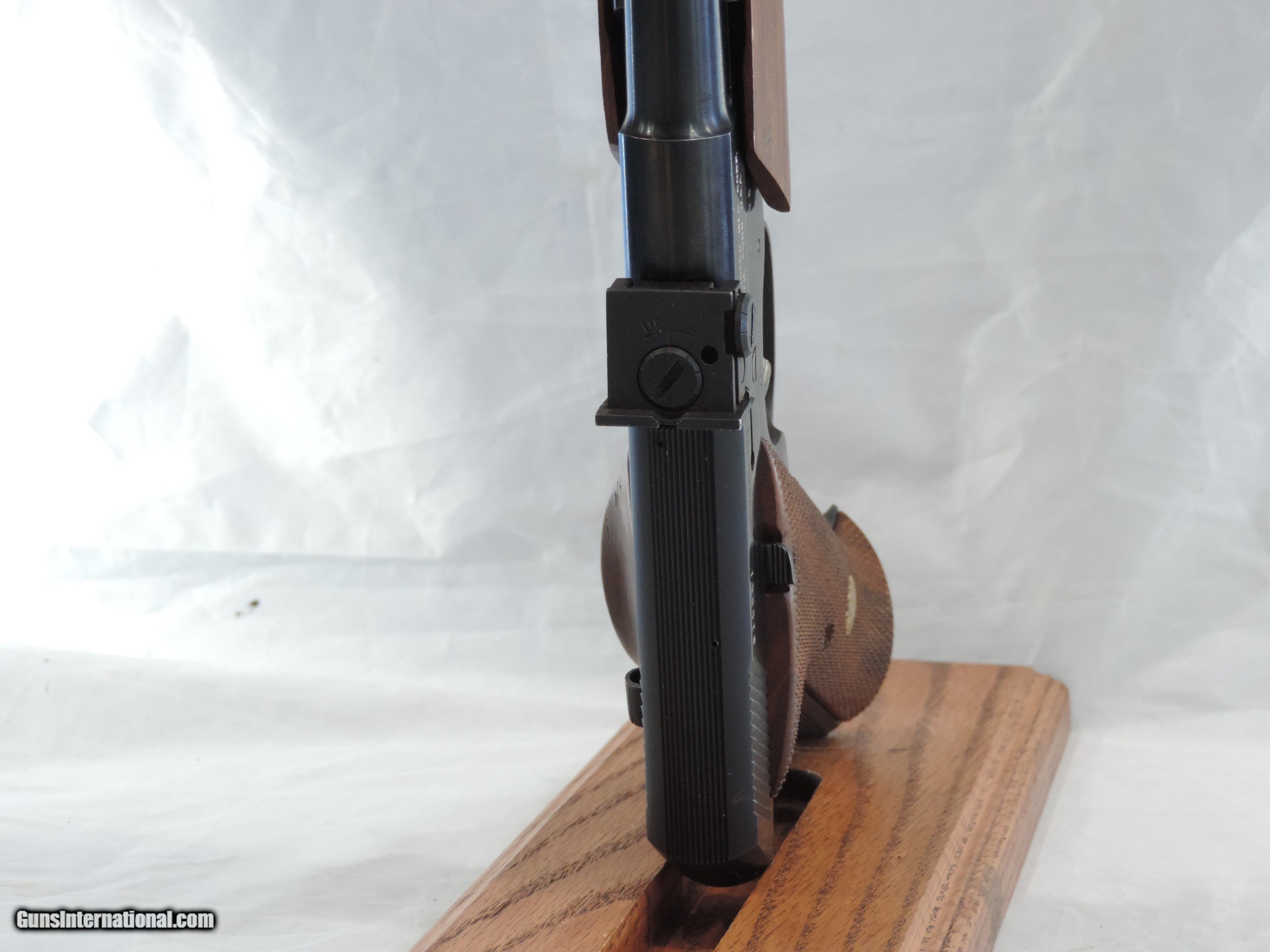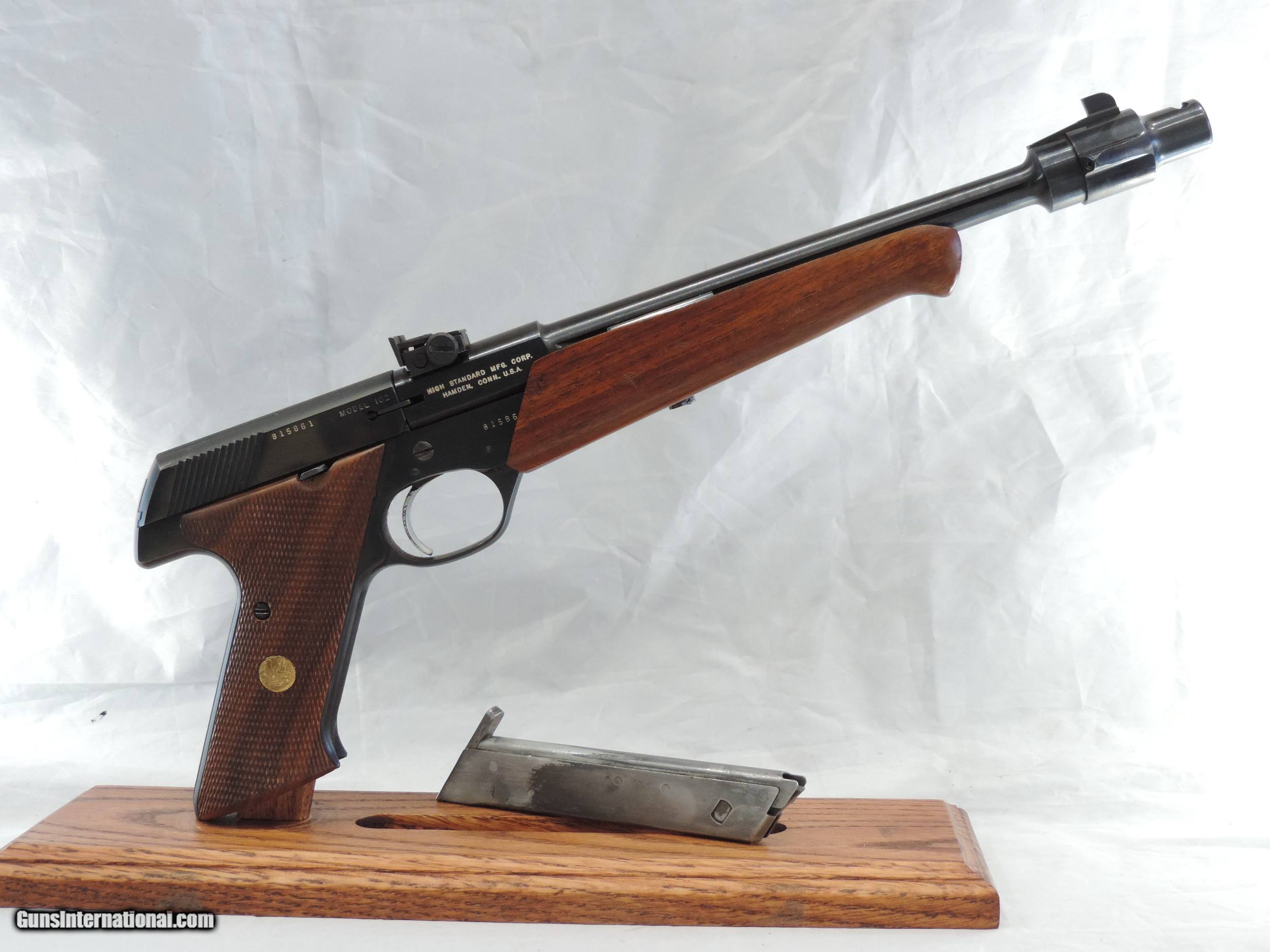 Description: INV. 9775 . HIGH STANDARD 102 SUPERMATIC TROPHY CAL. .22, SER. 8158661, MFG. HAMDEN CT. IT HAS RETAINED ABOUT 99% OFTHE ORIGINAL FACTORY BLUE. THERE ARE NO RUST PATCHES, SCRATCHES OR RUB MARKS. THERE IS AN ORIGINAL HIGH STANDARD BARREL WEIGHT ATTACHED TO THE BARREL UNDER THE CUSTOM FOREMAN. THE THUMB REST GRIPS ARE PRISTINE RETAINING 99+% OF THE FACTORY LACQUER. THE SLIDE RAILS, BOLT FACE AND CHAMBER SHOW LITTLE IF ANY USE. THE BORE IS PRISTINE LIKE THE REST OF THE GUN, MIRROR BRIGHT WITH RAZOR SHARP RIFLING NOT WHISP OF FROST ANYWHERE. IT COMES WITH ONE ORIGINAL H/S MAGAZINE, A H/S BARREL WEIGHT, A VERY SCARCE H/S MUZZLE BRAKE, AND AN EXTRA SET OF CUSTOM CHECKERED THUMB REST GRIPS. FOR THE VERY CRITICAL COLLECTOR OR THE COMPETITION SHOOTER IS DOESN'T GET ANY BETTER THAN THIS, MODESTLY PRICED AT.....$1295.*** ***100% SATISFACTION GUARANTEED FOR THE PURCHASE PRICE OF THE GUN. To purchase this firearm or if you want to request more information contact us at: Email ckguns[at]ymail[dot]com Phone 201-512-0002 Cell 201-575-6838 FAX 201-215-4759 We accept most major credit cards. Prices shown are Discounted 3% for Cash or Check. The buyer must be familiar with all the laws governing the purchase and the ownership of firearms in their own city and state. The Yankee Armorer, Inc is not responsible for any failure to comply with or observe these laws. The Yankee Armorer, Inc will only ship after full payment and receipt of all required documents. Shipping: Add $35.00 for handguns, $45.00 for long guns. New Jersey buyers are subject to a 7% sales tax. The Yankee Armorer, Inc offers a 3 day inspection period with full refund upon return of intact firearm and in the original condition. The Yankee Armorer, Inc offers a no interest lay away program - 25% down; 25% in 30 days; 25% in 60 days; and full payment in 90 days. Any violation of this policy is subject to restocking and forfeiture of all payments. Any variation from this policy must be agreed to in advance. Unshipped Cancelled sales are subject to a 20% restocking fee. Be advised that all firearms sold by The Yankee Armorer, Inc. or the Gun Exchange, LLC (SELLER) are sold as collector’s items. They have not been fired or tested for safety and must be examined by a license gunsmith prior to use. By purchasing any item from the (SELLER), you are agreeing to hold the (SELLER) free from any damages or lawsuits of any nature. Any item left for transfer or storage will be charged to $25.00 per month, per item from the day of its receipt. Any variation from this policy must be agreed to in advance. Store hours 10:00 am to 5:00 pm Tuesday -Saturday. It's always best to call for appointment. Store 201-512-0002, cell 201-575-6838. SOLD |