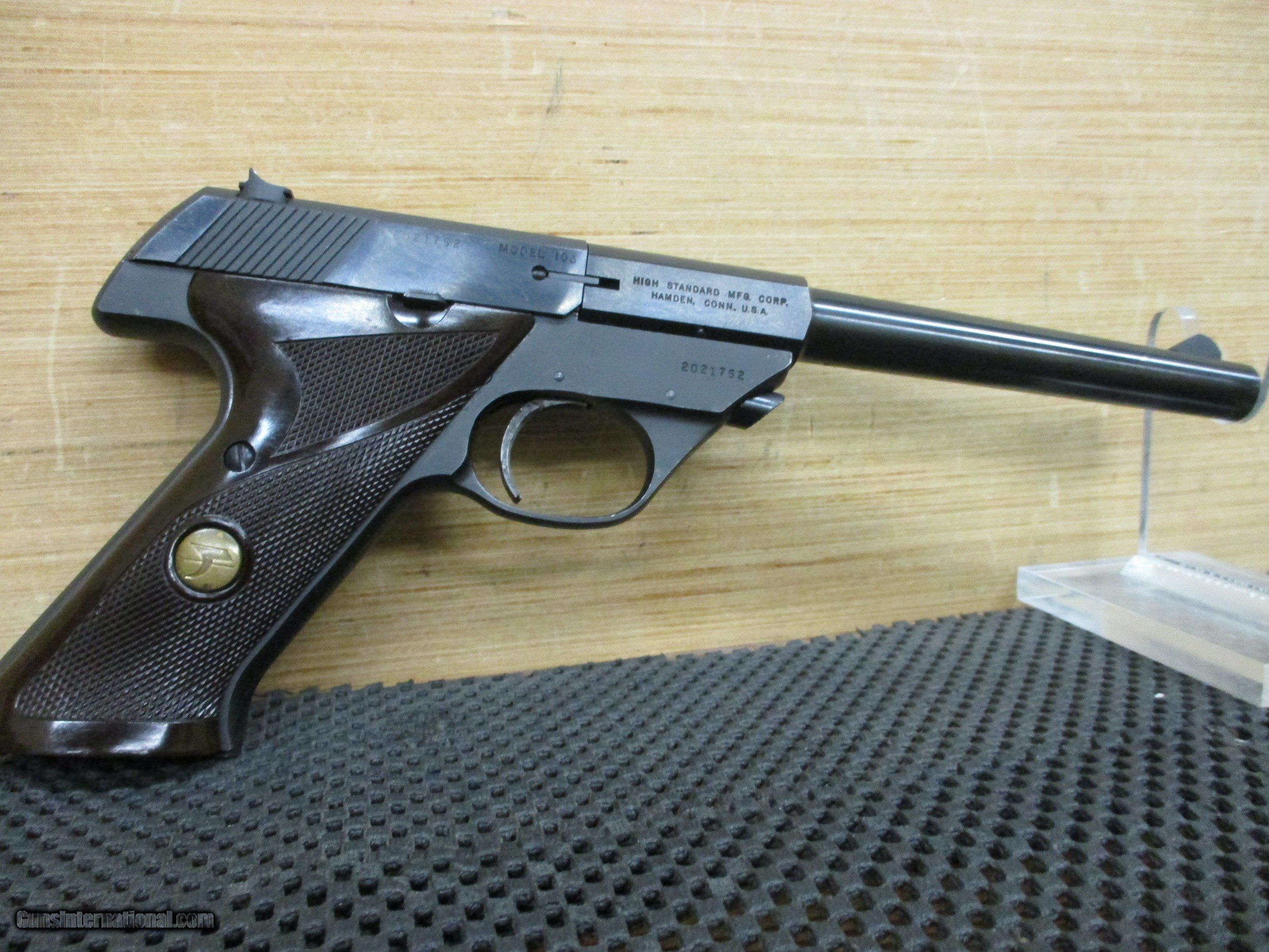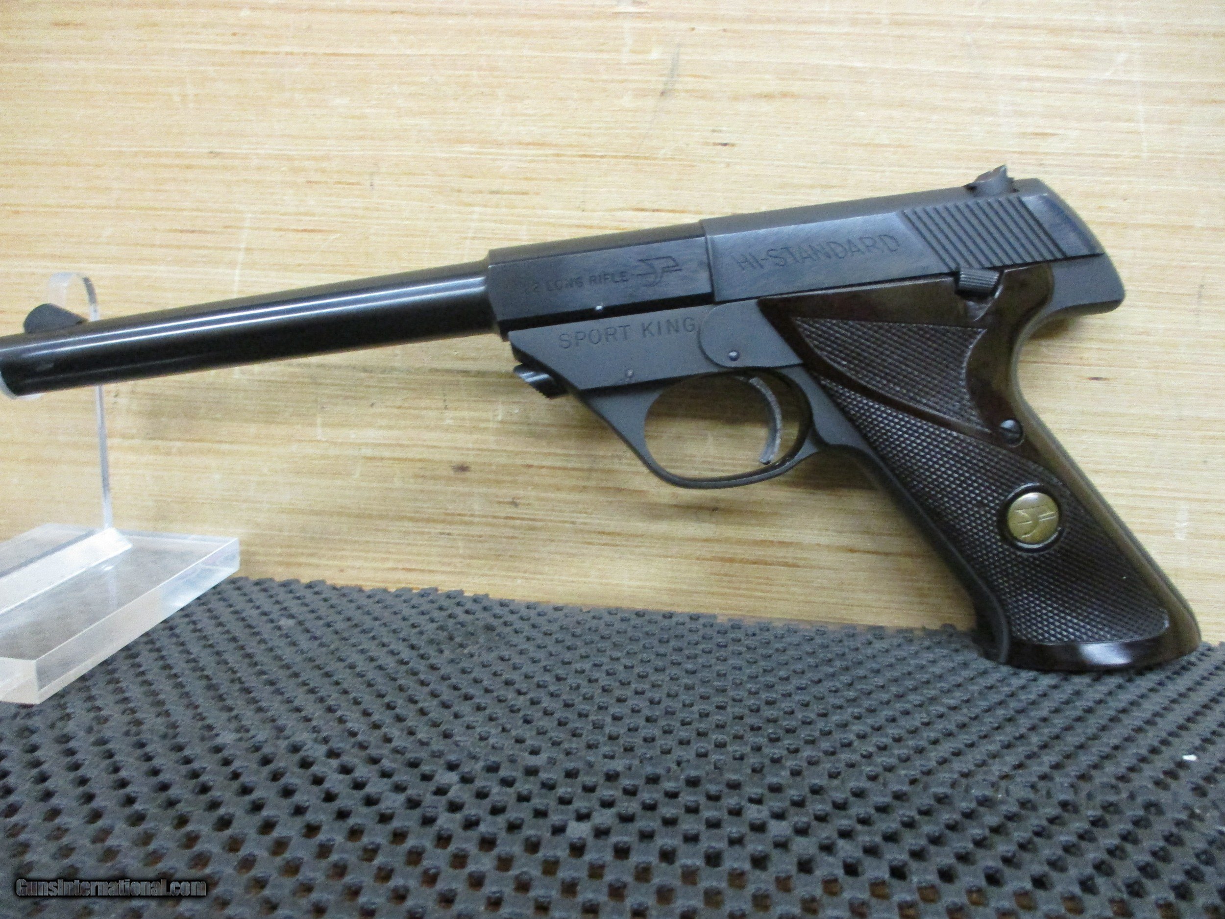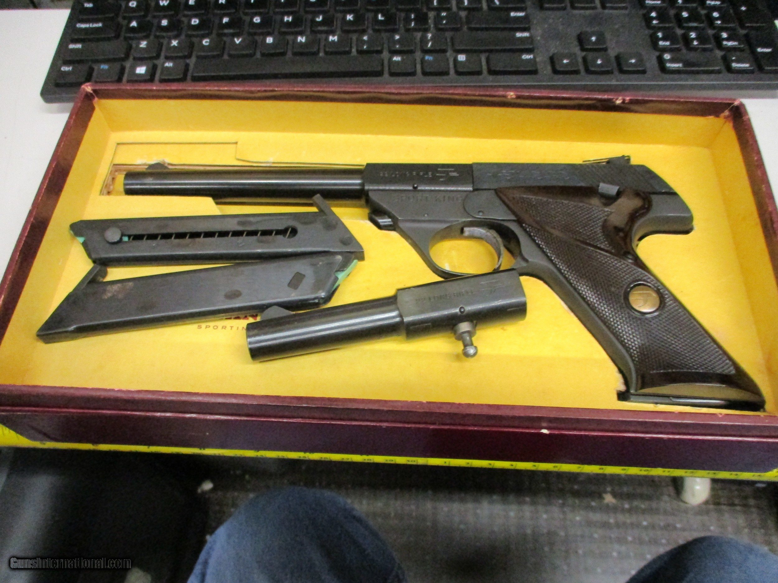 Description: USED GOOD CONDITION HIGH STANDARD 103 SPORT KING .22 LR -- 6.75" & 4.5" BARRELS.-- BLK PLASTIC GRIPS -- 3 -10 RND MAG HAS FACTORY BOX THE IS A MARK ON THE LEFT SIDE OF BARREL NEAR FRONT SIGHT ****PLEASE CALL IN THE WITH THE SELLER’S INVENTORY NUMBER IF INQUIRING ABOUT A FIREARM****** WE DO NOT SHIP FIREARMS AND/OR FIREARMS’ PARTS OUT OF THE 50 UNITED STATES, SO DON’T ASK—YOU NEED TO KNOW IF FIREARM IS LEGAL FOR YOUR STATE PRICE REFLECTS PAYMENT BY MONEY ORDER / CASHIERS CHECK. A 3% PREMIUM IS ADDED FOR CREDIT CARDS. WE DO ACCEPT PERSONAL OR BUSINESS CHECKS, BUT THERE IS A GRACE PERIOD OF 10 BUSINESSS DAYS ON THEM. Shipping is $60 for handgun and $50 for long gun. Shipping to Alaska and Hawaii will be more based on weight of firearm. USPS SHIPPING IS HIGHER. WE DO OFFER LAYAWAY PLANS FOR 30,60, OR 90 DAYS. THERE IS A $5.00 CHARGE FOR EVERY 30 DAYS ITEM IS ON LAYAWAY. WE ALSO REQUIRE A 20% DOWN PAYMENT ON TOTAL OF LAYAWAY SALE. LAYAWAYS ARE NON- REFUNDABLE. HERE IS HOW THIS PROCESS WORKS. YOU WOULD CALL US AT 540-337-9218 WITH LISTER # TO PURCHASE THE GUN. THEN ONCE I HAVE RECEIVED PAYMENT AND AN FFL (FEDERAL FIREARMS LICENSE) FROM A LICENSED DEALER IN YOUR AREA OF YOUR CHOICE. WE WILL THEN SHIP THE GUN TO THEM. YOU WOULD THEN PICK UP THE GUN AT YOUR LOCAL DEALER AND DO PAPER WORK THERE. Please have your FFL Dealers contact information when you call. DOMINION OUTDOORS 15 ANGELA COURT FISHERSVILLE, VA 22939 540-337-9218 540-337-2422 fax M – F 9 a.m. to 6 p.m. ETZ Sat 9 a.m. to 4 p.m. ETZ ****PLEASE CALL IN THE WITH THE SELLER’S INVENTORY NUMBER**** ***PLANO HARD CASES AVAIABLE FOR PURCHASE $25.00 WITH THE PURCHASE OF A FIREARM** *** Online prices compared to in store prices will vary. *** SOLD |