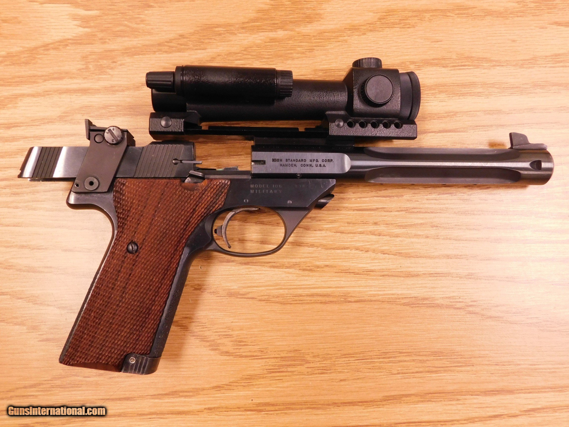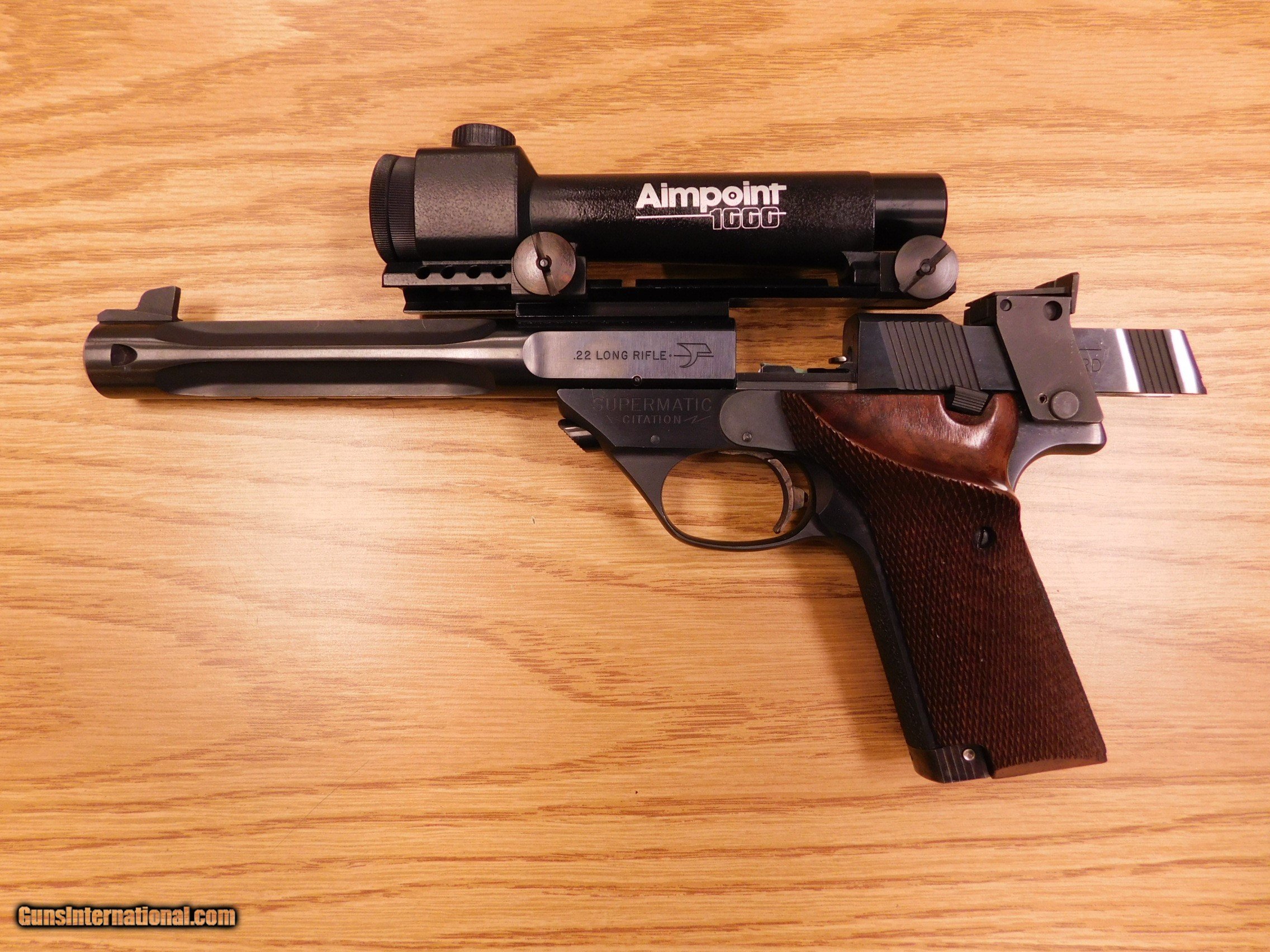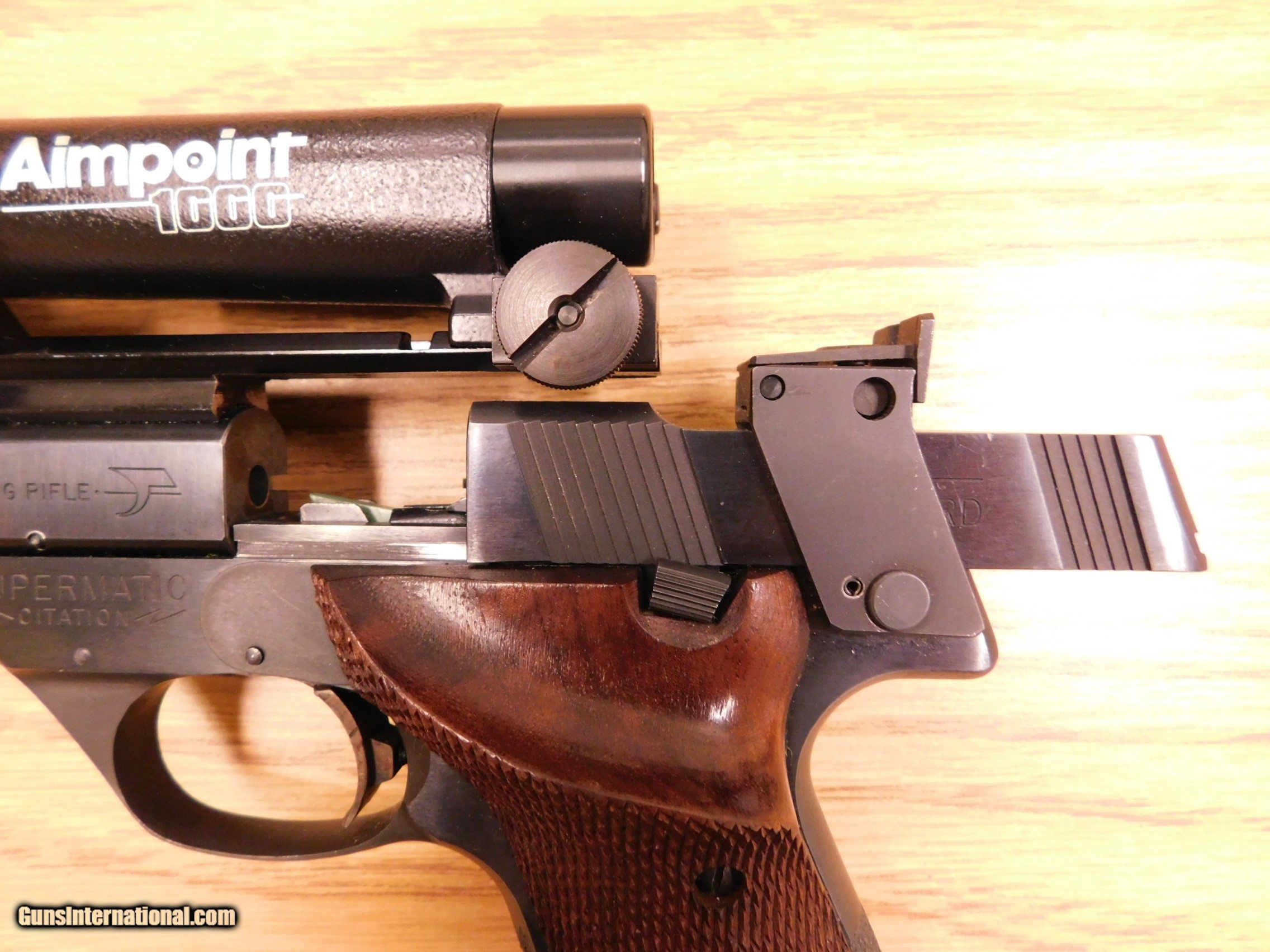 Description: High standard 106 citation 7.5" barrel with vintage aimpoint gun is in excellant condition, metal and grips look good, doesnt appear to have been shot much. Price $500 and $25 shipping and handling. SOLD Manufacturer: high standard Model: 106 citation Condition: excellant |