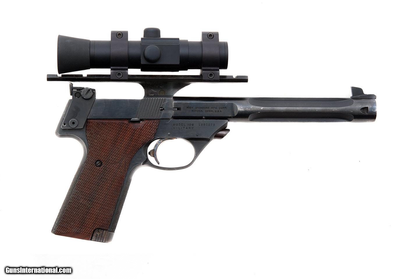 Description: High Standard - 106 Military - - Item Number: HIG1880070 Barrel length: 7 Finish: Blue Lop: NA Lbs: 3 Ozs: 8 Overall condition: Good Stock condition: Good Metal condition: Good Stock:Original Metal:OriginalManufactured in: USA Manufacture Year: Comments: Comes with Ultra Dot sight. HG-53 SOLD |