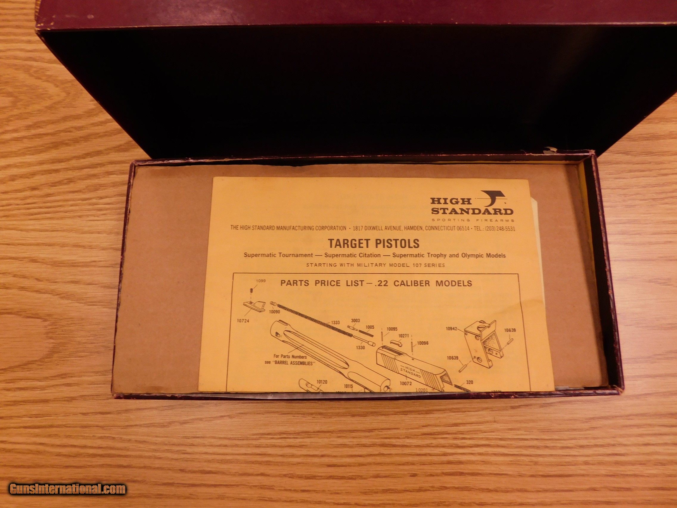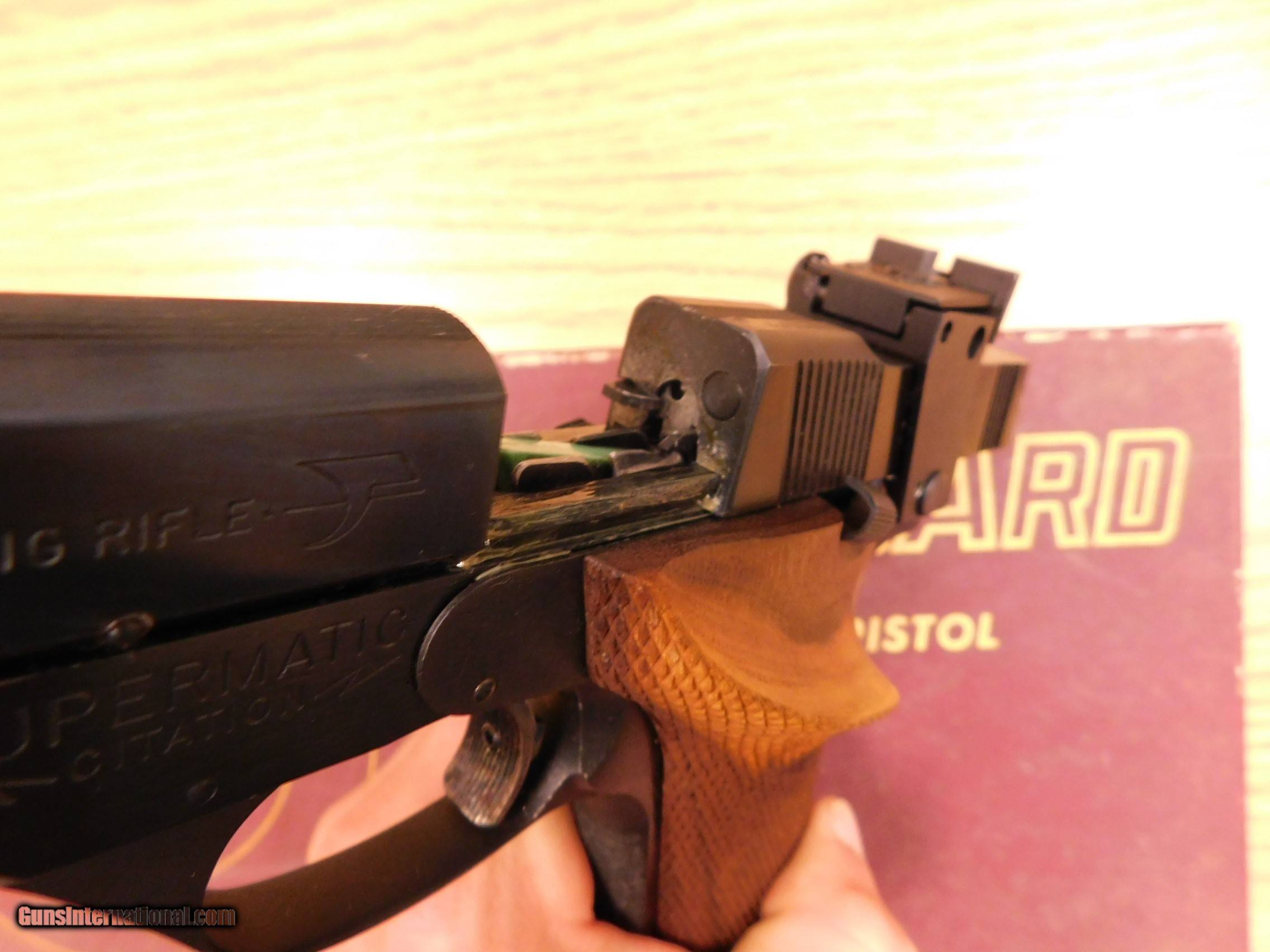 Description: High standard supermatic citation, 22lr, 5.5"barrel, gun is in excellant as new condition, comes with original box and paperwork. Price $895 and $25 shipping and handling. SOLD Manufacturer: high standard Model: 104 Caliber Info: 22 Condition: excellant |
