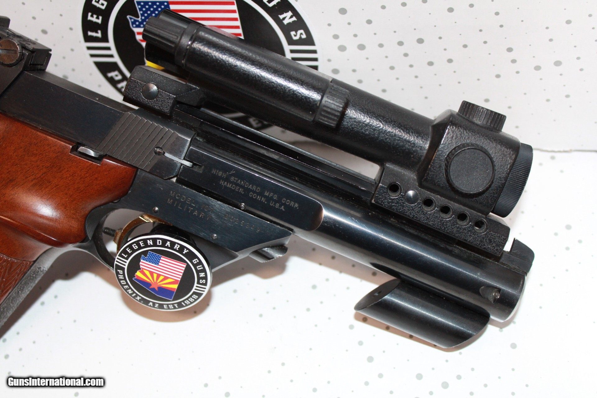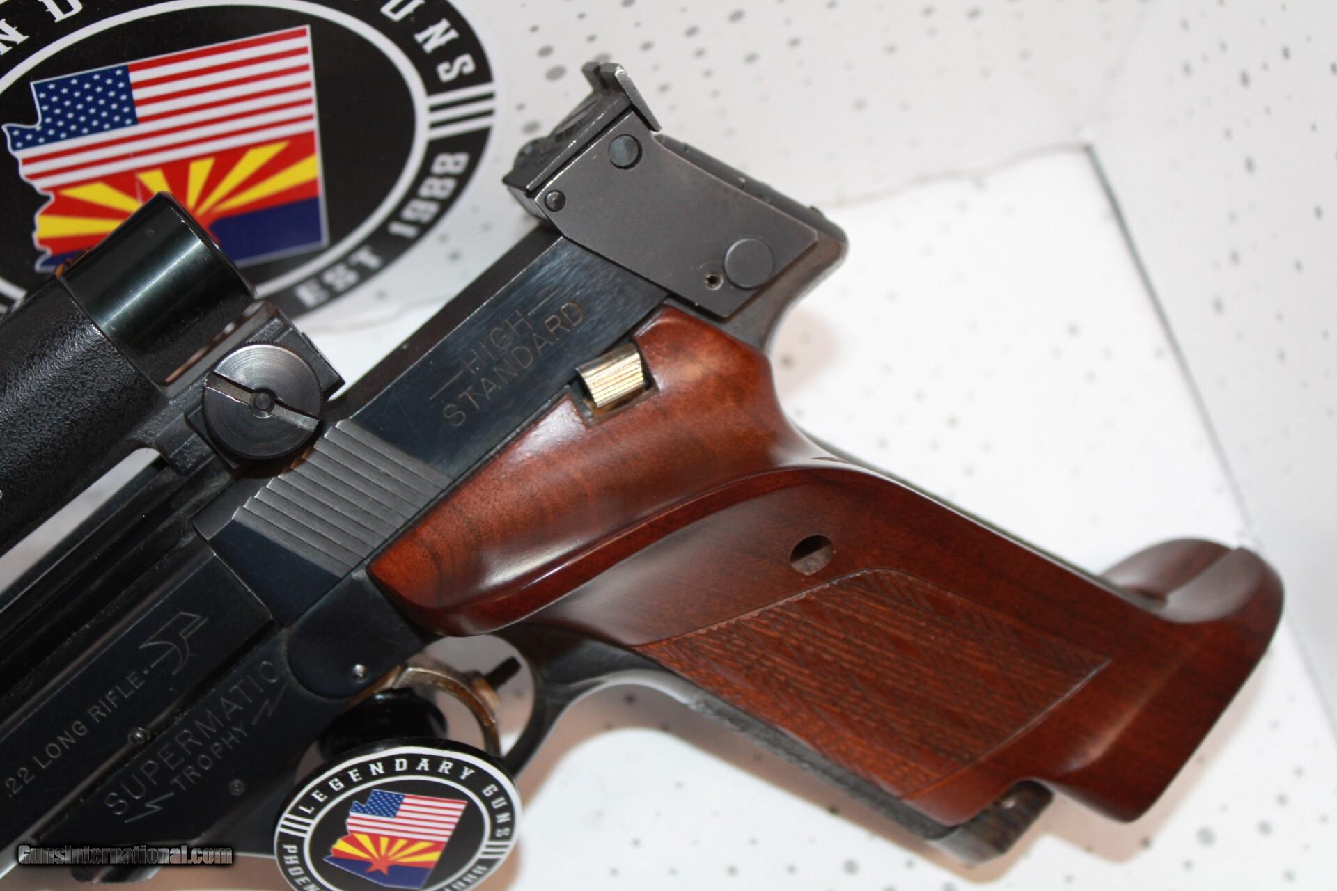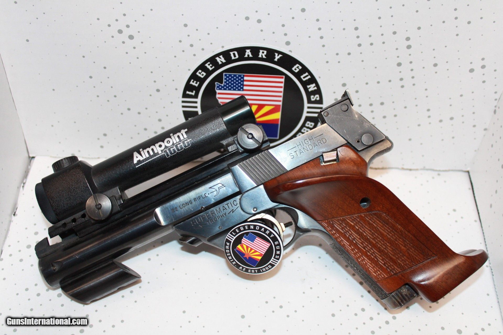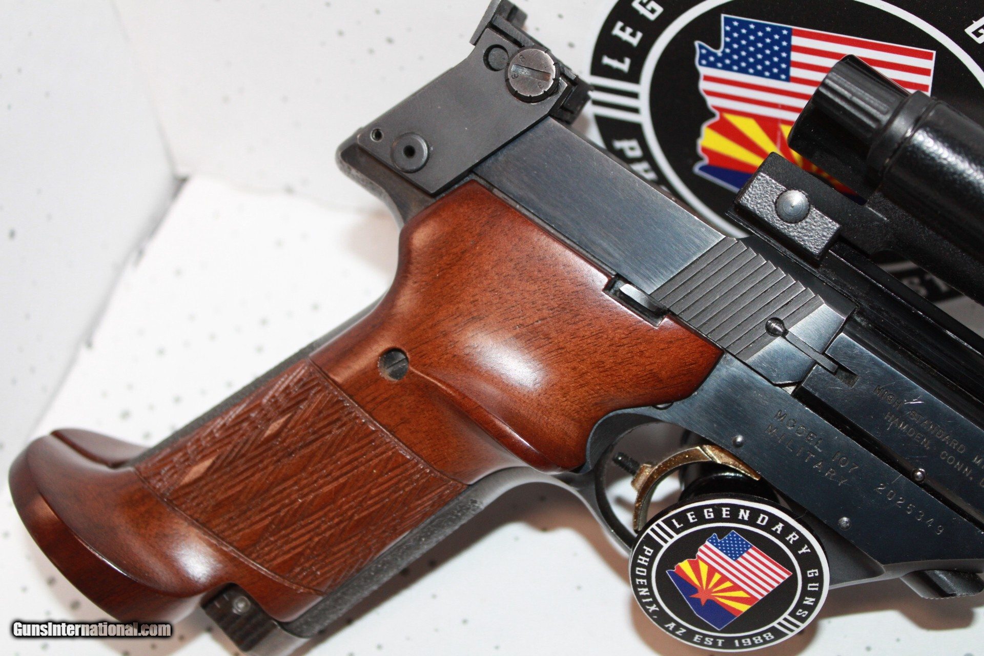 Description: High Standard 107 Military Supermatic trphy in 22LR with a 5.5" barrel, blued finish with Target wood grips, Features an Aimpoint 1000 red dot(Unable to test function) Pistol is used in very good condition. Comes with 1 mag. *Legendary Guns in Phoenix AZ 602-242-1195 Hours of operation Tuesday-Friday 10-6 Sat 10-5 Closed Sundays & Mondays *We accept all Major credit cards. We DO NOT charge an additional fee for Credit Cards. We also accept Postal Money orders or Certified Bank Checks{Check & Money order payments must arrive within 7 days of initial agreement and will be held for 3 days before items are shipped} *Shipping is $50 for rifles/shotguns {AK & HI Extra} and $35 for handguns. Arizona Residents Must Pay Sales Tax. We DO NOT ship Internationally. *We offer a 60 day layaway on purchases of $500 or more. Items require 1/3 of the total price as down payment which is NON-REFUNDABLE and you have 60 days to pay off the balance. *Please call or email with any questions and to confirm availability before buying. We are happy to answer all questions. All items listed are also for sale at our Phoenix, AZ location *We offer a 3 day inspection period on USED FIREARMS ONLY, We accept returns within the 3 day inspection period with NO REFUNDS ON SHIPPING CHARGES and a 10% restocking fee. *Trades are welcome for customers who can visit our Phoenix, AZ location, We DO NOT engage in online or mail in trades. Handgun Caliber: .22 Long Rifle Price: $799.00 Shipping: $35.00 Contact Seller |