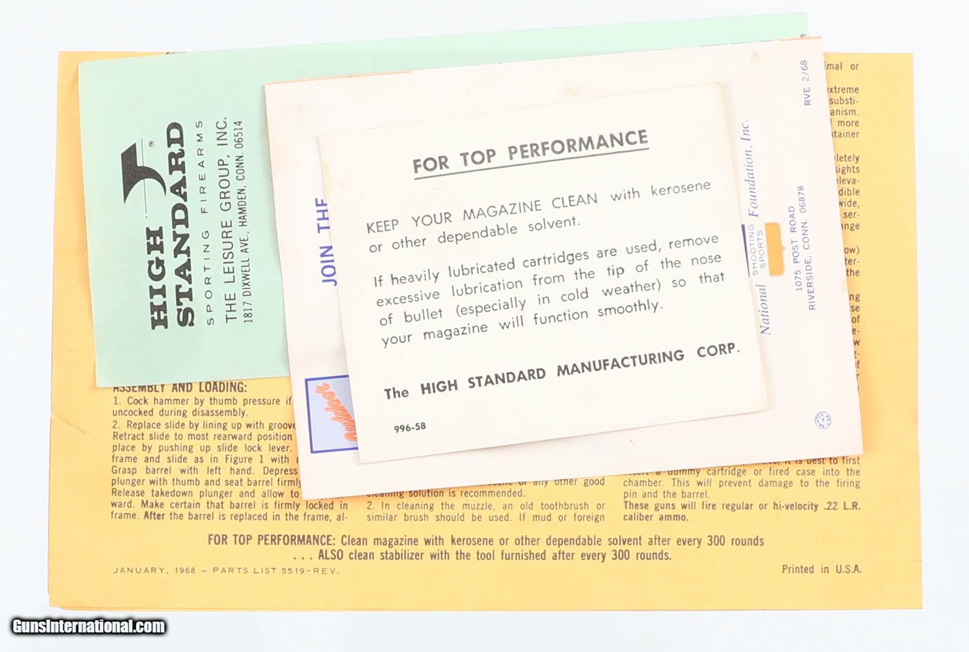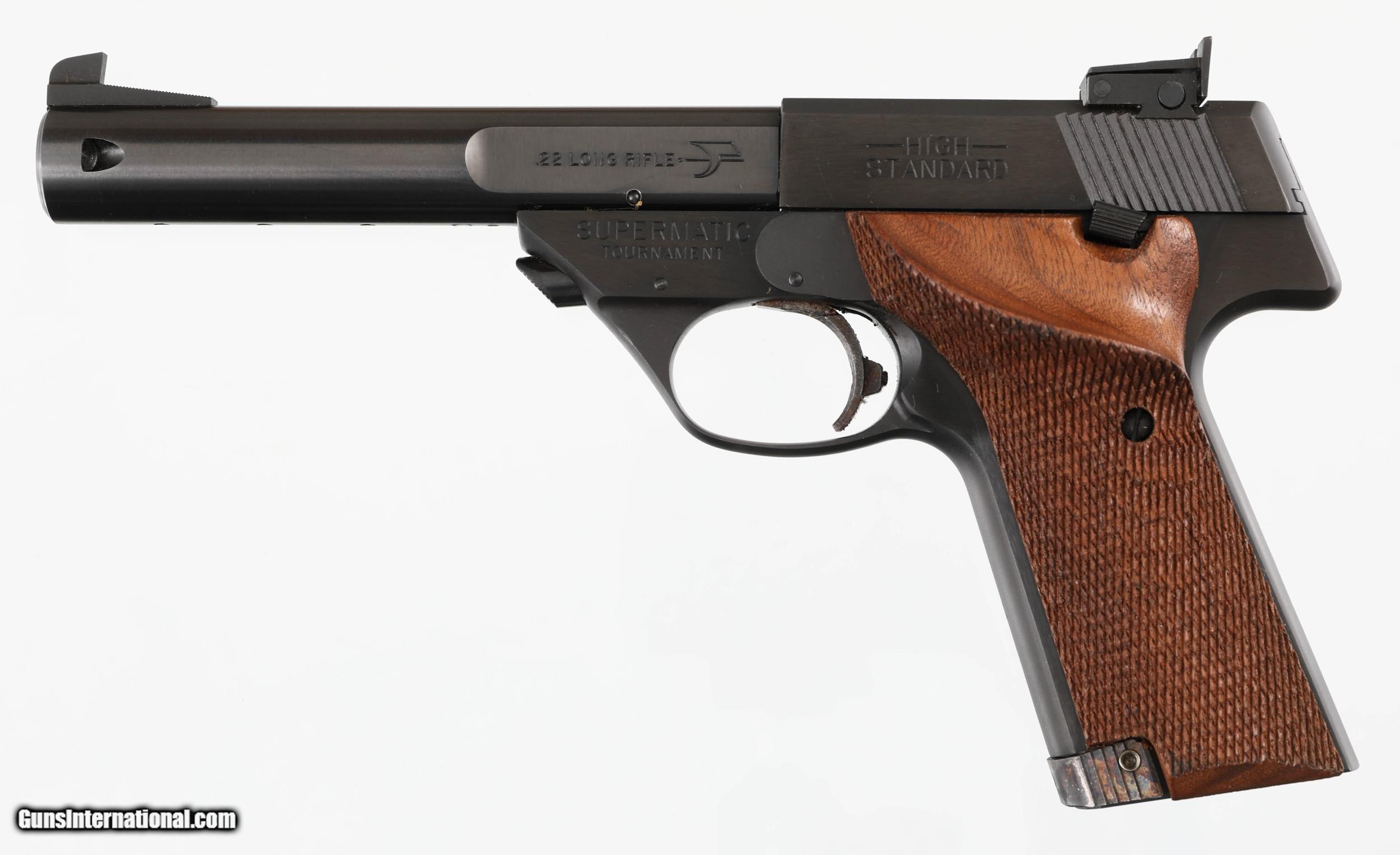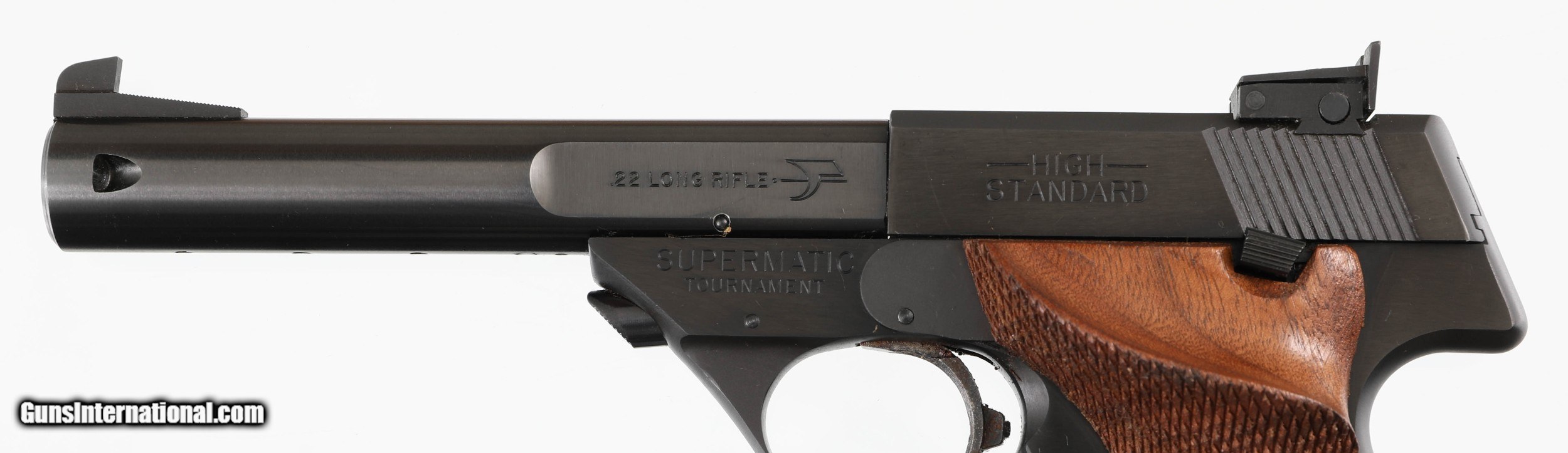 SOLD Handgun Caliber: .22 Long Rifle Manufacturer: HIGH STANDARD Model: 107 SUPERMATIC TOURNAMENT Serial Number: 20075?? Barrel Length: 5 1/2 Condition: EXCELLENT |