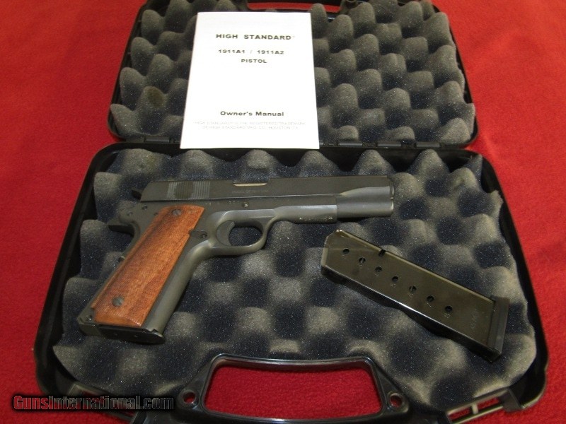 Description: Guns Listing ID: 652802 Up for sale is a used High Standard 1911-A1 Pistol (.45 ACP)> This item has a 5” barrel with a shiny bore and checkered wood stocks. The blueing shows some light scratches and a little bit of wear in the finish. Comes in the original foam lined case with the manual and two magazines. SOLD Manufacturer: HIGH STANDARD Model: 1911-A1 Caliber Info: .45 ACP Condition: Used - Non-Certified Barrels: 5 BARREL Finish: BLACK |