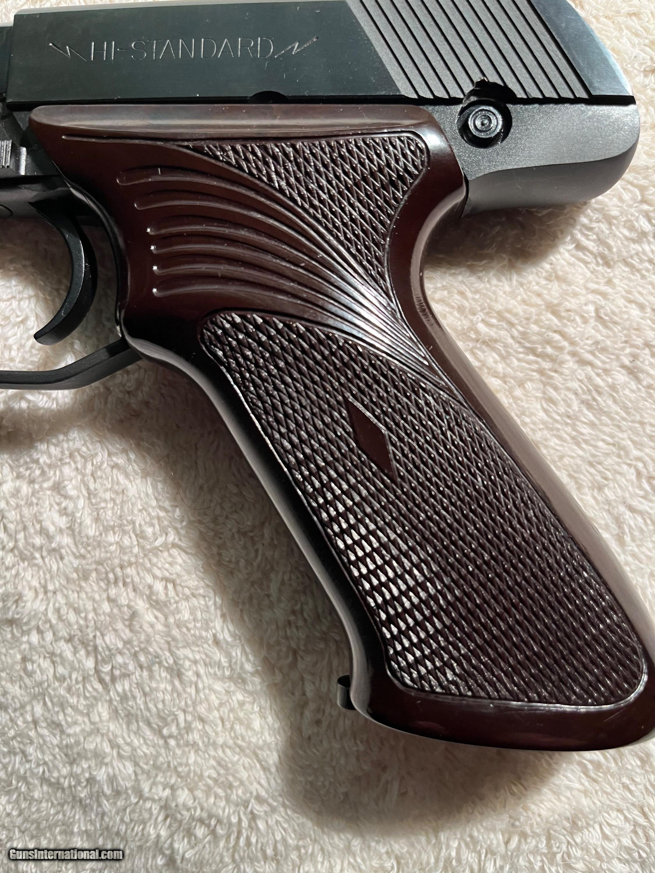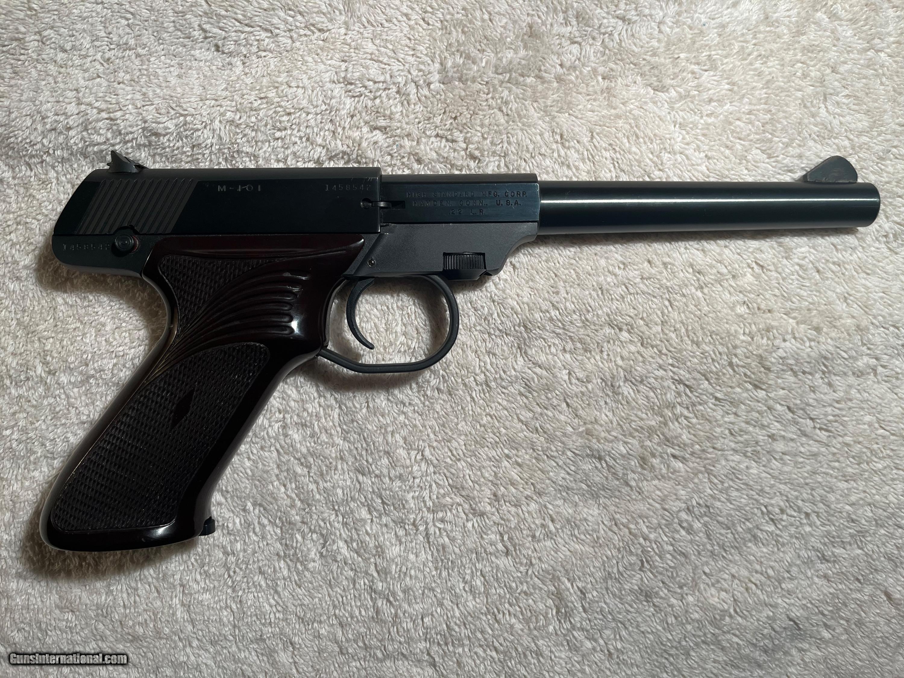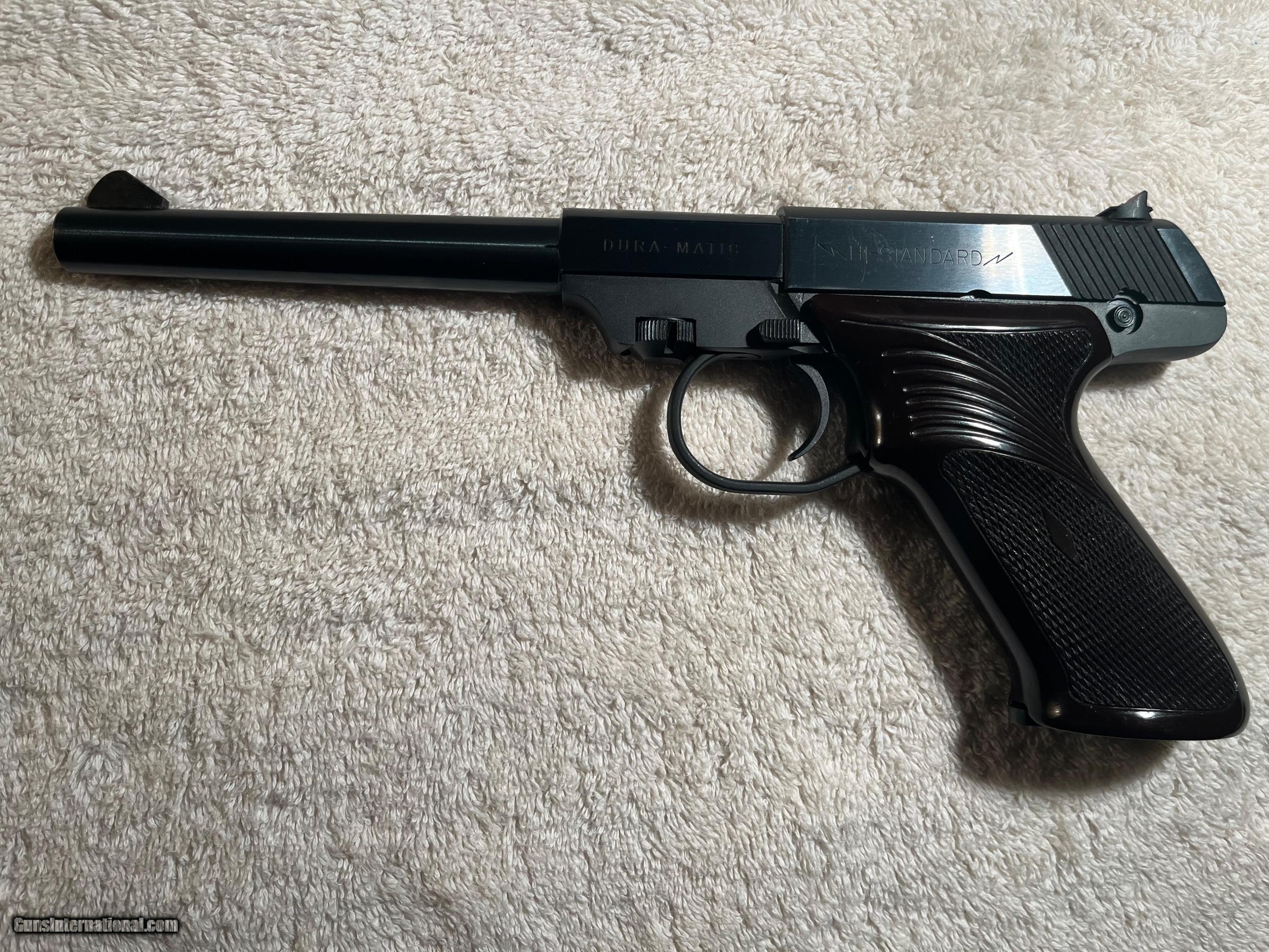 Description: High Standard .22 LR semi-auto pistol with 6 1/2" barrel. 10- shot magazine. Easy to operate. Very clean, plastic grips are unmarked. Mfg in Hamden, Connecticut in 1965. Great for targets or plinking! Serial # 1458542. C & R OK SOLD Curio/Relic: Yes Handgun Caliber: .22 Long Rifle |