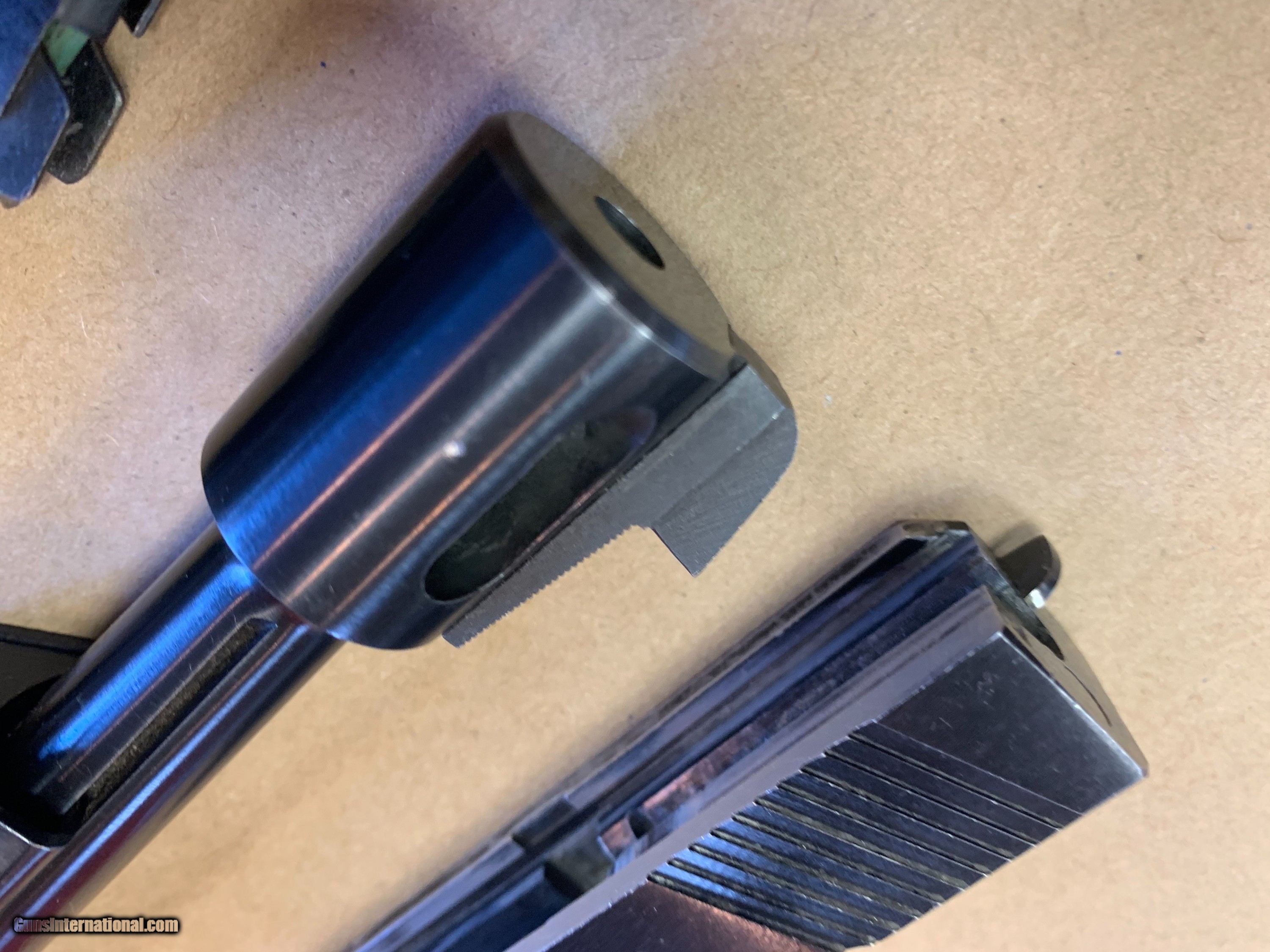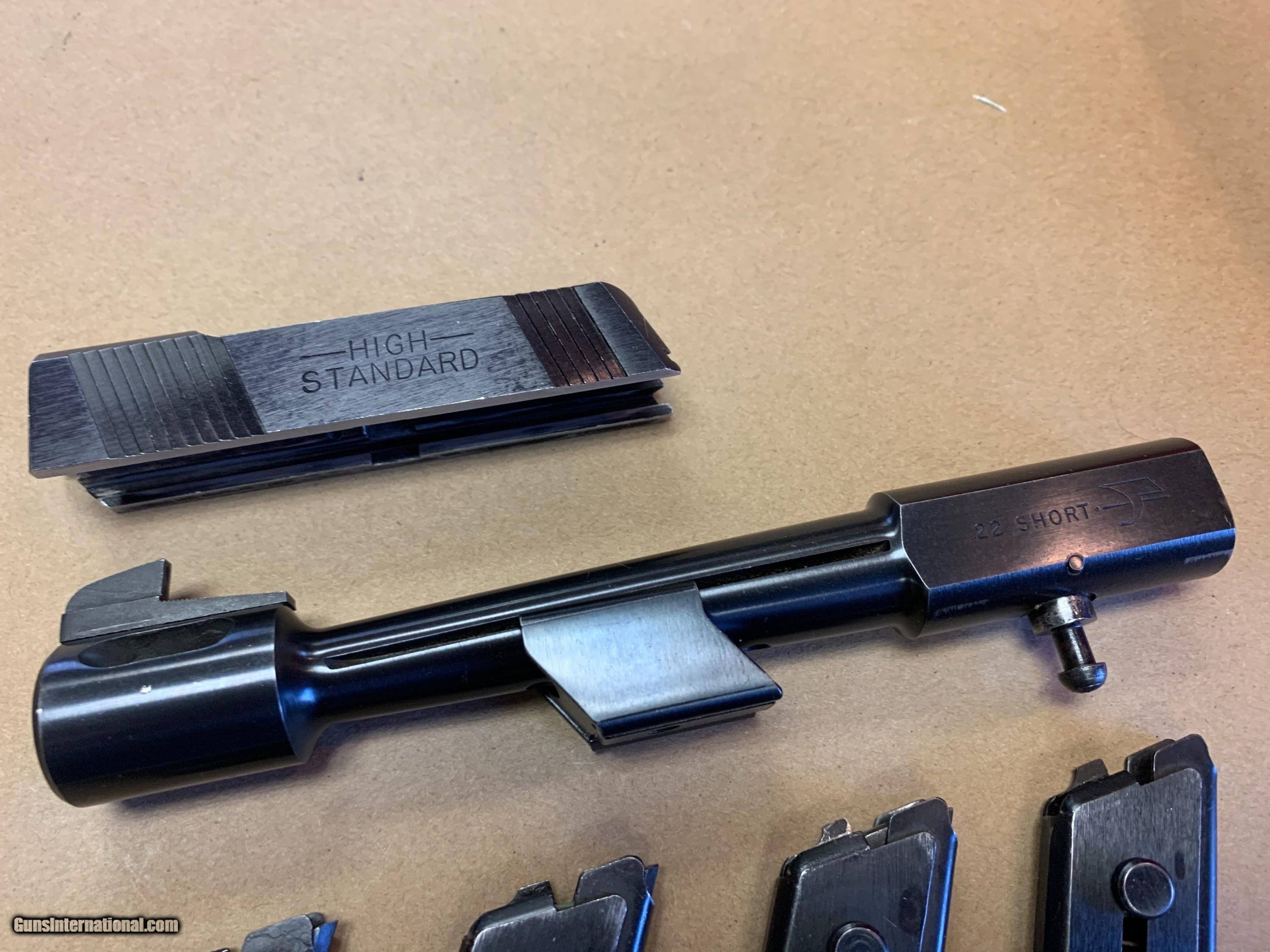 Description: High Standard .22 short Olympic style barrel, 6.75 inches long with one weight set, High Standard aluminum slide and 4 .22 short magazines (5 shot). This was used on a 106 military model High Standard pistol. We are selling these parts for an estate. $700 OBO Buyer pays for shipping and insurance, 3 dayinspection period applies. SALE PENDING SOLD Rifle Caliber: .22 Short Handgun Caliber: .22 Short Manufacturer: High Standard Model: 106 military 22 short conversion Barrel Length: 6.75 Condition: Very good |