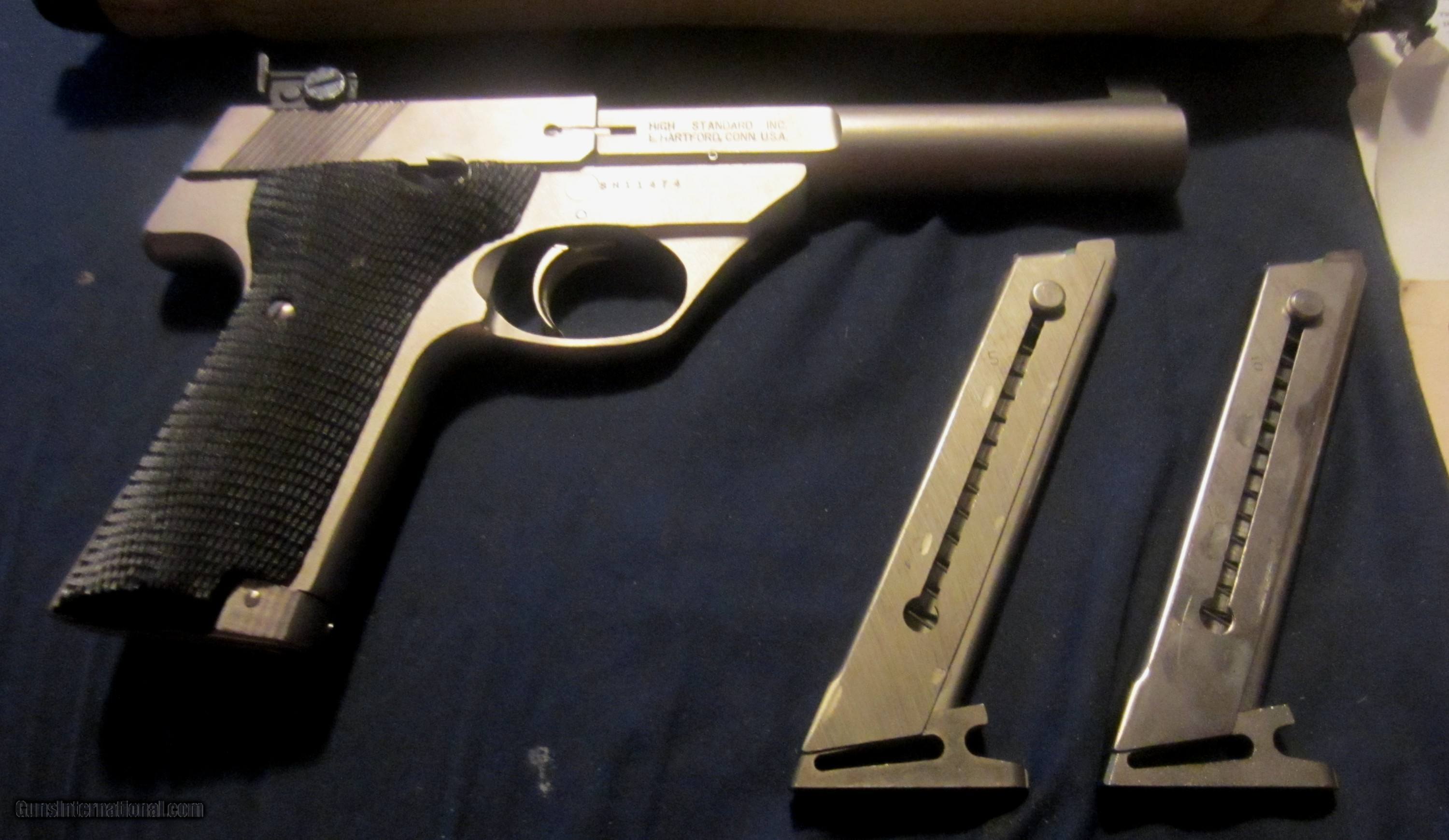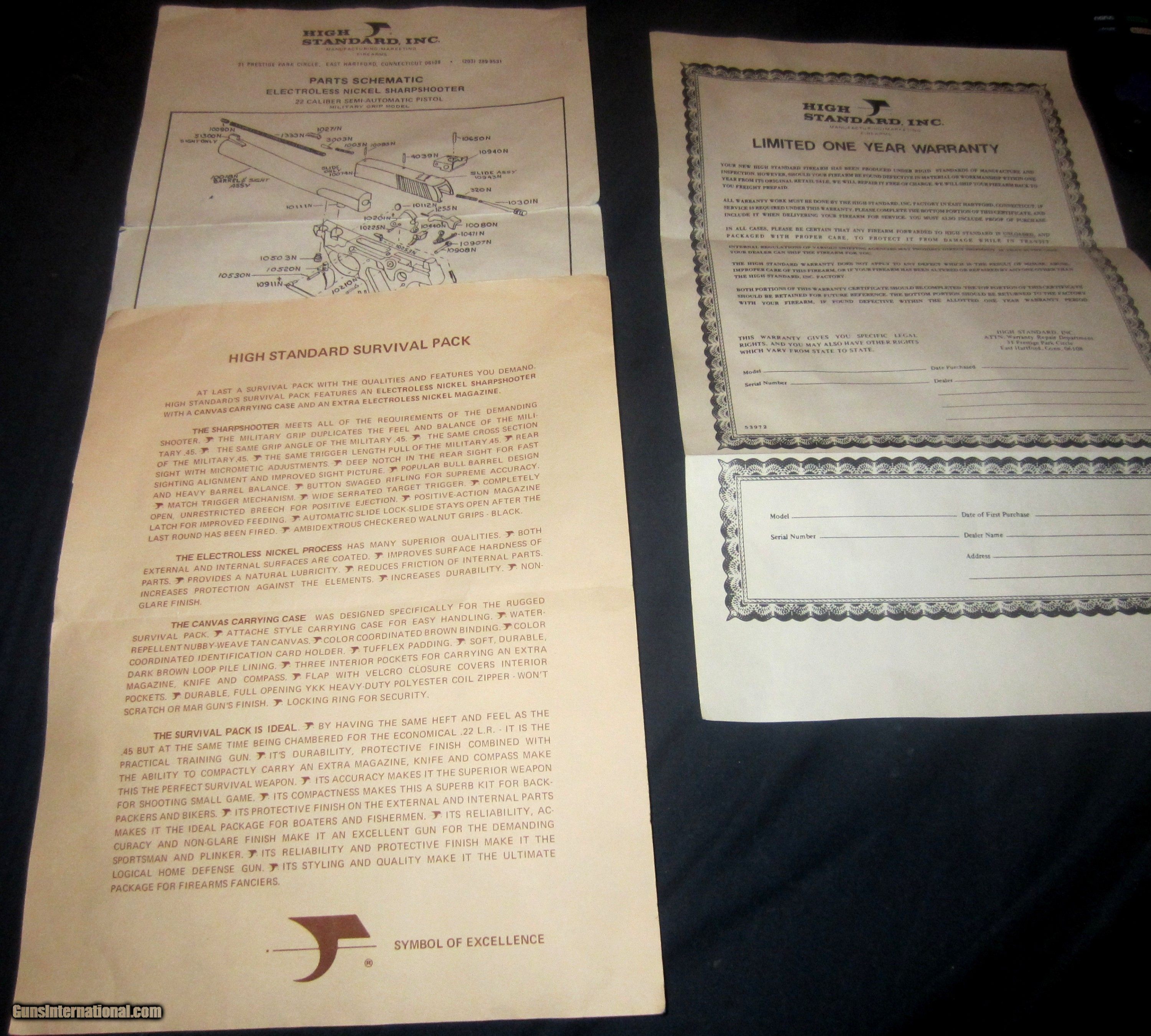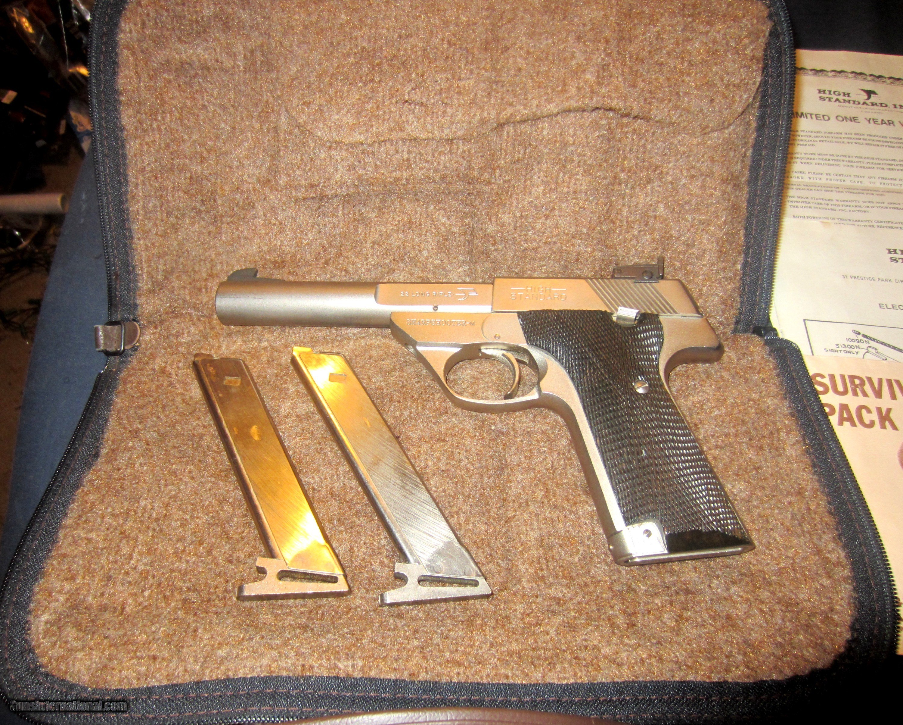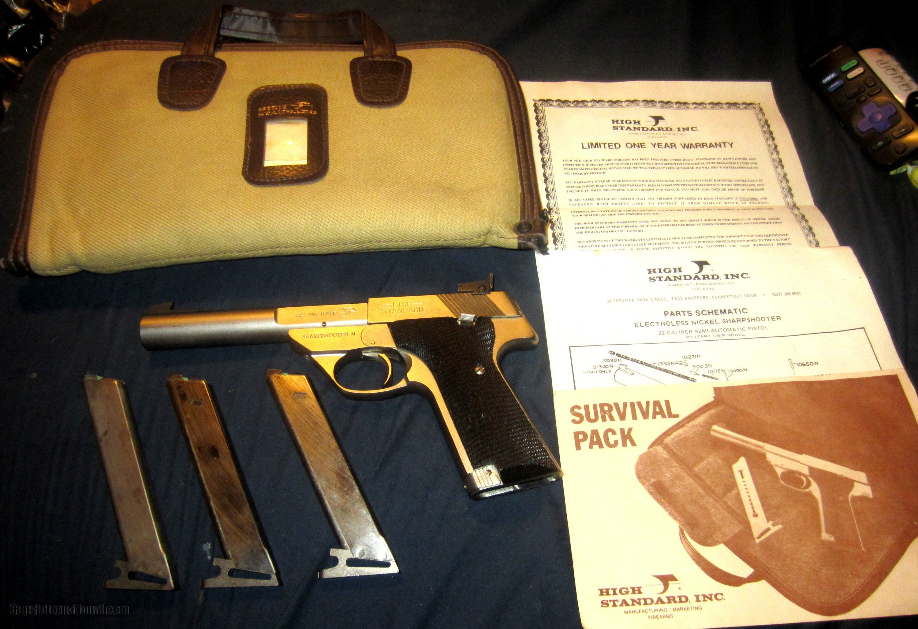 HIGH STANDARD 22LR SHARPSHOOTER-M SURVIVAL PACK~ELECTROLESS NICKEL FINISH~MINTY~CANVAS CASE~3 MAGAZINES~ORIGINAL PAPERWORK~PRIVATE NO TAX SALE!