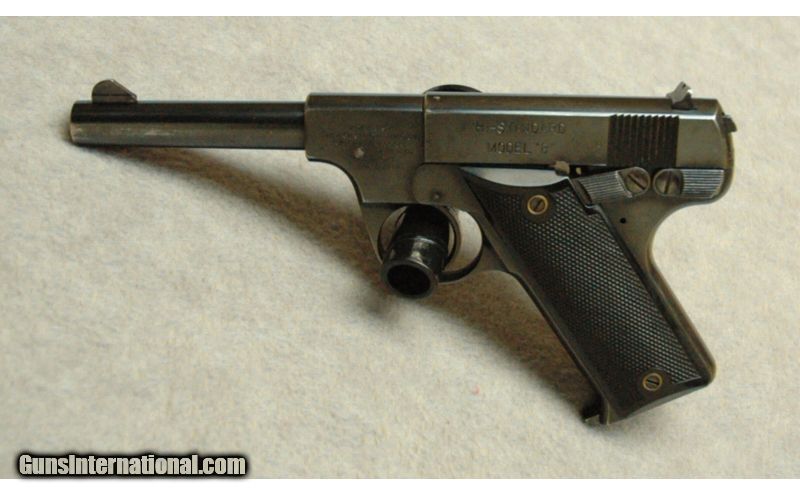 Description: High Standard Model "B" Pistol .22 LR. Very good condition, comes with one mag. Older High Standard semi auto rimfire pistol, good choice for collectors, target shooting or plinking. SOLD Caliber Info: .22 Long Rifle. Chambers: Semi auto. Metal Condition: Very good, light finish wear, small nicks & scratches. Wood Condition: Grips are in very good condition. Bore Condition: Bright. Barrels: 4 1/2" Barrel. Triggers: Serrated trigger. Stock: Factory grips. Weight: 32 Ozs. Sights: Iron sights. Extras: With one mag. Item Location: La Vista, NE |