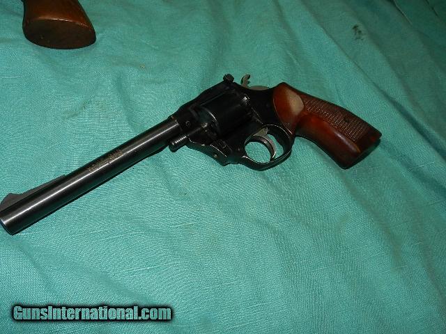Description: A very good condition, and rare Camp Convertible with two cylinders in .22LT and .22 Mag. , with a 6 " barrel, and excellent,clean, shiny bore. Overall condition is very good with about no wear!Finish remaining is about 98% blue on this steel frame . Has American checkered grips also in very good condition. Action works good and is smooth.Handy carry gun. This model has an easy to open the cylinder by pulling on the cylinder pin, and under the pit is a slot for push-in removal of the cylinder and cylinder crane. We don’t have asite .I prefer money orders or a check. Item ships when funds come in. If you can only pay with a card let me know. I hope you like my wide selection of unusual guns, knives and gun parts. I try to keep the prices affordable, which means I make less money than most dealers. I consistently have the best selection of older guns If you BUY IT NOW you must still contact us for details buy it now doesn't end the sale, it just sends an email telling us you want to buy this gun. A phone call won’t secure a sale! Not home many times, the first buyer by email buys the gun !Thissite doesnot close down a sale when you do a BUY IT NOW like Ebay!I can get six buy it nows in an hour, first buyer to email gets the guns, others are in second place! Best to send another email . Sometimes not home to get calls. Some guns are required shipment to a gun dealer near you for a transfer to you when it arrives. With the widest selection of older guns at great prices, We don’t have a store, and sell on the internet only. SOLD |