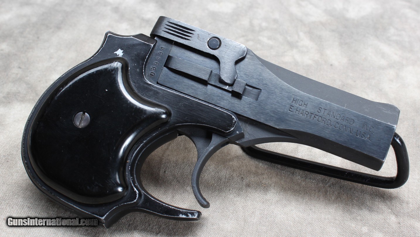 Description: This is a Blued High Standard Derringer in .22 Mag. It's in very good or better condition with minimal handling or firing wear, and the bore is in excellent condition. Part of the gun is painted black (the grip) and some of the paint is flaking off. The gun doesn't come with any accessories. If you are interested in, or have questions about this firearm, or would like photos of certain details, please email us at zstumpfbasspro, mmacchiabasspro & whavensbasspro with your name and phone number (Send to all emails for fastest response time), and we will respond as soon as possible. Or you can call our store directly at 239-461-7800, If you can't reach the gun counter call the operator and ask for Zachary, or Mike. .22 MAG Metal Condition: Very good - Excellent Bore Condition: Excellent Barrels: 3.5 Triggers: DAO Weight: 10 Oz Sights: Iron sights Item Location: Ft. Myers, FL Price: $299.99 Contact Seller |