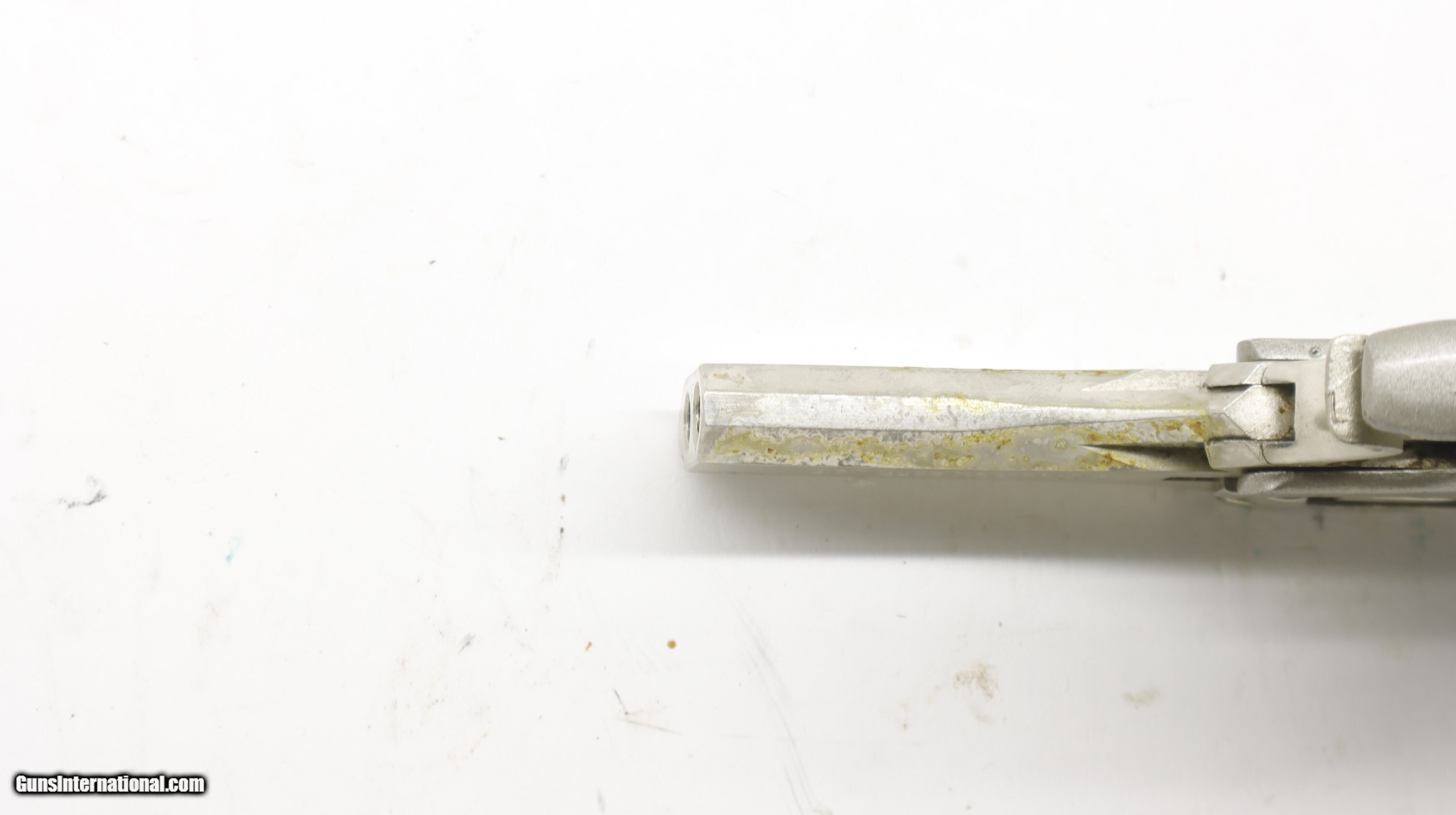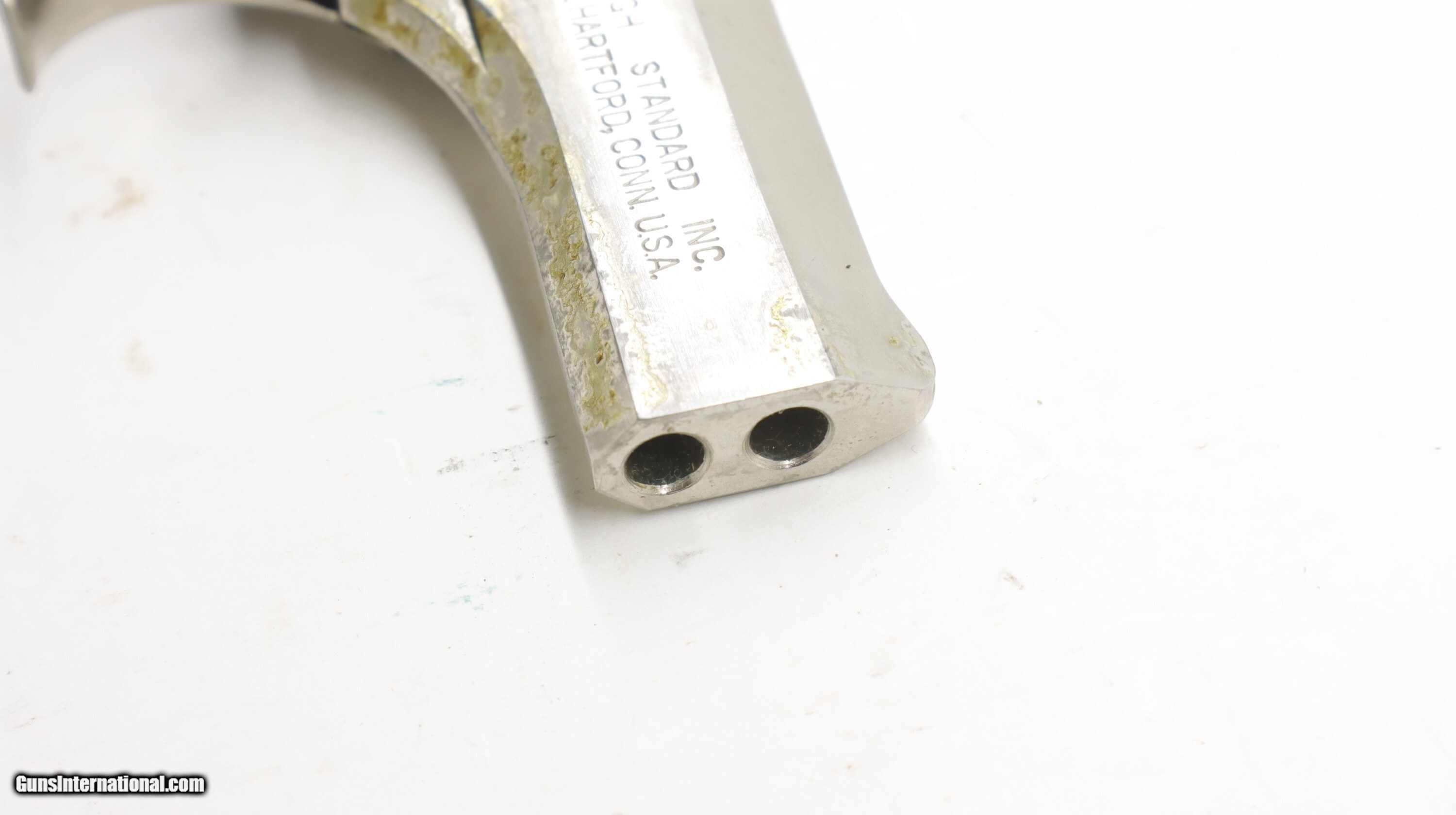 Description: High Standard Derringer Hi Std 22 Win Mag, 2.5" barrel. 2 barrels. SN is D545xx. Nice gun but has some finish isses as shown. I tried to rub off with some light solvent with no luck, might take some polishing to get off. We will trade for silver and gold coins and bars. We are an 07 dealer and deal in machine guns! Used guns might need a good cleaning to bring the gun up to your standards. We buy and trade for guns. All my guns (except layaway) come with a non-firing, 3 day unconditional return privilege, from the day UPS delivers to your dealer. Buyer pays shipping both ways if the gun comes back. Please make sure to make it to your FFL to inspect within the 3 days. We can hold until you know you can make to your dealer in your 3 day window. We accept personal check or any certified funds. We can also take your credit card, +3%. Email me if you would like these pictures sent to you, they will come through bigger and better than on the listing page here. We do offer Layaway. Our standard terms are 25% down, 90 days. Initial deposit is not refundable. Layaway guns do not have a return/inspection period. Email me with any questions. Please check your local laws to confirm it is legal to own in your state! Buyer pays $30 shipping and insurance to your FFL in the lower 48. AK, HI or PR is extra. I will ship to California, as long as it is legal, NO PROBLEM! I am a licensed FFL, and will include a copy of my FFL with the gun for your dealer’s records. I will ship to a C&R if the gun is eligible. I will ship to California, but you need to confirm the gun is legal where you are, California or other. WE BUY AND CONSIGN GUNS AND GUN COLLECTIONS! Will travel! We can do your machine guns! I am always looking for good clean, old original Winchesters to buy, consign, or trade, especially Pre '64's model 70's and model 54's. WE ALSO TRADE FOR CLASSIC CARS AND TRUCKS! We also trade for gold and silver. Handgun Caliber: .22 WMR (.22 Magnum) Manufacturer: High Standard Model: Derringer Condition: Used Price: $399.00 Contact Seller |