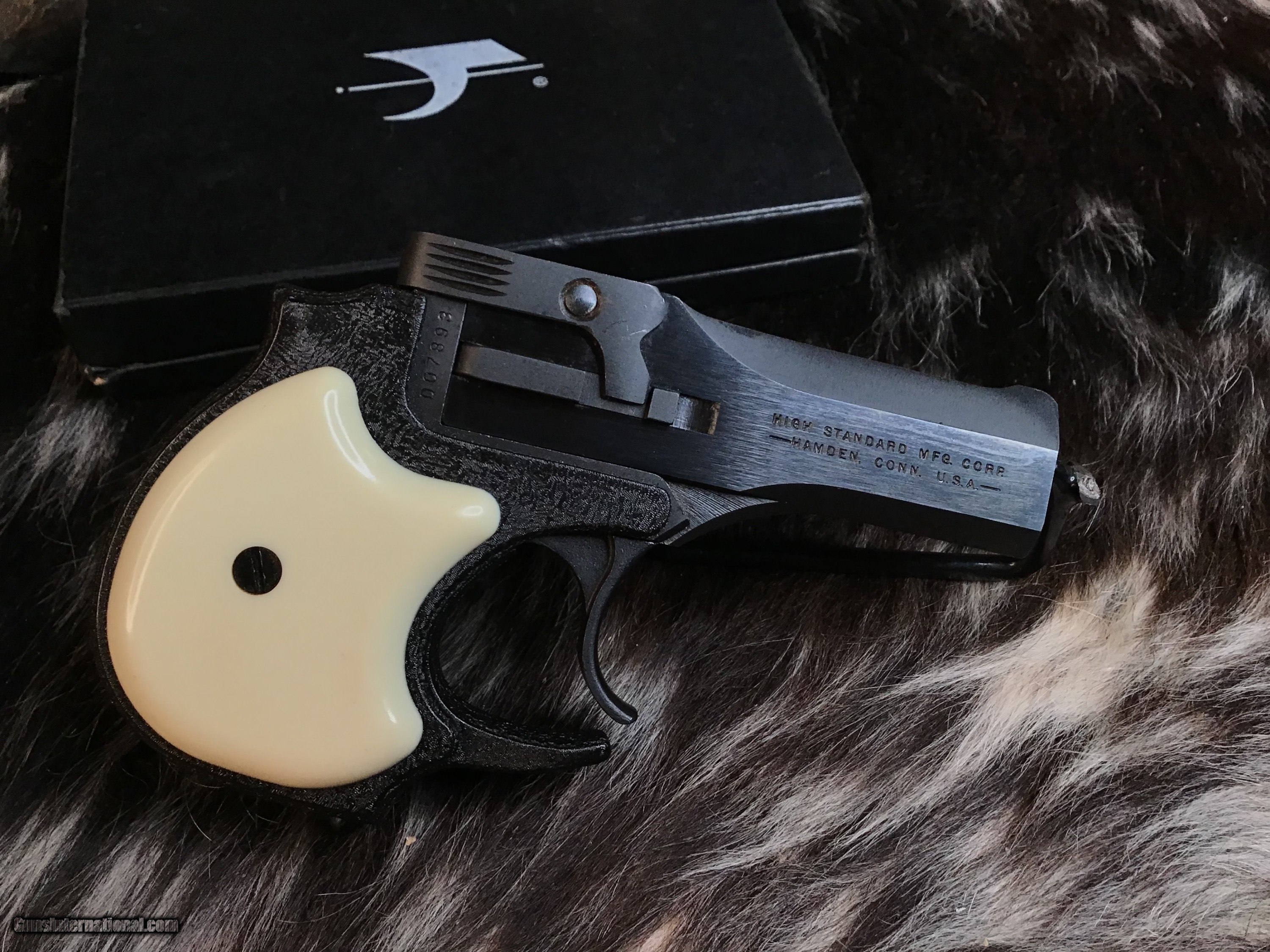 Description: Unfired in box High Standard DM-101 double barreled derringer chambered in powerful .22 Magnum. Safe double action only trigger for pocket carry. Pistol remains unfired since factory in original two piece box. Black finish with wrinkle highlights. White Pearlite grips. This innovative design solution by High Standard was a remarkable change to the over under derringer. Made in the USA and a great unfired piece for your Mouse Gun Collection. Add 3% if paying with credit card. Free shipping for all U.S. Veterans. God Bless America from a proud American, and a Viet Nam Vet , thankful for our freedoms.. paid for by the Blood ,Sweat and Tears of our brave men and women in uniform. Ten Below Firearms is a Veteran owned and operated business. We specialize in out of production models of high quality firearms. We love to ship! We ship to all states where legal, just give us a call! Handguns normally ship for $35 and Long guns for $50 and up for extra length long guns. That's 2-3 day USPS Priority shipping, Delivery conformation and with tracking number. Optional Postal insurance is additional $1.85 per $100 and highly recommended. We are OPEN BY APPOINTMENT ONLY FOR IN PERSON VISITS, We trade, sometimes. All payments sent via USPS Priority mail must be received within FIVE DAYS of date of purchase or item will be relisted for sale. **PROPS MAY BE USED FOR PHOTOS, PROPS ARE NOT INCLUDED WITH THE SALE OF THIS FIREARM** Thank you! Layaway:If needed we offer a 60 day layaway program. We offer FREE 60-day layaway. Buyer must pay at least 1/3 down, 1/3 in 30 days and remainder in 60 days. On all uncompleted layaways, all payments made will be non-refundable. The 60 days begins the day the buyer commits to buying the gun. 90 day layaway is available with 1/2 down, via phone. All layaway sales are final. Layaway is not available on negotiated prices. SOLD Handgun Caliber: .22 WMR (.22 Magnum) Manufacturer: High Standard Model: DH- 101 Serial Number: 007893 Barrel Length: 3.5 inch Condition: NOS Metal Condition: Excellent Bore Condition: Excellent Barrel Type: O/U Action: Double action only Triggers: DA Weight: 11 oz Sights: Fixed Manufacture Date: 1969-1984 Case: Box Item Location: Mn |