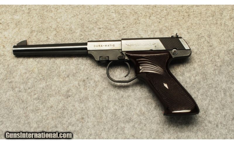 Description: Here we have a nice example of a High Standard Dura-Matic pistol in .22 LR. The gun is still in very good shape for its age, and even comes with its original factory box. SOLD Caliber Info: .22 LR Metal Condition: Very good, with only some mnor handling and usage marks Wood Condition: Very good Bore Condition: Excellent Barrels: 6.5 Triggers: Single Weight: 2 lbs Sights: Fixed Extras: With Box. Item Location: Scarborough, ME |