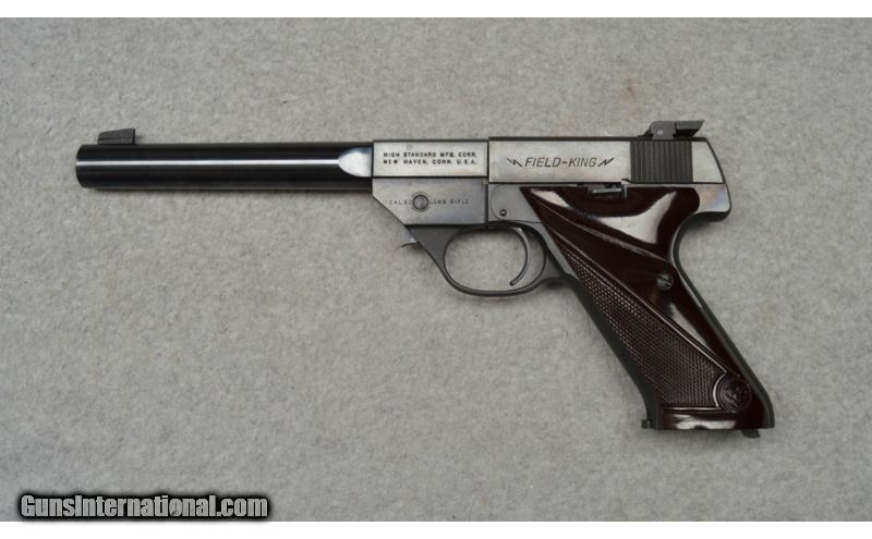Description: High Standard Field-King .22 Long Rifle in excellent shape with minor handling marks. SOLD Manufacturer: SN: 398456 Caliber Info: .22 Long Rifle Metal Condition: Good condition with minimal signs of use Wood Condition: Very good condition Bore Condition: Clean Barrels: 6 3/4 Butt Pad: Factory grips Sights: Fixed front and adjustable rear Item Location: Fort Worth, TX |