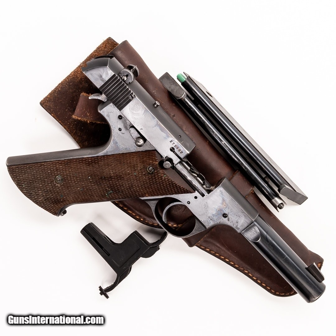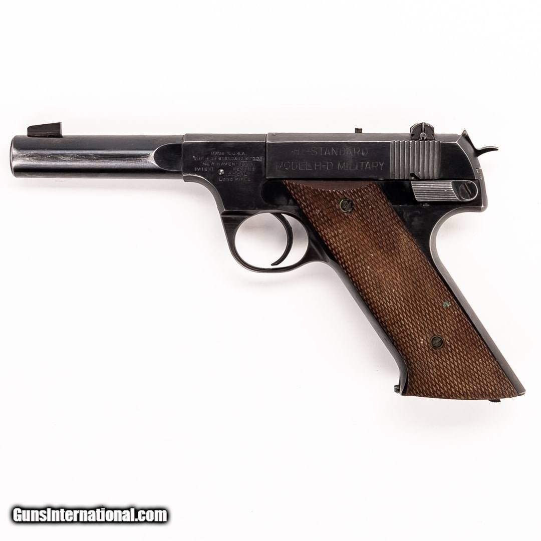 Description: Guns Listing ID: 379616 The Hi-Standard HD Military is a vintage 22 LR pistol that is both collectible and fun to shoot. Hi-Standard made a name for themselves by making exceptional high-quality "budget" firearms during and after the Depression Era. The HD model was their most popular until 1955, when it was replaced by the Olympics Series of handguns. This HD Military comes with three 10-round magazines, a loader, and a right-handed OWB leather holster. Serial number: 271732 SOLD Curio/Relic: Yes Manufacturer: HIGH STANDARD Model: H-D MILITARY Caliber Info: .22 LR Condition: Used - Certified Barrels: 4.5 BARREL Finish: BLACK |