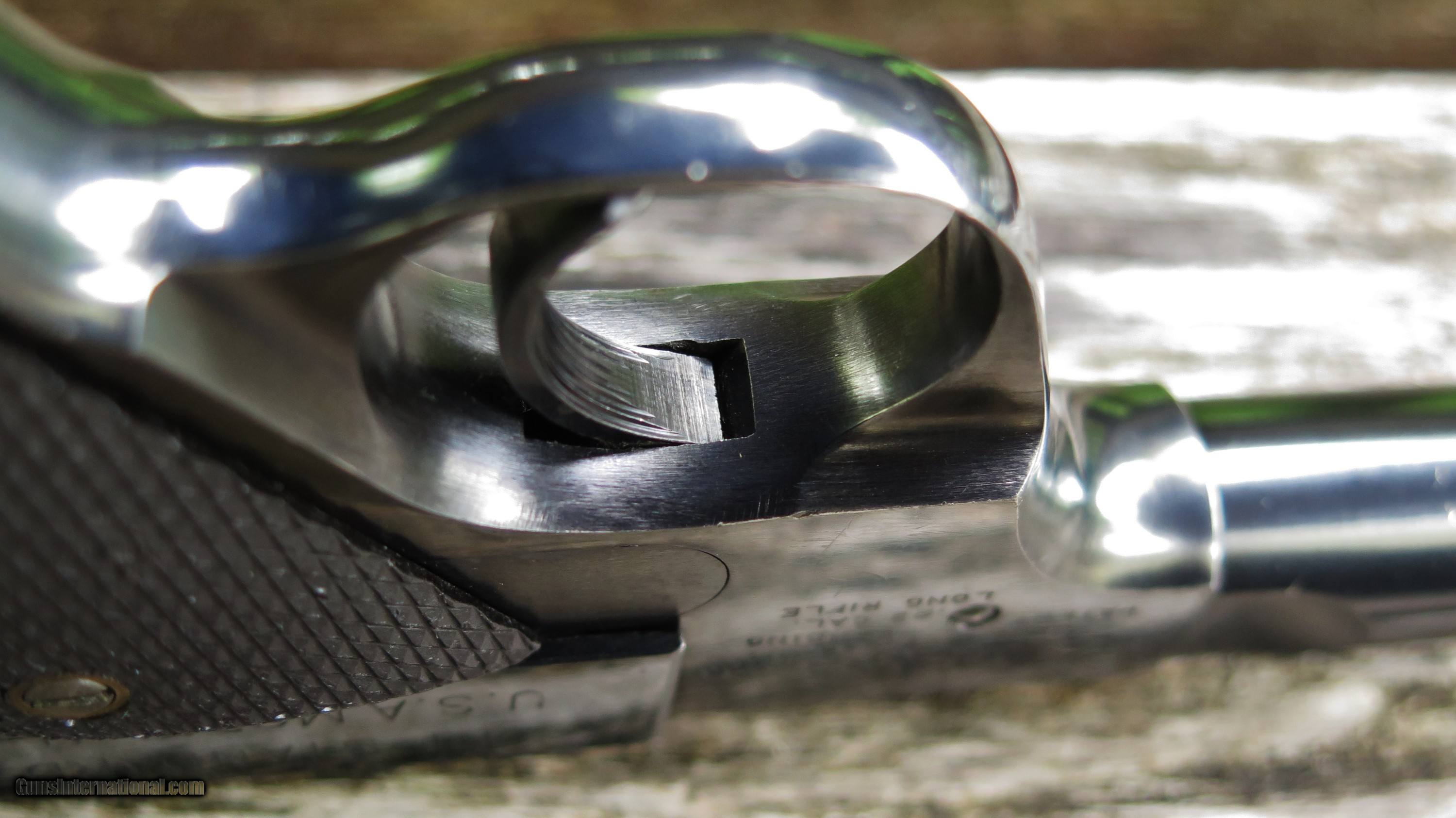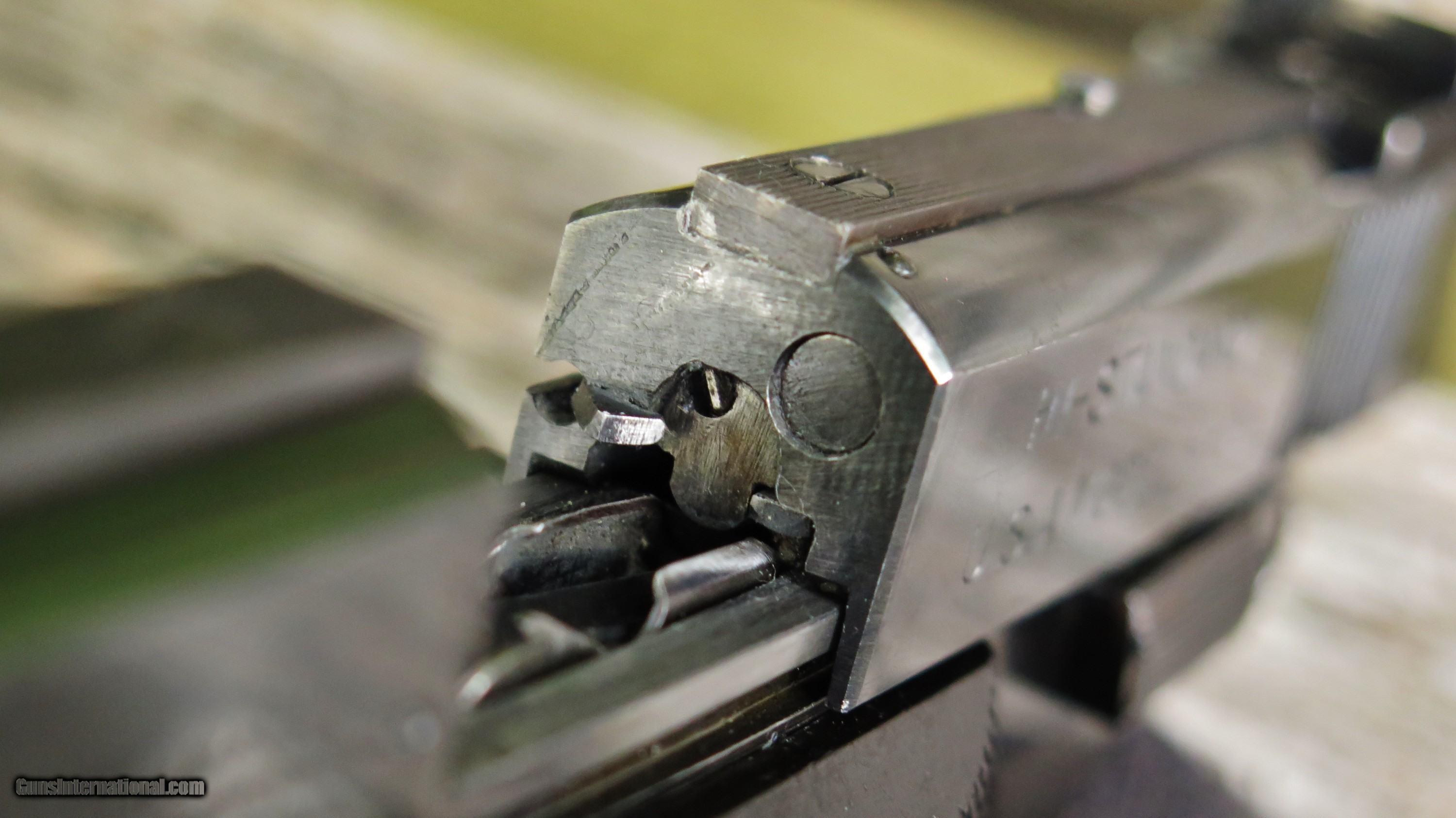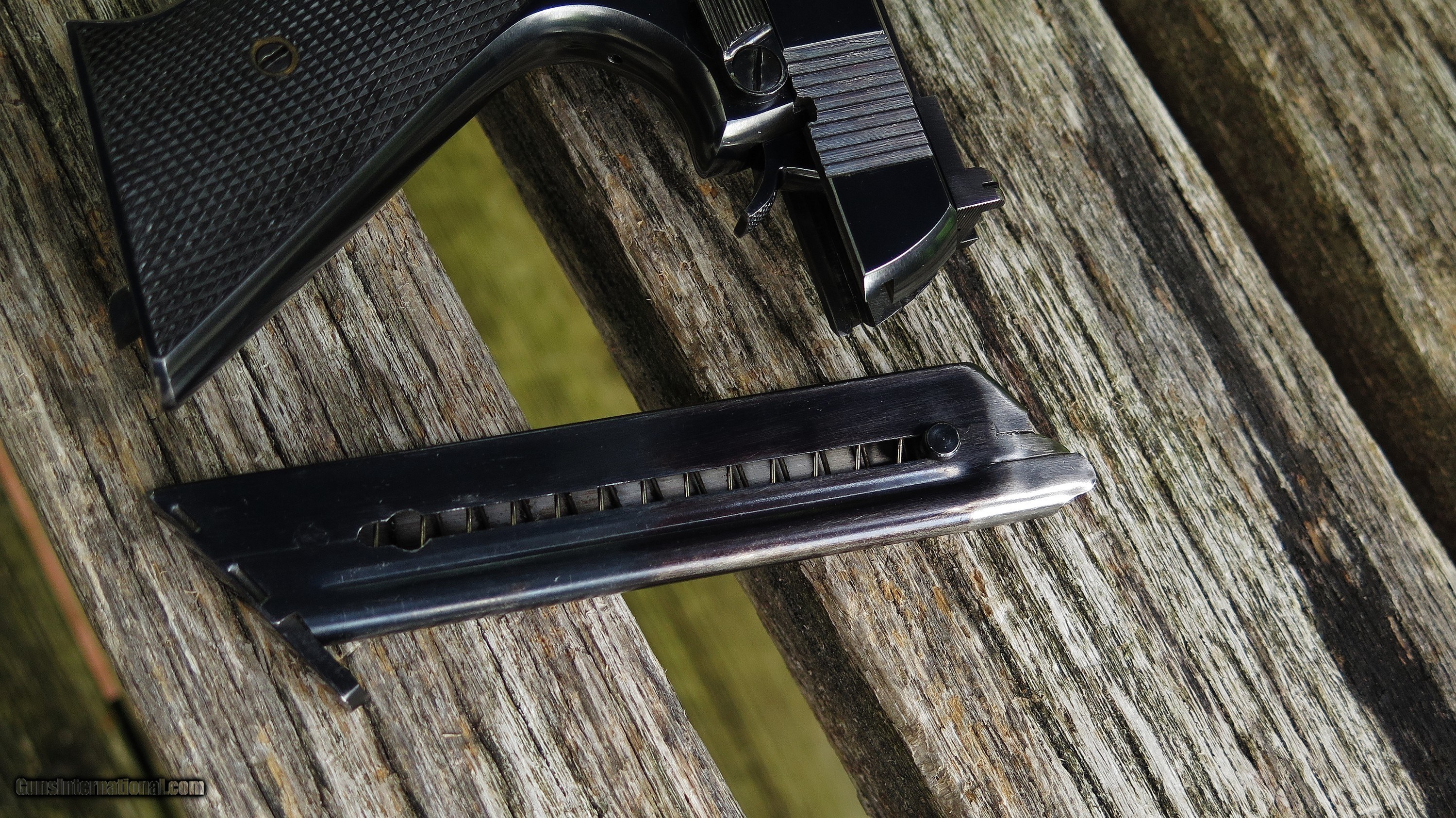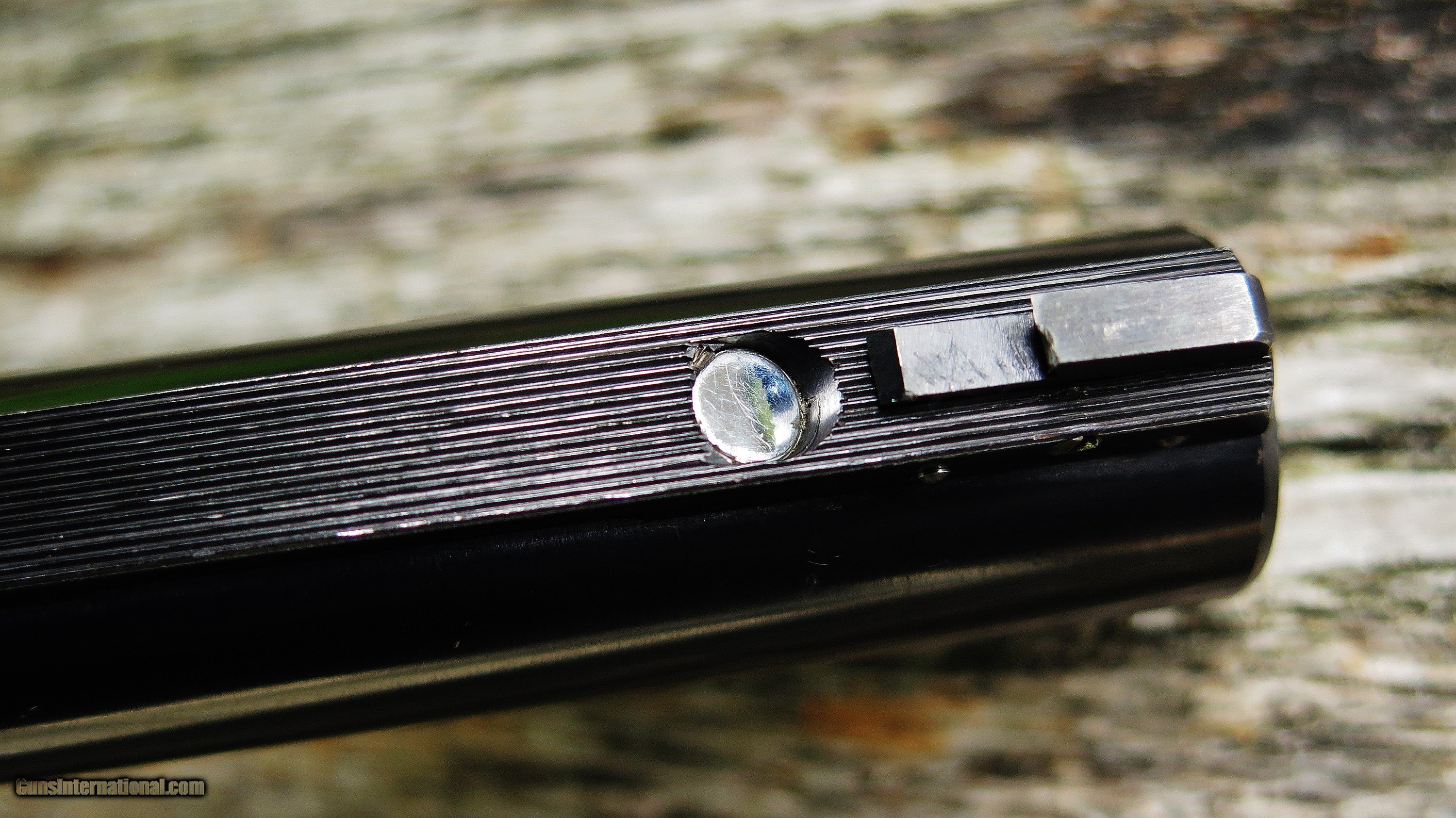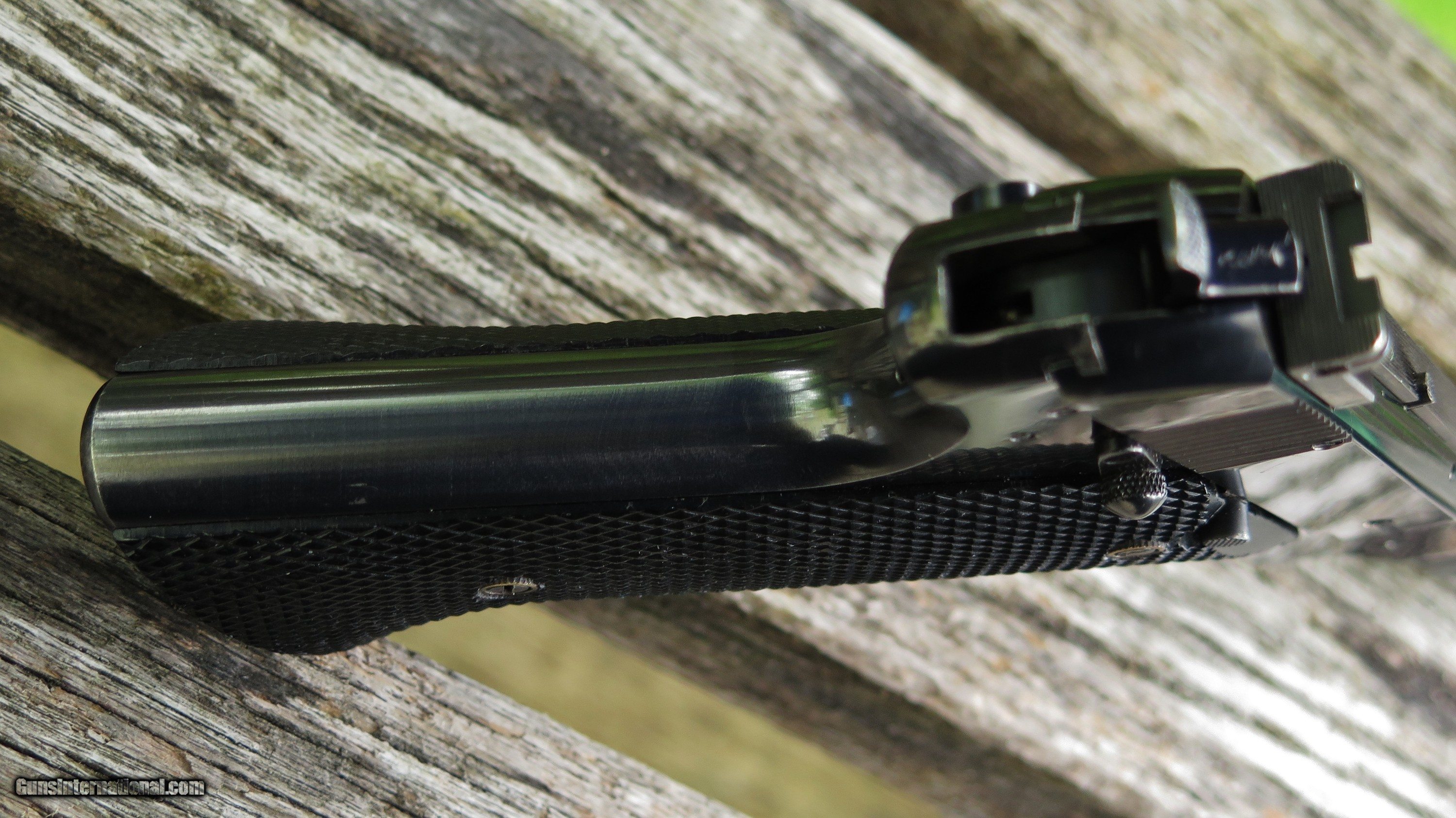 Description: This is a H-D USA .22 LR 4 1/2" Target and training Pistol that was made for the US Military back in 1944 In the USA in Connecticut. Marked "Property of US". It has the King Super Target Vent Rib with Mirrored Front sight. King Target guns are scarce. On a US Military gun even more so. This one is original blue and with correct original black checkered grips. The bore is mirror bright with deep rifling. The action is smooth and tight. Trigger pull is light and crisp. Slide is matching numbers. The magazine is the correct two-tone. Virtually no grip strap wear on the original blue so it is little fired but with some typical military handling marks. It is still a very nice looking semi-auto pistol with High Standard's commercial quality high luster blue. This blue only used on the earlier models. This King Super Target H-D USA is the probably the only one in existance. Scarce and desireable. I am Oregon Lumberjack on the other big site with 1000's of positive feedbacks. I am a FFL dealer. Shipping is $35 to your dealer. SOLD |