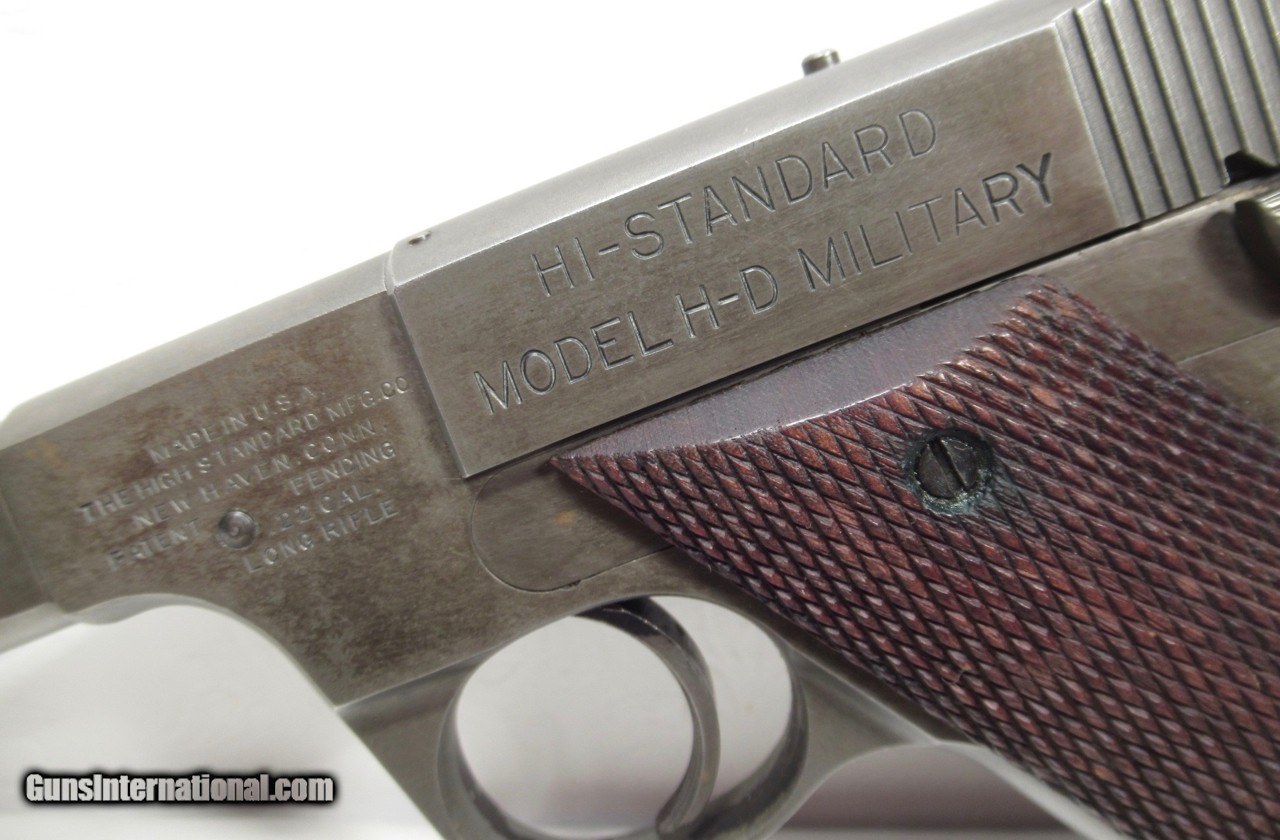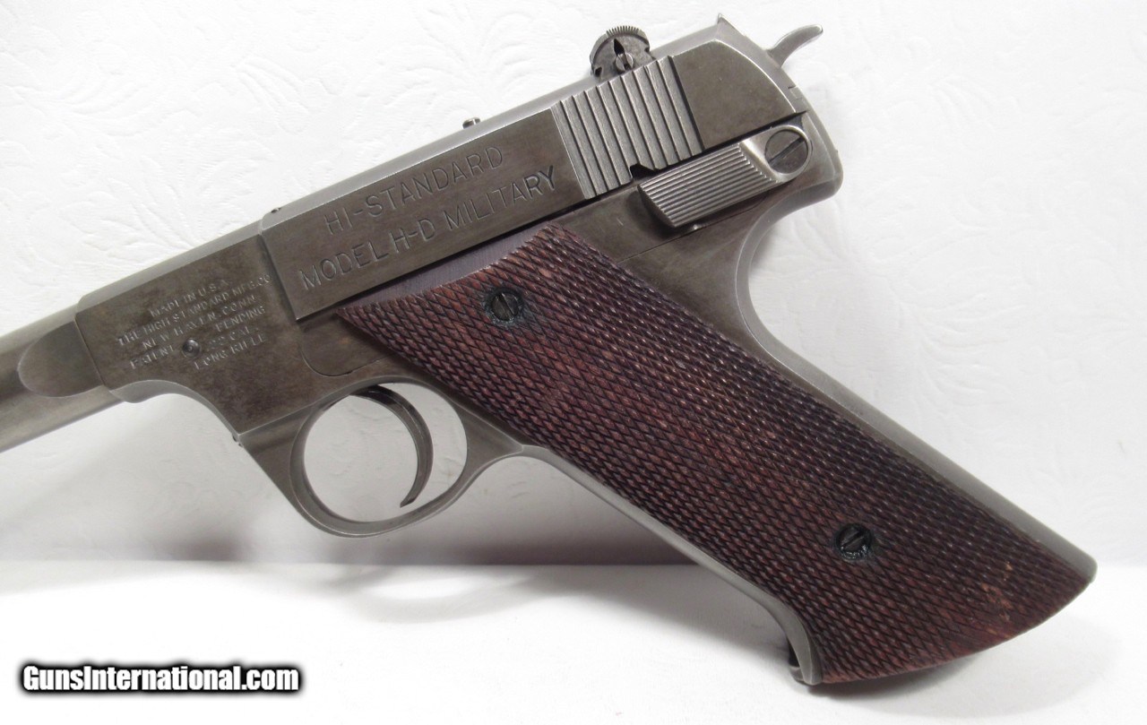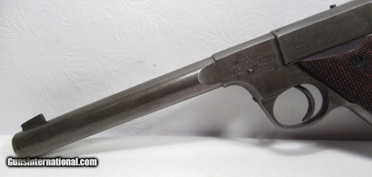 Description: HD Military High Standard 22; Serial No. 250057; .22 L.R. Semi-Auto; 6 5/8” Barrel; Made 1940’s; Perfect Bore and Action; Faded Blue/Gray Finish; Nice Original Grips and Magazine; See All Photos for Condition; No Text, Call or Email Only; PERSONAL PROPERTY of Harold Wieser; Price: $475 + $30 S&H; Price includes insured shipping; return policy: three days inspection from the date the item is received; full refund of shipping both ways ONLY IF THE ITEM IS MISREPRESENTED. SOLD Manufacturer: Hi-Standard Model: HD Military Serial Number: 250057 |