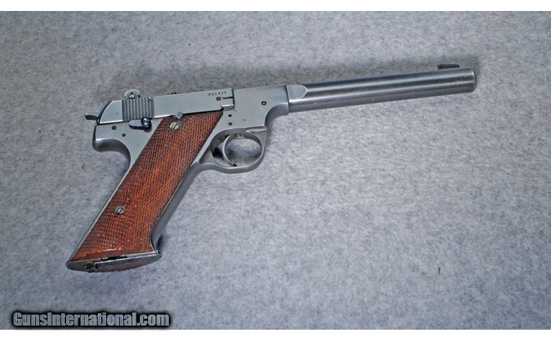 Description: Firearm is in overall very good condition. Bluing is very nice and even, with some wear evident on the outside edges as well as some bluing loss on the right hand side of the barrel. Also some bluing loss and slight pitting on the left had side of the barrel. No scratches in bluing observed. Wood grips are in good condition as well with only a slight amount of wear on the top and bottom of both grip panels. Magazine is a correct factory two-tone, and a factory box with the correct serial number is also included. .22 Long Rifle SOLD Chambers: .22 Long Rifle Metal Condition: Good Wood Condition: Good Bore Condition: Very good Barrels: 6.75 Weight: 2.5 lbs. Item Location: Scarborough, ME |