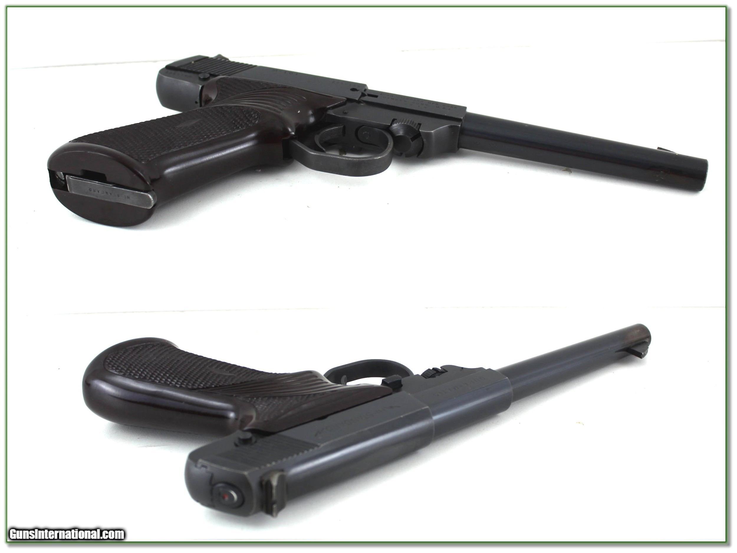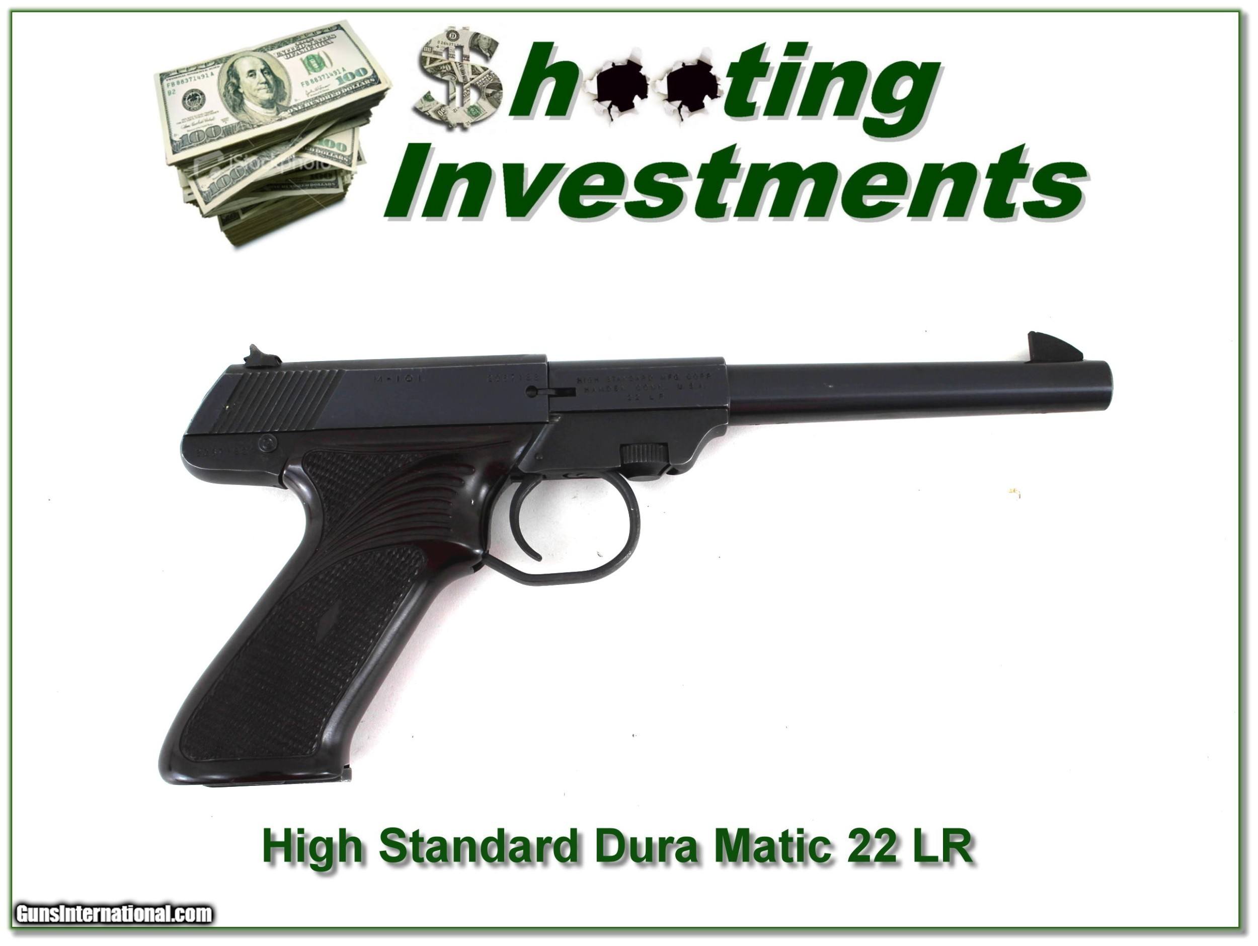 Description: Collectors, this is a very nice Hi-Standard Dura-Matic in 22 LR. It has a 6.5in. I only find a few marks near the muzzle of the barrel. The bore is bright and shiny. I am selling this one on consignment and as such lay-a-way can’t be used. It does of course have the standard 3-day inspection. Shipping and insurance is $39. Please email me with any questions or larger pictures. (Consign your quality firearms with Shooting Investments for only 12%! Let me know if you have any you would like to sell!) 22-1084 Payment: Payment is by Money Order, Cashiers Check or Personal Check. I can now also accept Credit Cards (MasterCard, Visa, Discover & American Express) with a 3% convenience fee. Shipping: The shipping charge will be listed in each description. It is $49 for most long guns. Some heavy guns, over 48in boxes or those insured for over $2000 will be higher. Shipments to Alaska and Hawaii are higher because air shipment is required. Most firearms are shipped on Tuesday and Thursday and usually in 5 days of receipt of payment. We package all shipments carefully and insure them. Optics are shipped Priority Mail and most other non-firearm shipments are shipped First Class. Returns: Our return policy is simple. If for any reason you are not pleased with your purchase, you may return your item for a full refund of purchase price. Ammunition cannot be returned. It is important to us that you are happy. Guns cannot be fired or dissembled before returning them and they must be returned in the same condition as received. Notification of a return must occur with-in 3 days of receipt at your dealer. Shipping, convenience and dealer fees are not refundable and are the responsibility of the buyer. Lay-a-way: If needed, we offer a 60 day lay-a-way option on most firearms. It is 1/3 now, 1/3 in 30 days and 1/3 in 60 days. Lay-a-way firearm sales are final and if not completed the first payment cannot be returned. Consigning your firearms with Shooting Investments: We will help you get top dollar for your firearms. While most local guns shops charge 20% or more, our fee is only 12% with a minimum of $75. At your local gun shop it might take months to sell. Selling on-line provides instant access to thousands of interested buyers. You won’t find any other on-line dealer willing to sell your firearms for only 12% or listing every gun on 3 separate s. Selling through an House typically costs the seller 15% and the buyer an addition 15% (so 30%) and you have to wait several months to sell and longer to receive funds. If properly priced, we will sell your firearms in a few weeks. Send us an email or give us a call and we’ll explain how easy it is for you to get top dollar. Trading: Trading for use is really just buying your gun to re-sell. If you have a gun you want to trade, please email a picture and we will let you know what we can give or it. You will always get more if we sell it for you on consignment. Help for California Buyers: We are happy to ship to California. It is the buyer’s responsibility to make sure any item you buy is legal in your state. We are also happy to help with your purchase of a firearm from someone other than us. If you see a gun you would like to buy but the seller can’t or won’t ship to California they can ship to use and we’ll then ship it to your California dealer. The cost for this service is only $30 + shipping. Let us know if we can help! SOLD |