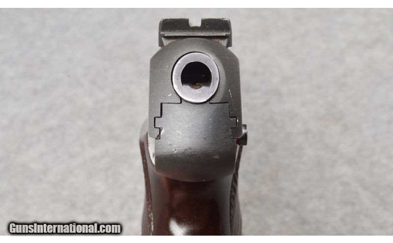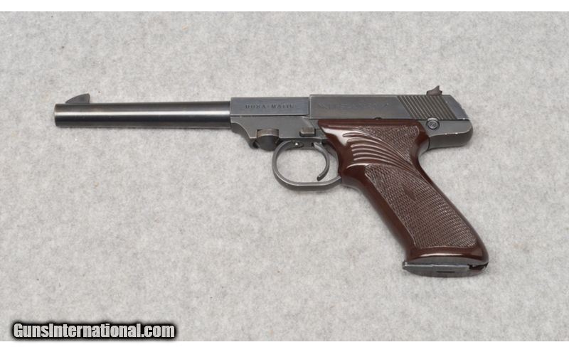 Description: This is a very nice older High Standard M-101 Dura-Matic semi auto pistol in .22 long rifle. The blued frame and barrel are in very good condition. The blued 6.5" barrel is excellent with sharp crisp rifling in the bore. The factory trigger is firm and crisp in release. The dark brown checkered hand grips are in very good condition. This survivor High Standard was the competitive standard in the 1950s and 1960s. Own a nice piece of shooting history. No box or other accessories. .22 Long Rifle SOLD Metal Condition: Very Good Bore Condition: Very Good Barrels: Blued 6.50 Triggers: Factory Curved Grooved Stock Dimensions: 4 1/2" LOP Weight: 34 0z. Sights: Factory Fixed Item Location: West Chester, OH |