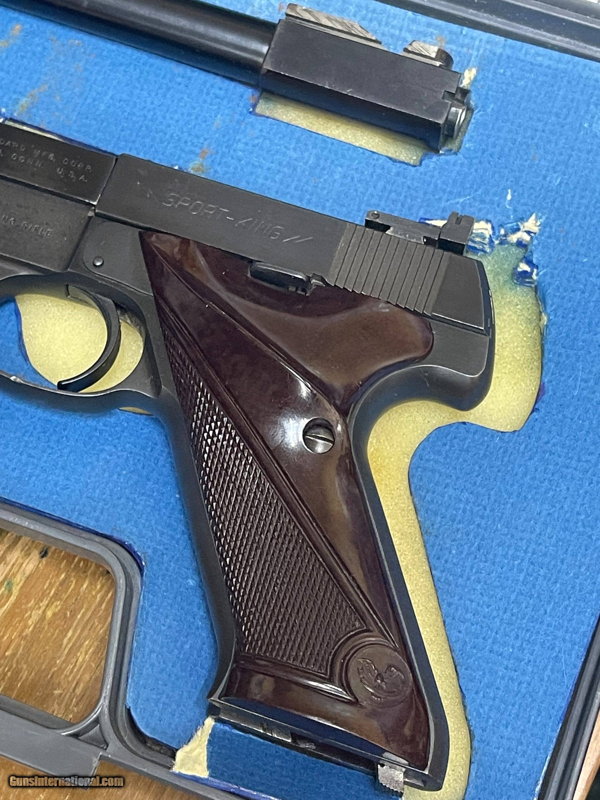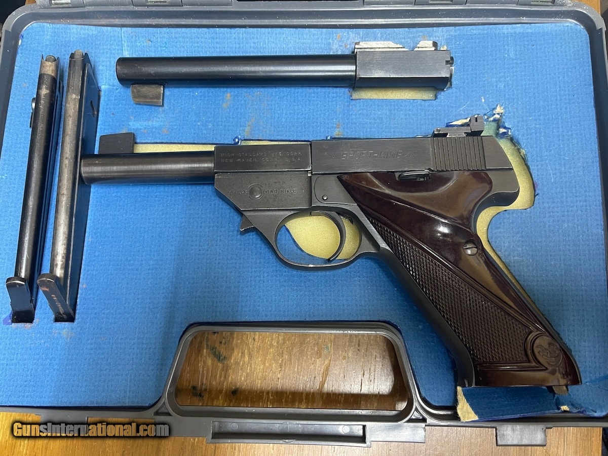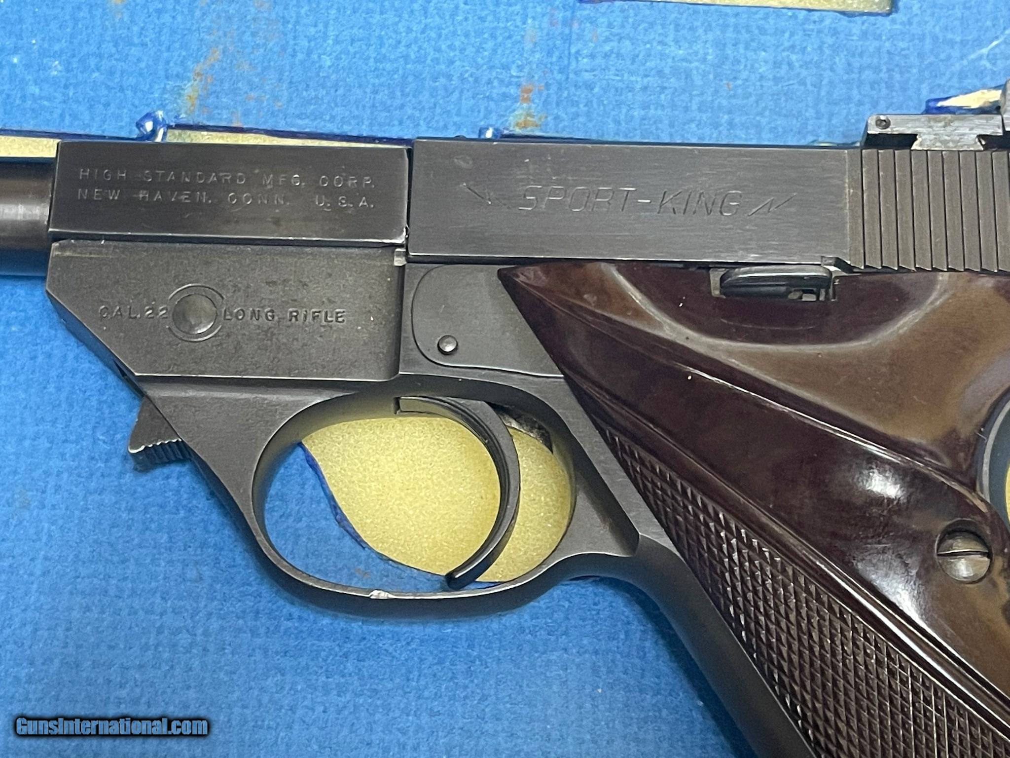 Description: Guns Listing ID: 473748 HIGH STANDARD SPORT KING The High Standard Sport King is a vintage semi-automatic rimfire handgun. High Standard was known for their phenomenal target .22‚‚s that were exceptionally accurate, well-made, and surprisingly affordable. If you‚‚re looking for a recreational shooter, plinker, or target pistol, this is a great buy. This handgun has TWO 10-round magazine. This handgun has TWO, ONE IS 4.5\" AND 6.5\" BARRELS VERY GOOD CONDITION, BLUING MISSING ON 4.5\" BARREL, NOTHING BAD. G-I-430 SOLD Manufacturer: HIGH STANDARD MFG CO. Model: SPORT-KING TWO BARRELS 7" 4.5 Caliber Info: .22 CAL Condition: Used - Non-Certified Barrels: 7 BARREL Finish: BLUED |