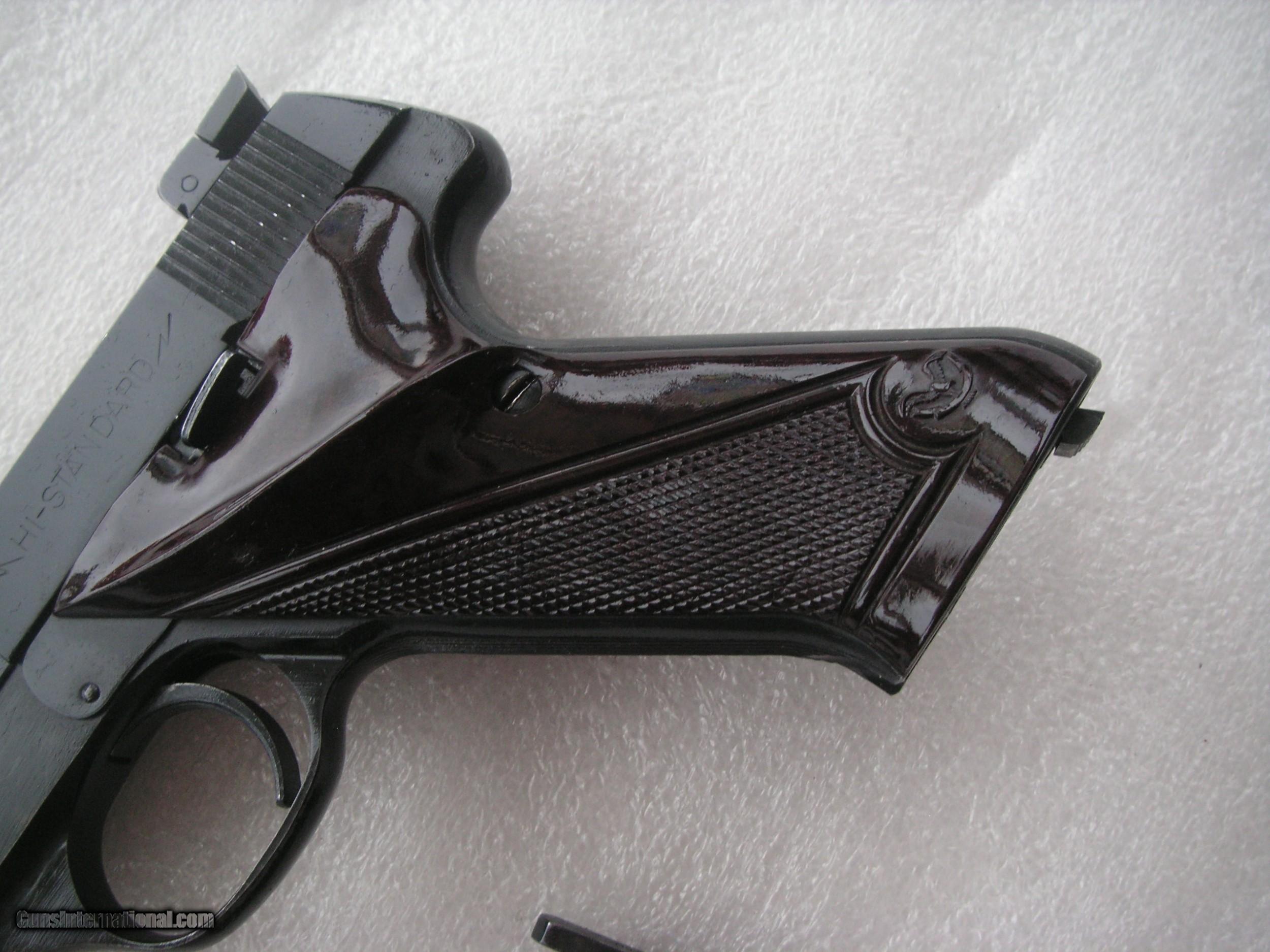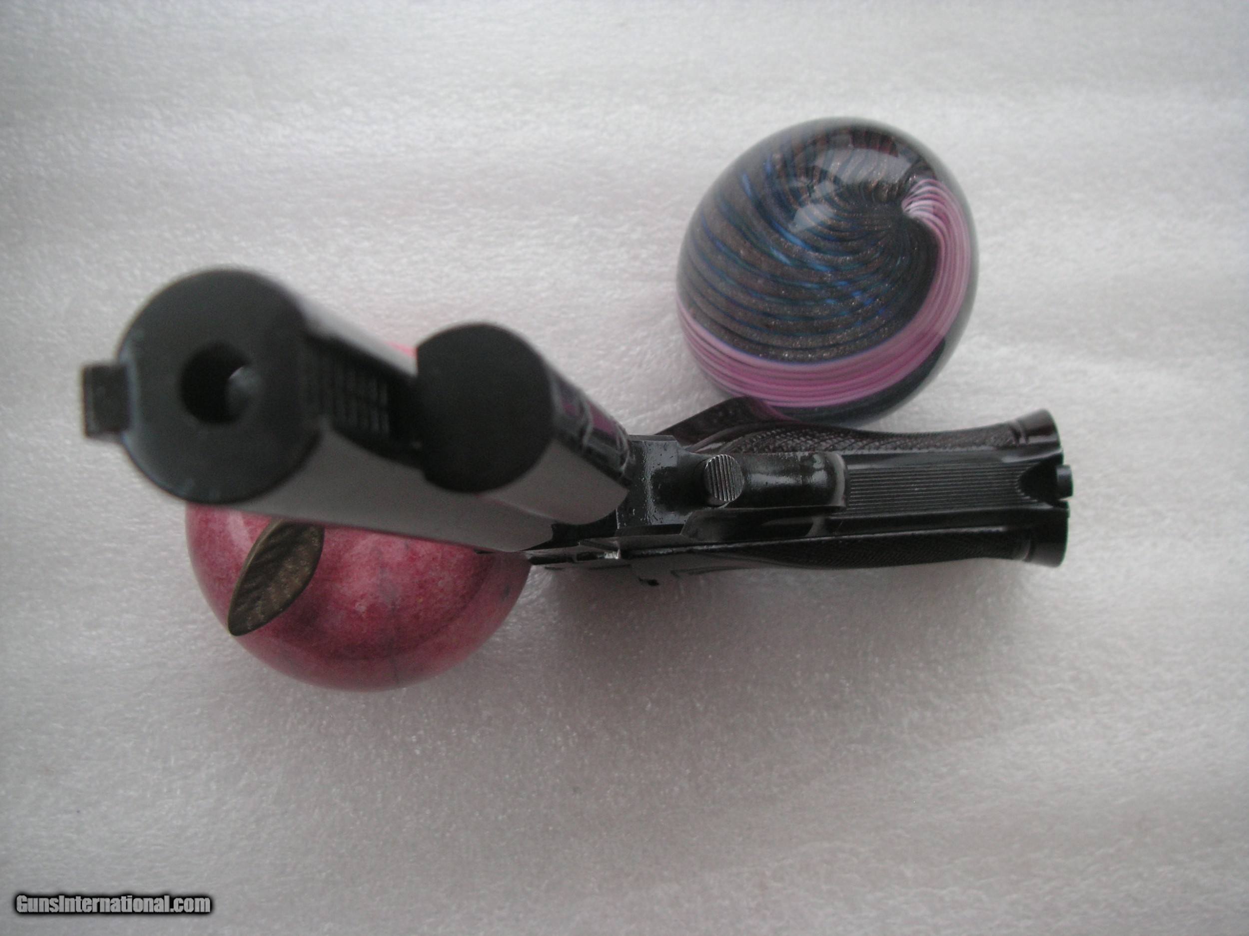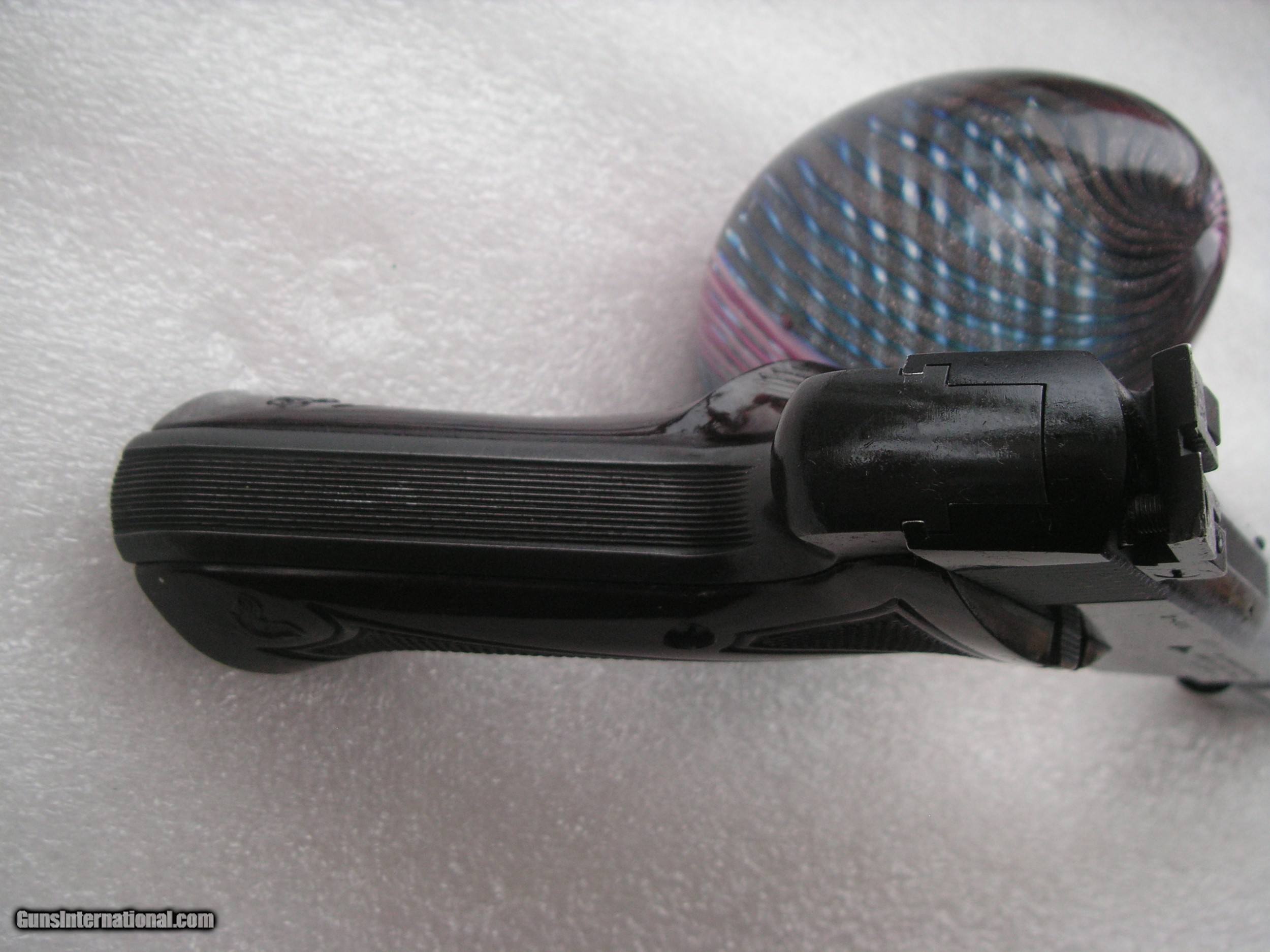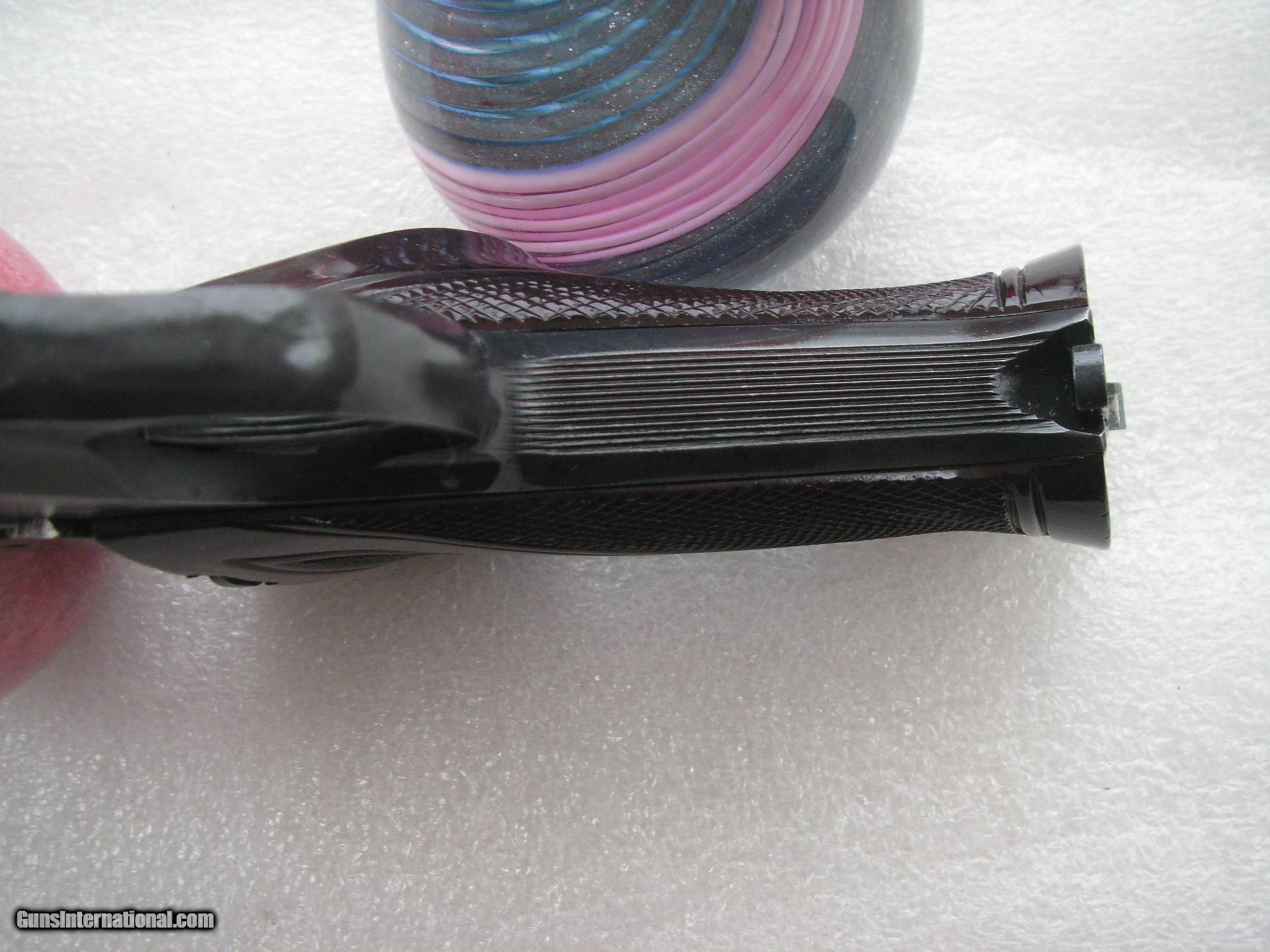 Description: SEE THE PICTURES OF THIS HIGH-QUALITY HIGH STANDARD MODEL 101 OLYMPIC IN 99% ORIGINAL CONDITION WITH 6.75" INCORPORATED MUZZLE BRAKE WITH ONE 3 oz WEIGHT BARREL, BROWN PLASTIC THUMB REST GRIPS, THIS IS ONE OF THE MOST ACCURATE WITH THE CRISPY ACTION WITH ALMOST NO RECOIL TARGET PISTOLS WITH LIKE NEW SHINY BORE BARREL. THIS BEAUTIFUL OLYMPIC TARGET PISTOL WILL IMPROVE SCORE COUNT TO ANY COMPETITION SHOOTER, IN THE SAME TIME IT IS A HIGHLY COLLECTIBLE HIGH STANDARD OLYMPIC PISTOL. We offer three days of the inspection. Only not fired changed parts or condition guns would be accepted. Return shipping cost is the buyer expense. We accept bank & postal money orders or personal & business checks, but those take time to clear. We also offer 90 days layaway with 25% down & three more payments of 25% per month. The layaway plan does not have 3 days inspection privileges; therefore there is a “NO RETURNS” policy. If you have offered to buy my guns, and the payment has not made soon after (from 3 to 5 days), I will not guarantee you will be the buyer of it. I can secure your purchase only when you have paid for it. If your payment comes too late, I will return it back to you. Please check our other nice listings. SAFETY NOTICE: Buyer solely responsible for following all safety requirements in handling guns. The buyer agrees to hold seller harmless against damages, injury or death caused by defective merchandise or ammo. NOTICE: DISCLAIMER OF LIABILITY ADT Sporting Goods and Collectibles assumes no responsibility for product malfunction or for physical injury or property damage resulting in whole or in part from criminal or negligent use of the product, improper or careless handling, unauthorized modification, use of defective, improper, hand-loaded or reloaded ammunition, customer abuse or neglect of the product, or other influences beyond ADT Sporting Goods and Collectibles direct and immediate control. Before using any firearms, always have it checked over by a licensed gunsmith. If you like, we can negotiate the terms of shipping. The offered shipping price includes insurance cost & priority mail cost only.E SAME TIME IT IS A HIGHLY COLLECTIBLE CALIBER .22 SHORT HIGH STANDARD PISTOL. SOLD Curio/Relic: Yes Manufacturer: HIGH STANDARD IN HAMDEN, CT Model: 101 OLYMPIC Serial Number: 620235 Barrel Length: 6.75 Caliber Info: .22 SHORT Bore: SHINY & BRIGHT Condition: EXCELLENT Metal Condition: 99% + ORIGINAL blue Bore Condition: SHINY AND BRIGHT |