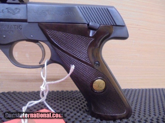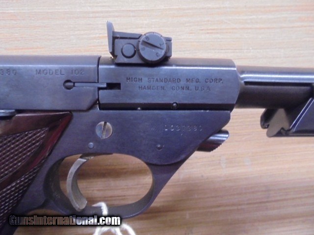 Description: USED GOOD CONDITION HIGH STANDARD MODEL 102 SUPERMATIC CITATION .22 LR 9" BARREL WOOD GRIPS ADJ REAR SIGHT 1 - 10 RND MAG ****PLEASE CALL IN THE WITH THE SELLER’S INVENTORY NUMBER IF INQUIRING ABOUT A FIREARM****** WE DO NOT SHIP FIREARMS AND/OR FIREARMS’ PARTS OUT OF THE 50 UNITED STATES, SO DON’T ASK PRICE REFLECTS PAYMENT BY MONEY ORDER / CASHIERS CHECK. A 3% PREMIUM IS ADDED FOR CREDIT CARDS. WE DO ACCEPT PERSONAL OR BUSINESS CHECKS, BUT THERE IS A GRACE PERIOD OF 10 BUSINESSS DAYS ON THEM. Shipping is $40 for handgun and $30 for long gun. Shipping to Alaska and Hawaii will be more based on weight of firearm. WE DO OFFER LAYAWAY PLANS FOR 30,60, OR 90 DAYS. THERE IS A $5.00 CHARGE FOR EVERY 30 DAYS ITEM IS ON LAYAWAY. WE ALSO REQUIRE A 20% DOWN PAYMENT ON TOTAL OF LAYAWAY SALE. LAYAWAYS ARE NON- REFUNDABLE. HERE IS HOW THIS PROCESS WORKS. YOU WOULD CALL US AT 540-337-9218 WITH LISTER # TO PURCHASE THE GUN. THEN ONCE I HAVE RECEIVED PAYMENT AND AN FFL (FEDERAL FIREARMS LICENSE) FROM A LICENSED DEALER IN YOUR AREA OF YOUR CHOICE. WE WILL THEN SHIP THE GUN TO THEM. YOU WOULD THEN PICK UP THE GUN AT YOUR LOCAL DEALER AND DO PAPER WORK THERE. Please have your FFL Dealers contact information when you call. DOMINION OUTDOORS 15 ANGELA COURT FISHERSVILLE, VA 22939 540-337-9218 540-337-2422 fax M – F 9 to 6 ETZ Sat 9 – 4 ETZ ****PLEASE CALL IN THE WITH THE SELLER’S INVENTORY NUMBER**** ***PLANO HARD CASES AVAIABLE FOR PURCHASE $19.99 WITH THE PURCHASE OF A FIREARM** ****PLEASE CALL IN THE WITH THE SELLER’S *** Online prices compared to in store prices will vary. *** SOLD |