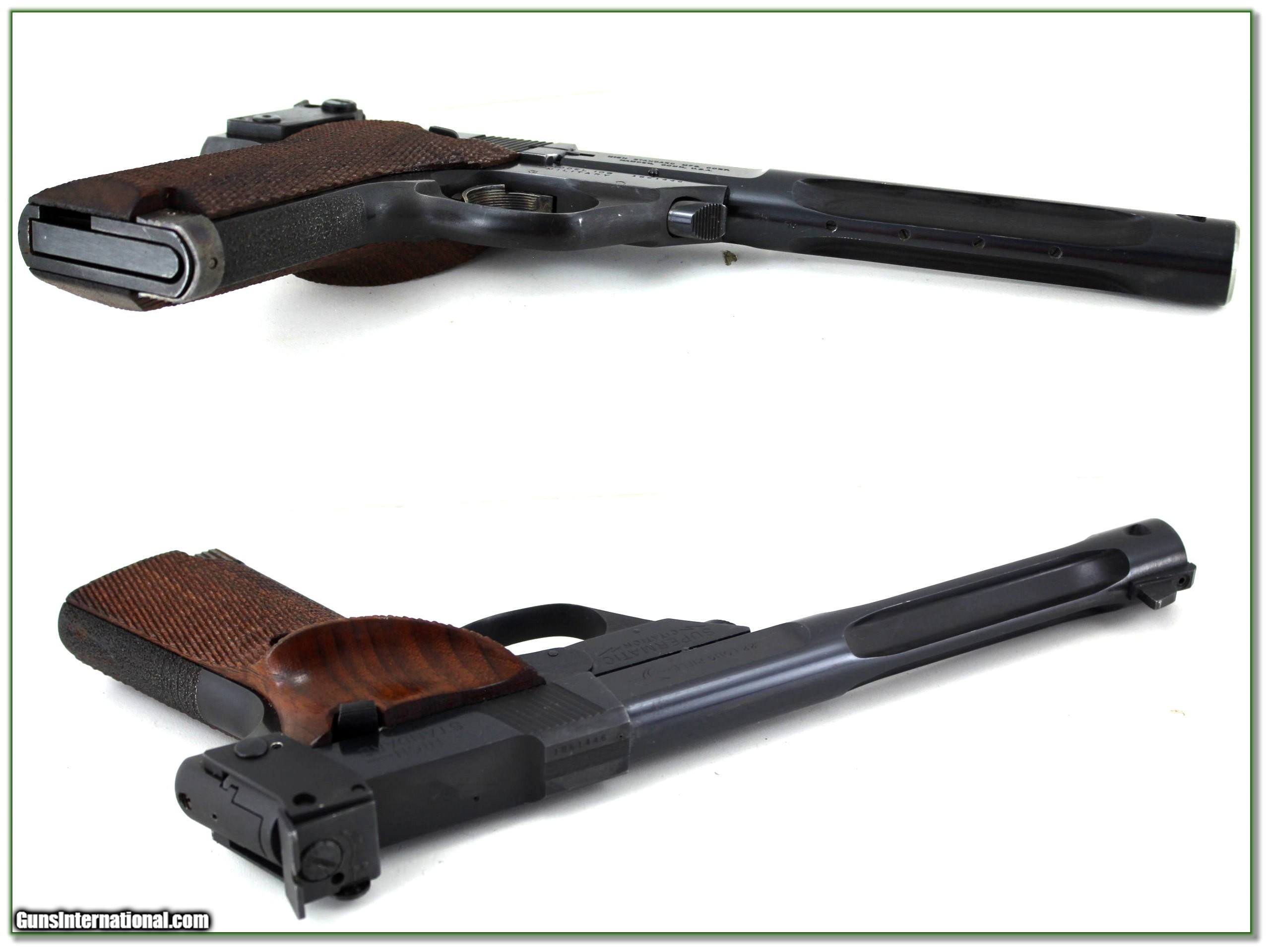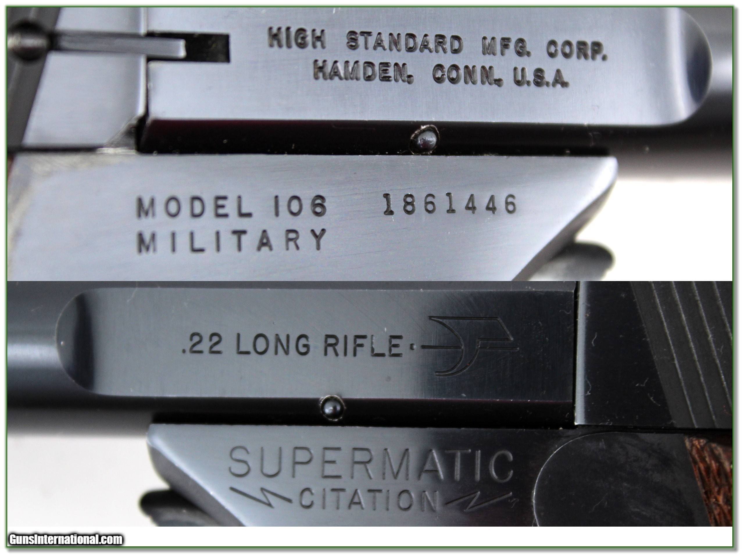 Description: Collectors, this is an excellent condition all-original LeFever GE Grade 12 Collectors, this is a top collector condition High Standard Model 106 Military Supermatic Citation 22LR. It has a 7.25in heavy fluted barrel and if fired, not more than a few rounds. I am selling this one on consignment and as such lay-a-way can’t be used. It does of course have the standard 3-day inspection. Shipping and insurance is $39. Please email me with any questions or larger pictures. (Consign your quality firearms with Shooting Investments for only 12%! Let me know if you have any you would like to sell!) 22-1080 Payment: Payment is by Money Order, Cashier’s Check or Personal Check. I can now also accept Credit Cards (MasterCard, Visa, Discover & American Express) with a 3% convenience fee. Shipping: The shipping charge will be listed in each description. It is $49 for most firearms. Some heavy guns or those insured for over $2000 will be higher. Shipments to Alaska and Hawaii are higher because air shipment is required. Most firearms are shipped on Tuesday and Thursday and usually in 5 days of receipt of payment. We package all shipments carefully and insure them. Optics are shipped Priority Mail and most other non-firearm shipments are shipped First Class. Returns: Our return policy is simple. If for any reason you are not pleased with your purchase, you may return your item for a full refund of purchase price. Ammunition cannot be returned. It is important to us that you are happy. Guns cannot be fired or dissembled before returning them and they must be returned in the same condition as received. Notification of a return must occur within 3 days of receipt at your dealer. Shipping, convenience and dealer fees are not refundable and are the responsibility of the buyer. Lay-a-way: If needed, we offer a 60 day lay-a-way option on most firearms. It is 1/3 now, 1/3 in 30 days and 1/3 in 60 days. Lay-a-way firearm sales are final and cannot be returned. If a lay-a-way is not completed the first payment cannot be refunded. Consigning your firearms with Shooting Investments: We will help you get top dollar for your firearms. While most local guns shops charge 20% or more, our fee is only 12% with a minimum of $75. At your local gun shop it might take months to sell. Selling on-line provides instant access to thousands of interested buyers. You won’t find any other on-line dealer willing to sell your firearms for only 12% or listing every gun on 3 separate s. Selling through an House typically costs the seller 15% and the buyer an addition 15% (so 30%) and you have to wait several months to sell and longer to receive funds. If properly priced, we will sell your firearms within a few weeks. Send us an email or give us a call and we’ll explain how easy it is for you to get top dollar. Trading: Trading for us is really just buying your gun to re-sell. If you have a gun you want to trade, please email a picture and we will let you know what we can give for it. You will always get more if we sell it for you on consignment. SOLD |