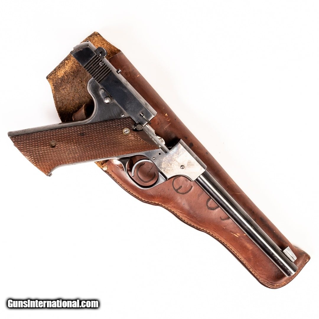 Description: Guns Listing ID: 408546 Offered for sale is a High Standard Model A, a vintage 22 LR pistol with outstanding accuracy and the looks and feel similar to that of a Luger. The Model A was introduced in the late 30s and makes an excellent collector‚‚s piece that‚‚s fun to shoot. This Model A is rated in good condition, with wear on the barrel. One 10-round magazine and a holster are included. Serial number: 792 SOLD Manufacturer: HIGH STANDARD Model: MODEL "A Caliber Info: .22 LR Condition: Used - Certified Barrels: 6.7 BARREL Finish: BLACK |