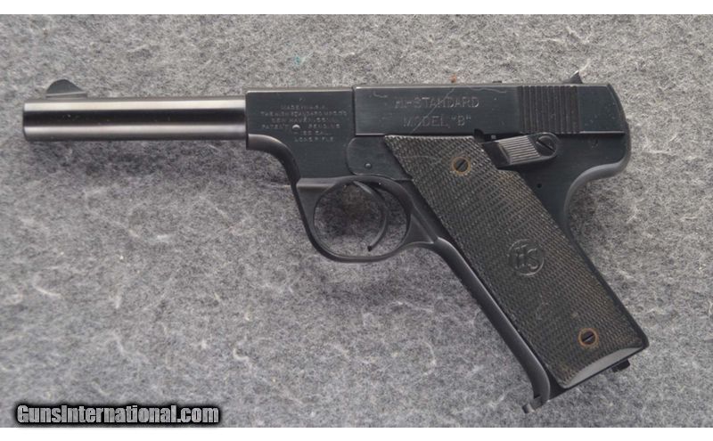 Description: This firearm is a High standard Model B chambered in .22 LR. it is a hammer less recoil operated semi auto target pistol in good condition with some minor cosmetic issues. .22 Long Rifle SOLD Chambers: Semi auto with a 10-round magazine. Metal Condition: Few noticeable handling marks. Barrels: 4.5" blued barrel. Triggers: DA. Sights: Notched windage adjustable rear, front fixed blade. Item Location: Sidney, NE |