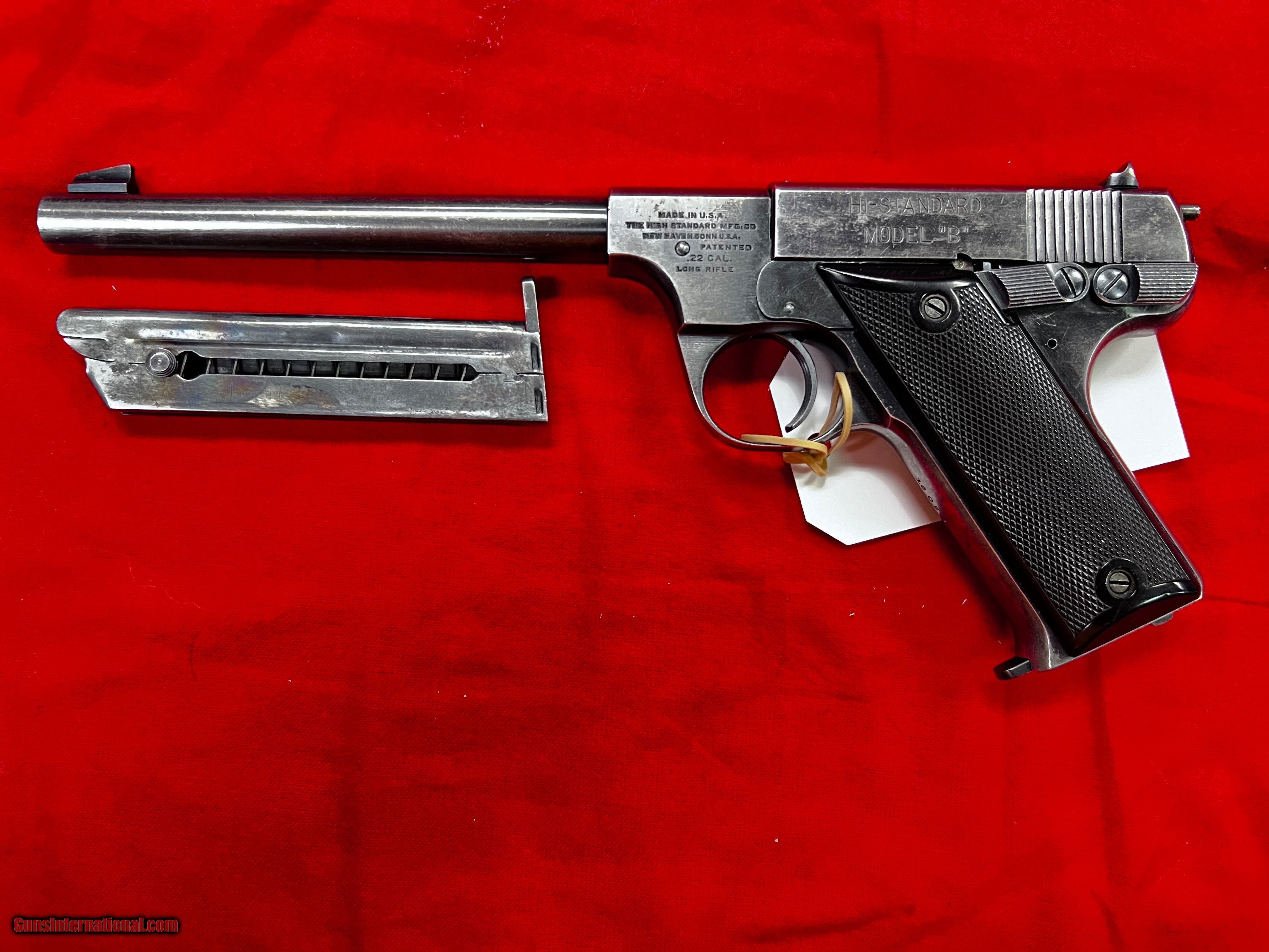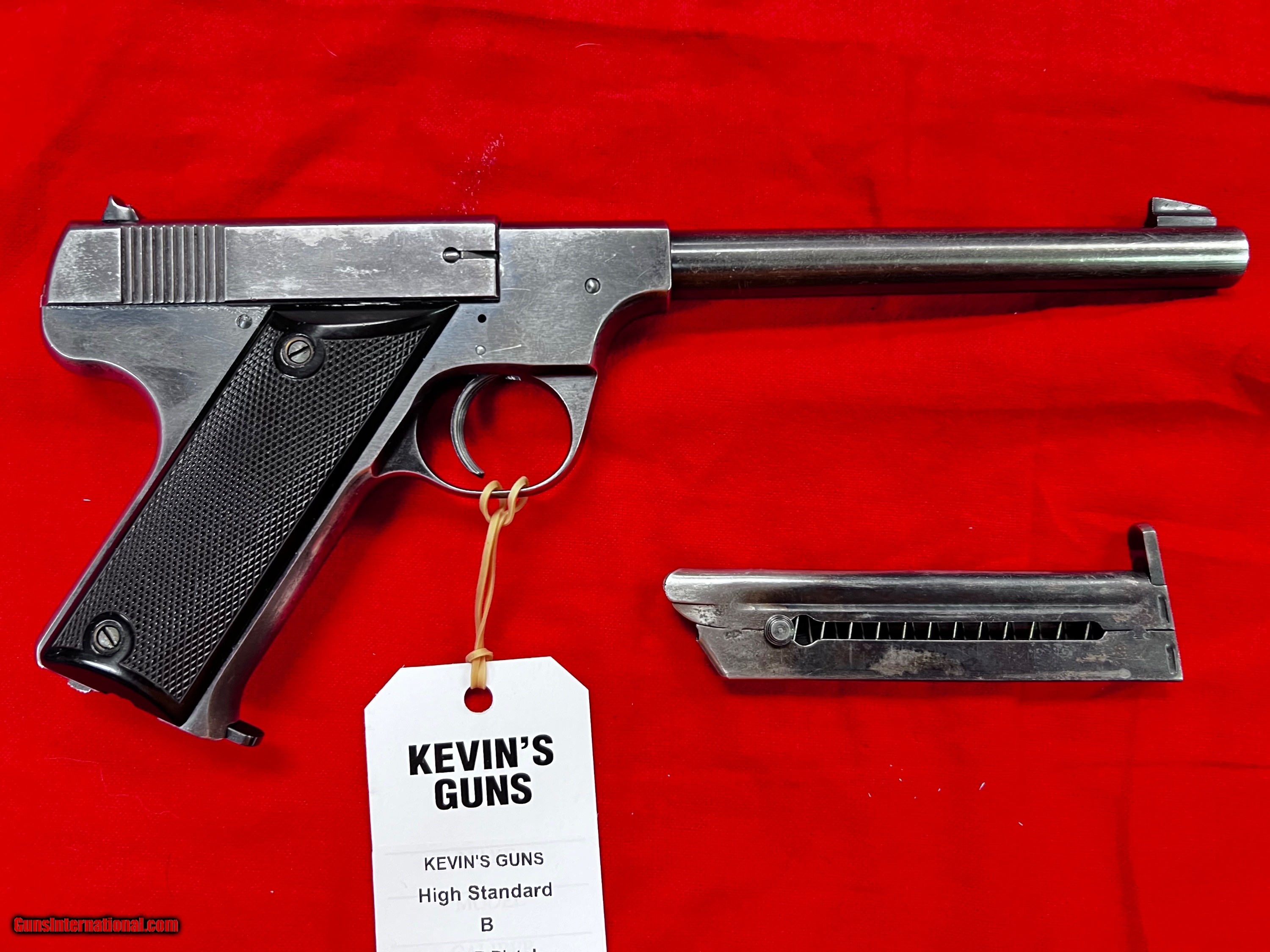 Description: Good overall High Standard Model B with two magazines SOLD |
