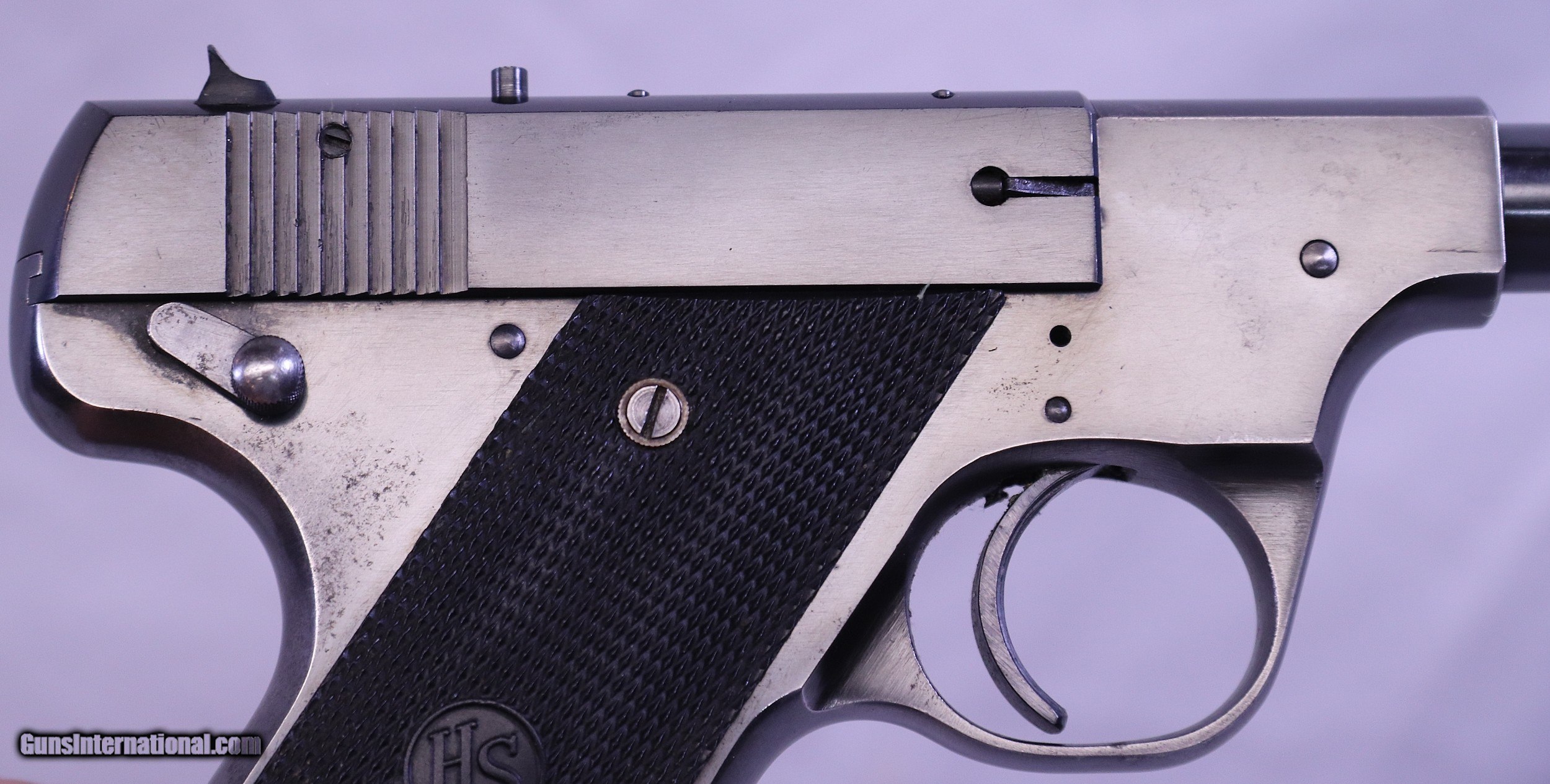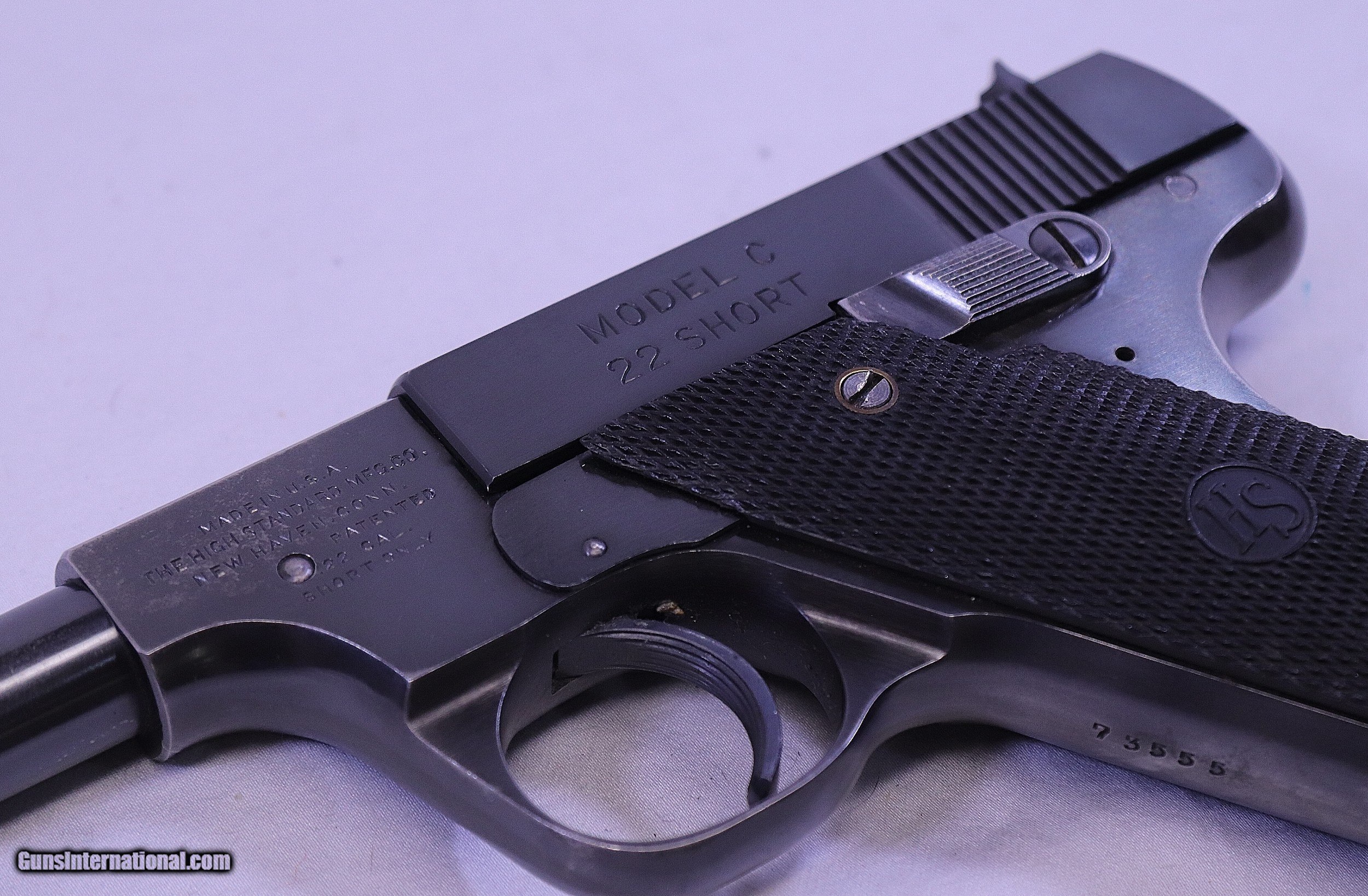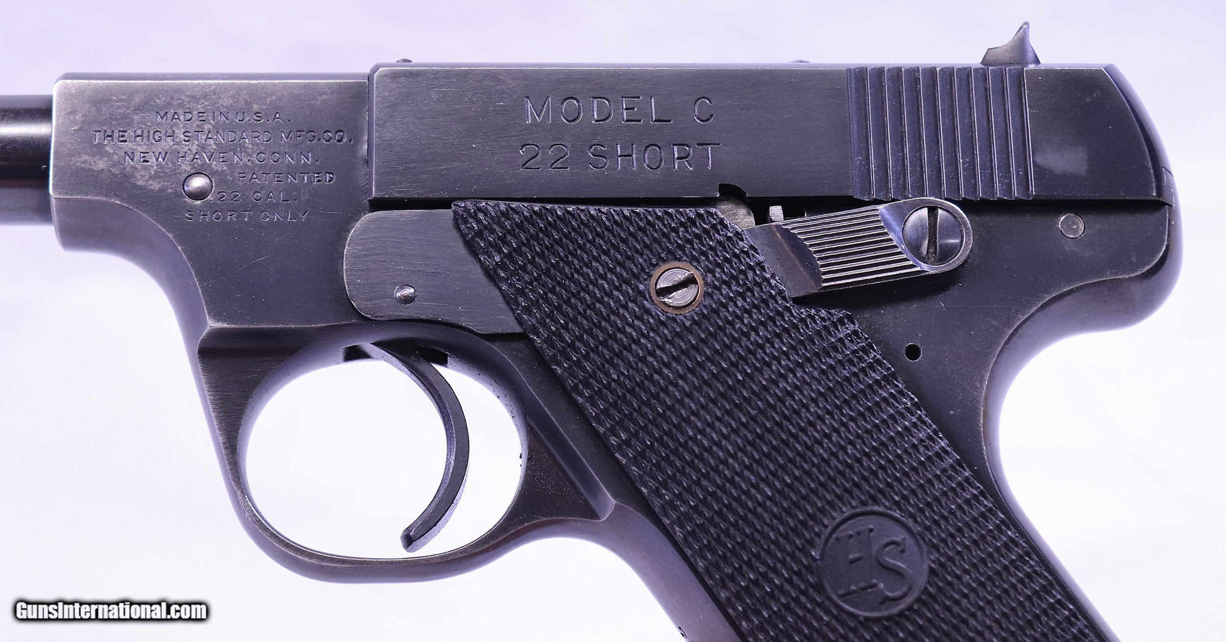 Description: This Little Plinker was has been well cared for and remains in much better than average condition. The Bore is Exc. and the action smooth and tight. The grips are in Exc. Condition. The metal surfaces show no rust or pitting with most wear on the gripstraps. Scattered flaking can be seen in the photos. I made it a point to photograph the flaws so that any surprise will be a pleasant one. This is a nice addition to a High Standard collection. .22 Short with a 4 ½” barrel. Serial Number: 73555, Mfg’d. c.1939 FFL Required Beaver Creek Arms TERMS & CONDITIONS Objective: As a collector of 35 years and Licensed Firearms Dealer since 1989 I have a clear definition of a satisfactory transaction. I will be paid as we agreed to, and you will be satisfied with your purchase. My goal is to establish a client list of satisfied repeat customers who will recommend me to other collectors. It’s just that simple. Exiled Saudi princes with secret funds needing change from an over paid purchase need not apply. Notice: ALL Federal, State, & Local firearms laws will be followed. I will take NO shortcuts in the process of a legal sale or transfer, so please don’t ask. SHIPPING: Normally shipments are made via U.S.P.S. Priority Mail, Insured, with a return receipt. Typical Packing, Shipping and Insurance cost for a handgun is $30.00, and for a Long Gun is $45.00. Please make Checks Payable to: Steve Clark 380 Beaver Creek Rd. Dillsburg PA 17019 Availability: All items are in stock and available for immediate shipment. Please call or email and an Item will be held up to a week with your Name, Address, & Phone Number. Items marked Reserved are being held for awaiting payment or on layaway. If you are interested in a reserved item, please call or E-Mail to be placed on a backup list. FIREARMS: Modern firearms, post 1898, can only be shipped to a Type 01 Federal Firearms License address. Curio-Relic firearms, as defined by the BATF list, can usually be shipped to a Type 03 Collectors License address. Some states have additional restrictions such as CA, CT, DC, IL, MD, NJ and NY. A signed valid FFL license copy either mailed or emailed will be required for shipment to only the license address. Antique firearms, pre 1898 do not require a Federal License. For purchase, a copy of a Government Issued Identification (Driver’s License, Etc.), showing date of birth and current address will be required. GUARANTEE: Your complete satisfaction is assured, see objective above. If you are not satisfied, please contact me within 3 days of receipt. Please don’t fire the weapon, safety, function and accuracy are NOT Guaranteed. Any weapon offered by Beaver Creek Arms is never test fired nor is there any representation the gun is functional and safe to fire. These guns are sold for collectors and only represented as used firearms that must be checked by a competent person, observe all the necessary safety precautions prior to attempting to load and fire one of these weapons RETURNS: Returns must be made within 3 days of receipt. They must be received in exactly the same condition with no parts exchanged. If it has been altered, damaged, or fired, a refund will not be made. Packing, shipping and insurance cost will not be refunded. All layaway purchases are returnable for merchandise credit only. PAYMENT: Bank check, Personal check, and Money Orders are preferred. Visa and MasterCard are accepted with a 3% processing fee. For Visa and MasterCard orders please provide the account number, code number, expiration date, name on card, phone number and card billing address. This information can be phoned in, or E-Mailed. All orders must be paid in advance, C.O.D. orders are not accepted. Checks, both Bank and Personal must clear before the order will be shipped, usually a 2 week delay. LAYAWAYS: A 20% deposit is required. Balance is due in 60 days. Deposits are non-refundable and are forfeited after 60 days. Layaway sales are returnable for merchandise credit only. SALES TAX: Pennsylvania state sales tax is 6% for in state purchases. The payment of other states sales tax, if applicable, for shipped items is the buyer’s responsibility. DISCREET: Client information will remain Confidential. Your privacy is protected. SOLD Curio/Relic: Yes |