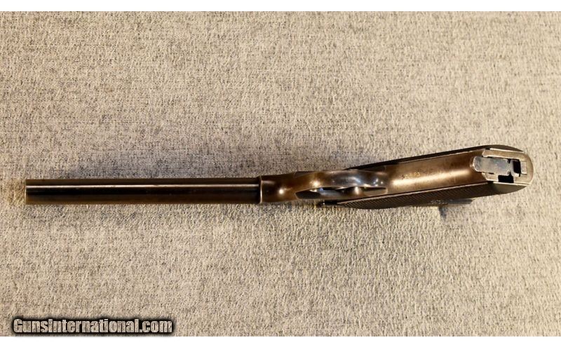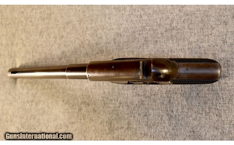 Description: This is a pre-owned High Standard model C manufactured in 1936 in .22 Short, one of 4700 made from 1936 to 1942 .22 Short SOLD Curio/Relic: Yes Metal Condition: Approximately 70% of the blue remains with patina on the metal and wear consistent with the age of the pistol Wood Condition: "Good overall condition with noticeable handling wear but no cracks, chips or splits Bore Condition: Clean with strong lands Barrels: 6 3/4 Butt Pad: Checkered walnut grips Weight: 2 lbs. Sights: "Blade front, U-notch rear Item Location: Glendale, AZ |