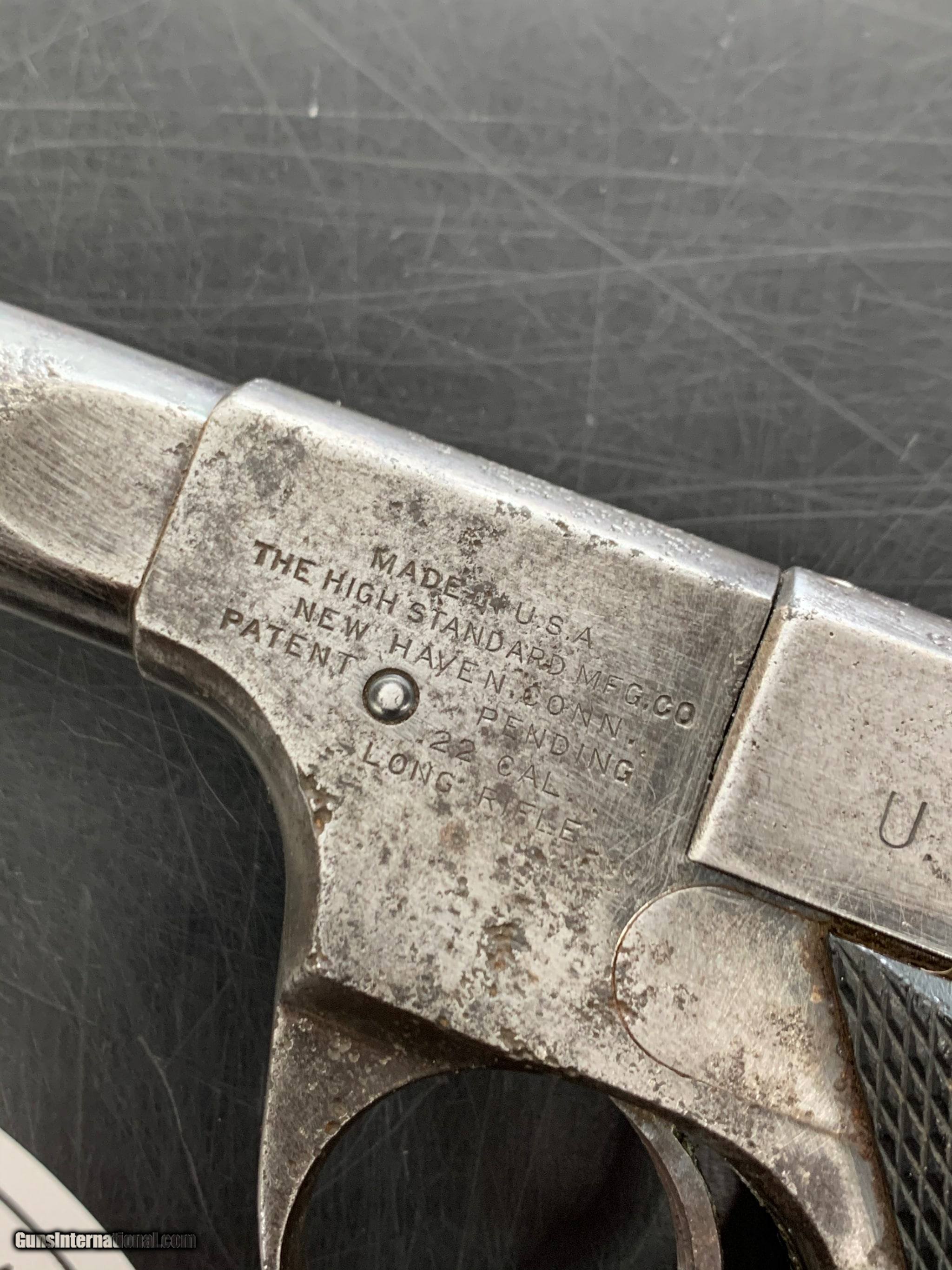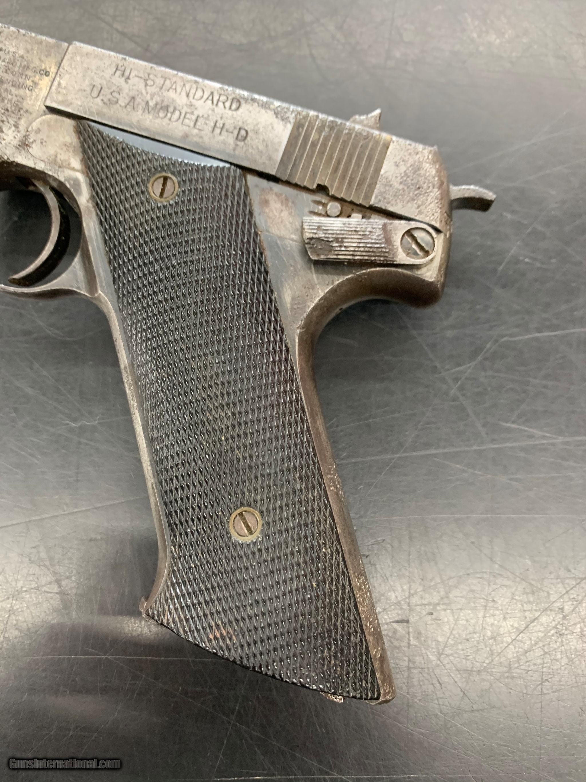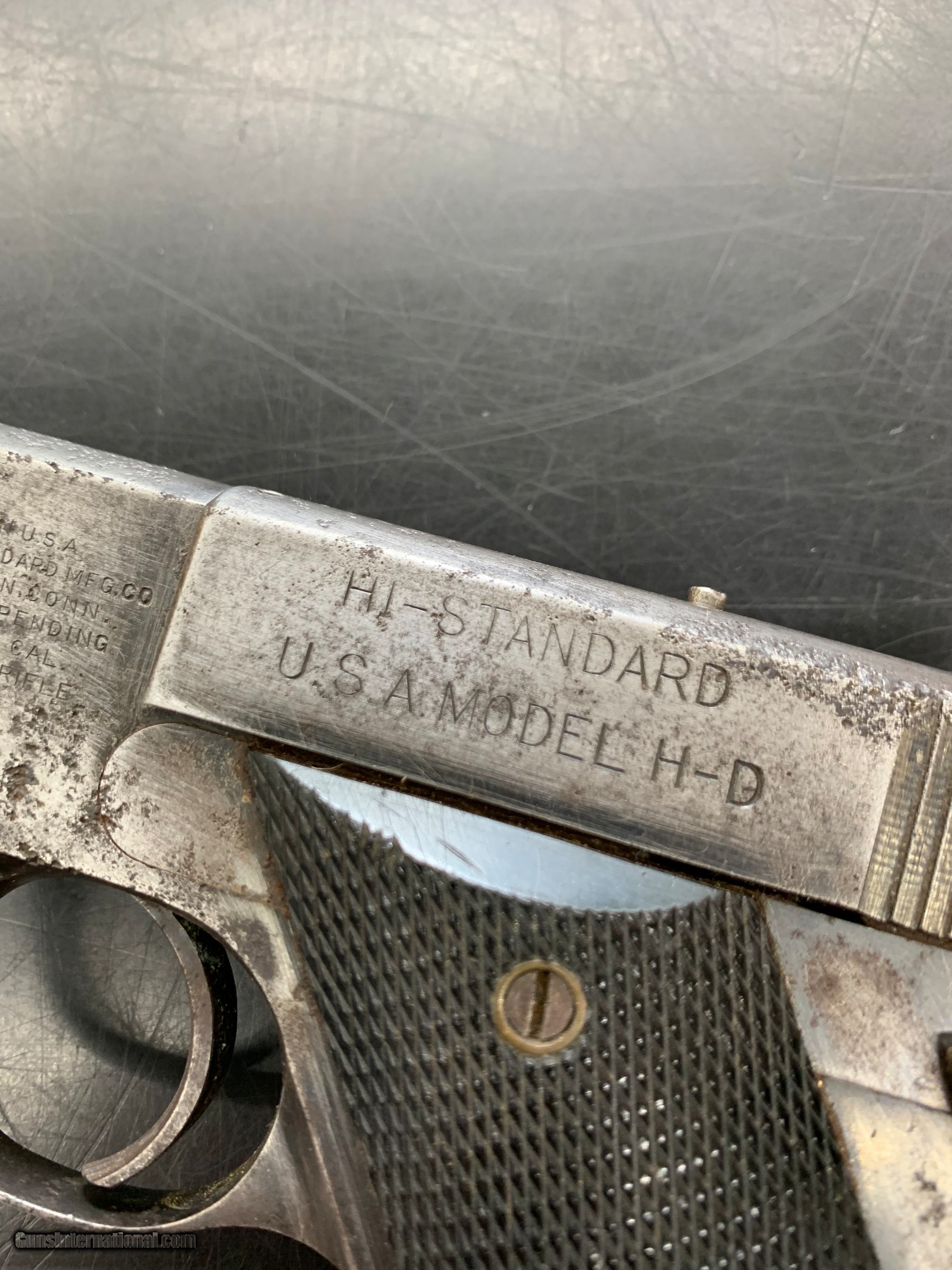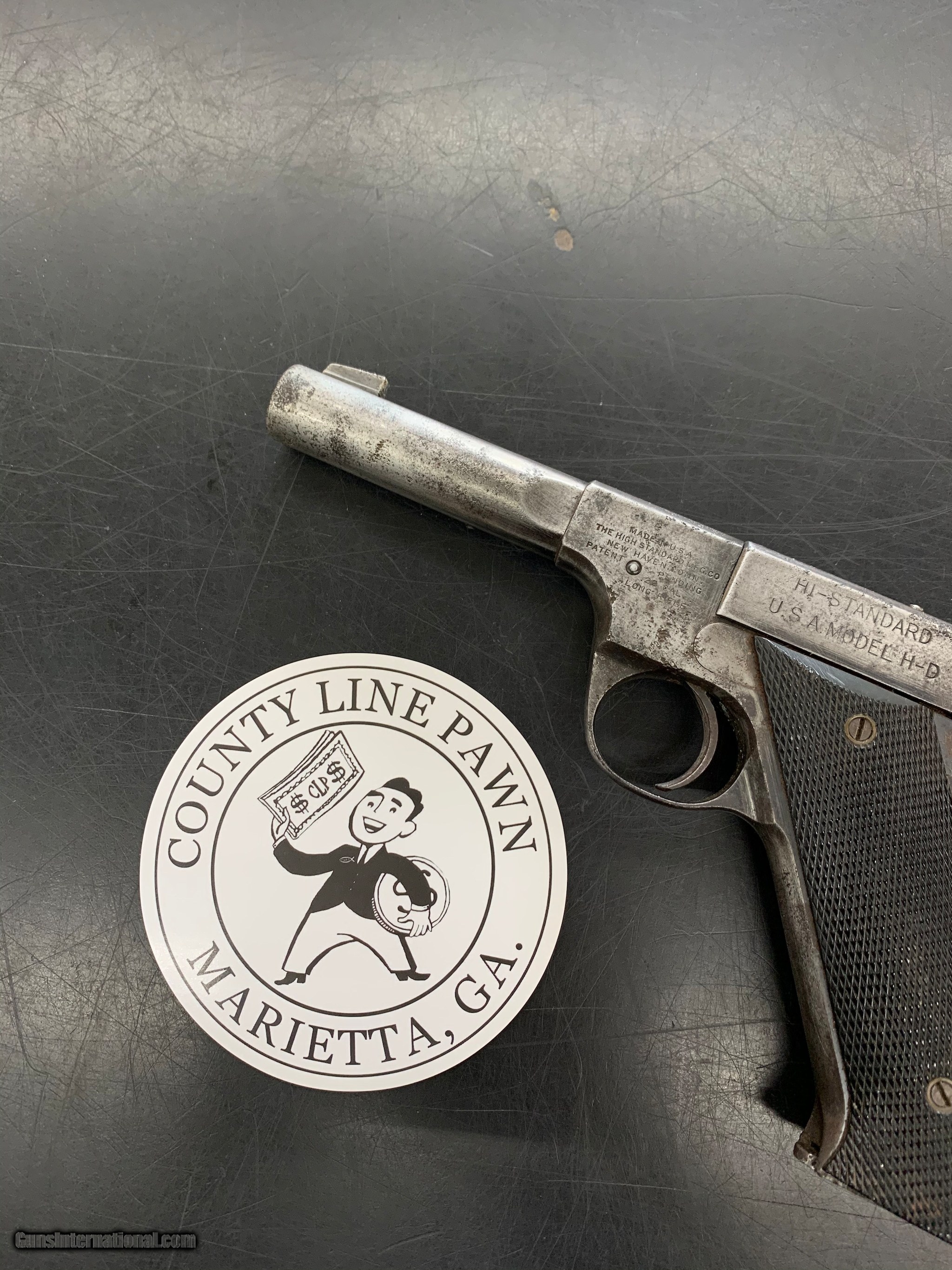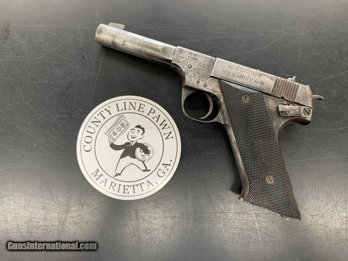Description: 1940s Hi Standard US H-D Great Condition All Matching COUNTY LINE PAWNSHOP 770-924-2452 5060 Canton Road, Marietta GA 30066. ://countylinepawnshop/ SOLD Manufacturer: HIGH STANDARD Model: model h-d military Caliber Info: 22 LR Condition: used Barrels: 4.5 BARREL Finish: STEEL |