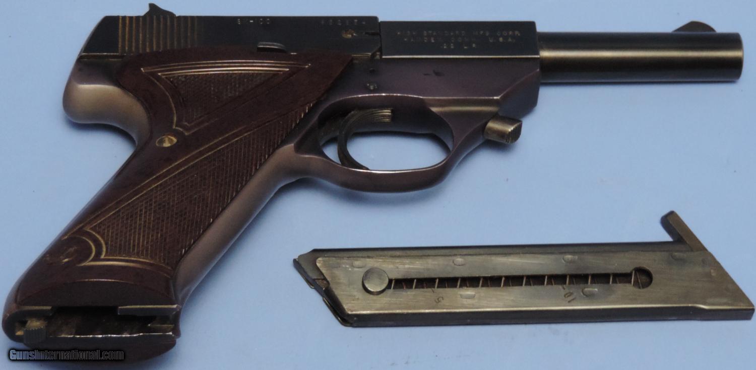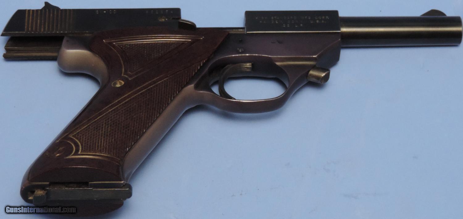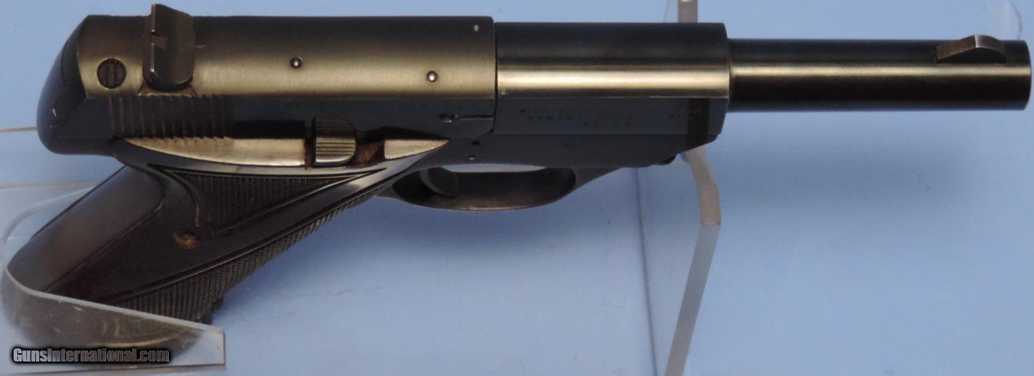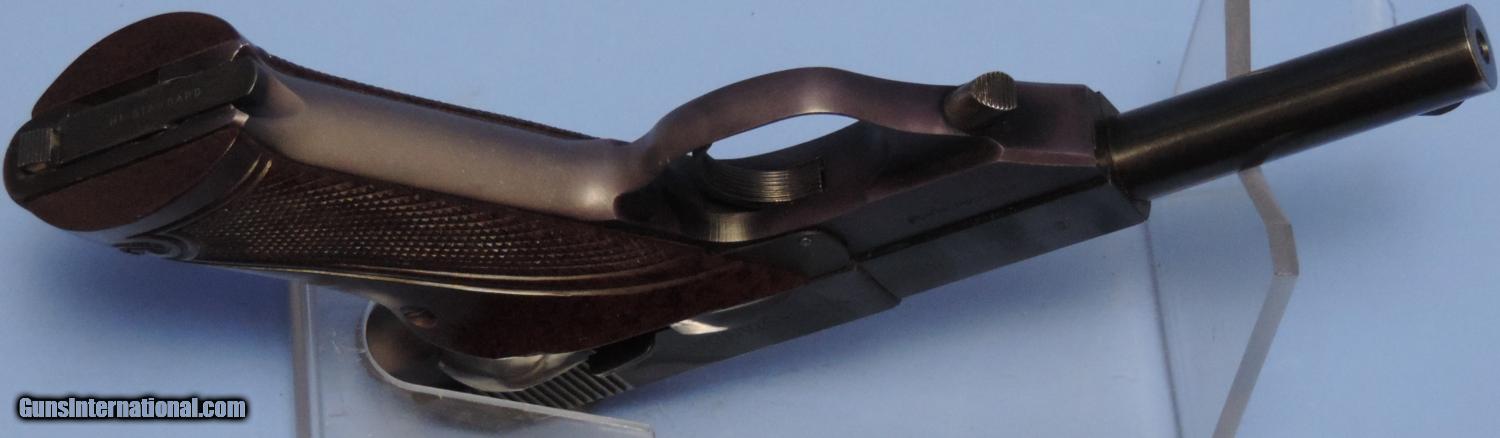 Description: Inv. 5635 High Standard Model SK-100 Lightweight, Caliber 22lr, Serial Number 5625XX. Collector grade. This is the one with the alloy frame. The condition is a sure 99++% of the original factory finish. The only wear appears to be some very slight muzzle wear and that's it. The grip straps show no signs of thinning. There is no evidence of use anywhere on the gun. The thumb rest target grips are flawless. The grip screw is unmarred. The bolt face and feed ramp are spotless. The bore is as pristine as the rest this beauty. The rifling, razor sharp, sunshine bright without even a hint of graying. A real keeper. $495 To purchase this firearm or if you want to request more information contact us at: Email ckgunsymail Phone 201-512-0002 Cell 201-575-6838 FAX 201-215-4759 We accept most major credit cards. Prices shown are Discounted 3% for Cash or Check. The buyer must be familiar with all the laws governing the purchase and the ownership of firearms in their own city and state. The Yankee Armorer, Inc is not responsible for any failure to comply with or observe these laws. The Yankee Armorer, Inc will only ship after full payment and receipt of all required documents. Shipping: Add $35.00 for handguns, $45.00 for long guns. New Jersey buyers are subject to a 7% sales tax. The Yankee Armorer, Inc offers a 3 day inspection period with full refund upon return of intact firearm and in the original condition. The Yankee Armorer, Inc offers a no interest lay away program - 25% down; 25% in 30 days; 25% in 60 days; and full payment in 90 days. Any violation of this policy is subject to restocking and forfeiture of all payments. Any variation from this policy must be agreed to in advance. Unshipped Cancelled sales are subject to a 20% restocking fee. Be advised that all firearms sold by The Yankee Armorer, Inc. or the Gun Exchange, LLC (SELLER) are sold as collector’s items. They have not been fired or tested for safety and must be examined by a license gunsmith prior to use. By purchasing any item from the (SELLER), you are agreeing to hold the (SELLER) free from any damages or lawsuits of any nature. Any item left for transfer or storage will be charged to $25.00 per month, per item from the day of its receipt. Any variation from this policy must be agreed to in advance. Store hours 10:00 am to 5:00 pm Tuesday -Saturday. It's always best to call for appointment. Store 201-512-0002, cell 201-575-6838. SOLD |