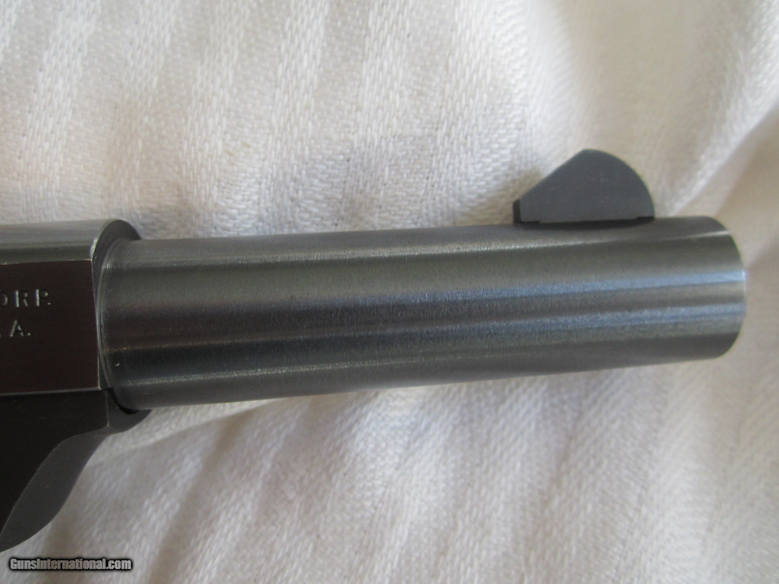 Description: A nice pistol, made in 1968 with the metal in 99% condition and the wrap-around plastic type grip in as new condition It has a 4 & 1/2" barrel.. It is a take down model and it comes with the original box and factory papers. The condition of the box is 60-70%, looks decent and is all there.The pistol looks about new and has seen little if any use. A NO interest payment plan is available See more High Standards , antique pistols, swords, etc. at "ROMSEY". SOLD Manufacturer: High Standard Mfg. Corp., Hamden, Conn. USA Model: M 101 Duramatic Serial Number: 2018866 Barrel Length: 4 & 1/2 Caliber Info: .22LR Bore: rifled Condition: 99% Metal Condition: 99% Wood Condition: grips-99% Bore Condition: bright/shiney Barrels: one Barrel Type: round Action: semi-automatic Triggers: one Stock: plastic grips Finish: blued Sights: front & rear Manufacture Date: 1968 Engraving: none Extras: box & papers Case: Nice tan suede zip up case Item Location: San Diego,California |