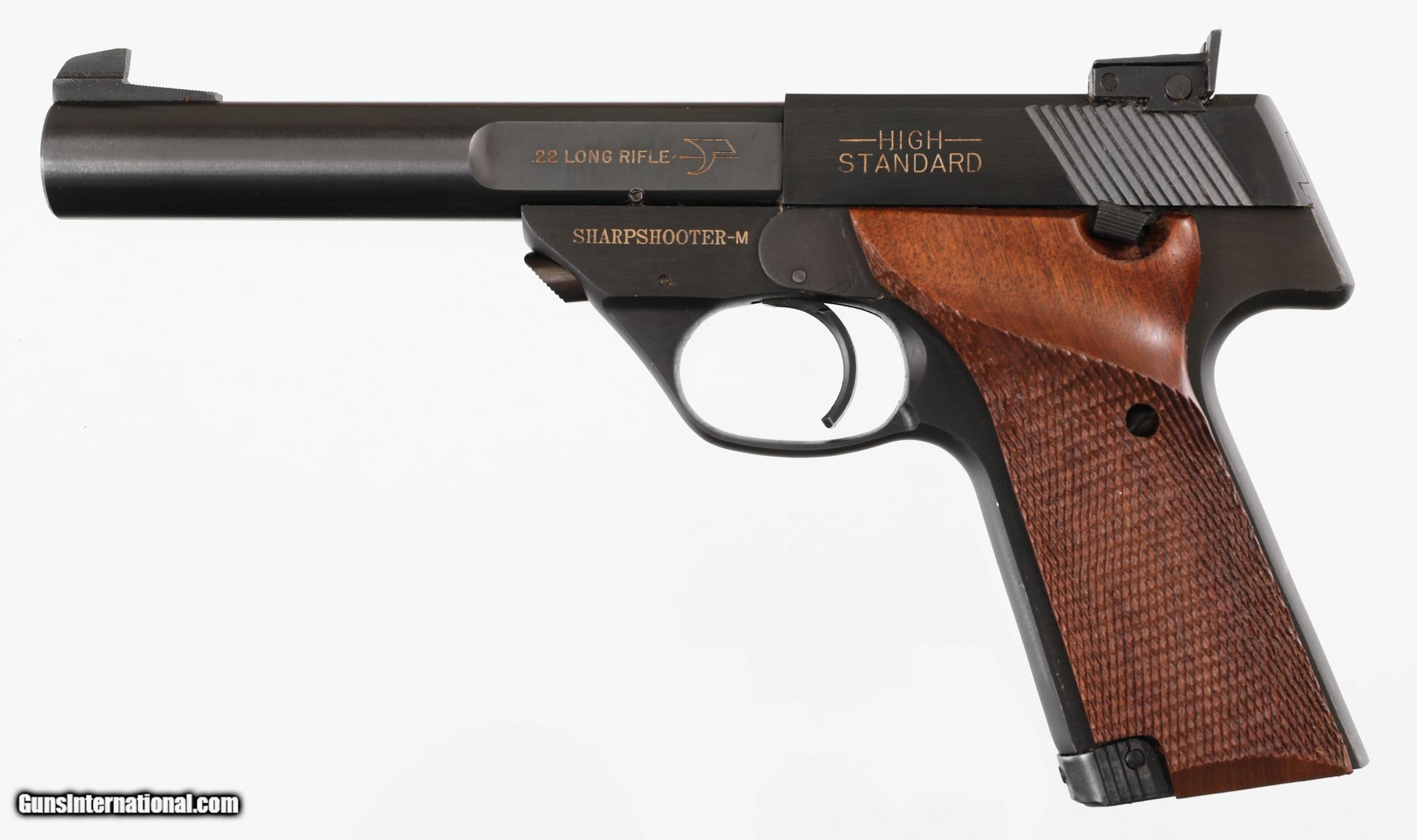 SOLD Handgun Caliber: .22 Long Rifle Manufacturer: HIGH STANDARD Model: SHARPSHOOTER-M Serial Number: ML600?? Barrel Length: 5 1/2 Condition: EXCELLENT |