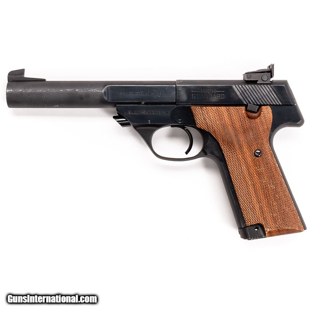 Description: Guns Listing ID: 252618 The High Standard Sharpshooter-M is a vintage .22lr handgun. High Standards were known for their impressive accuracy, rock-solid construction, and surprisingly affordable price tag. High Standard was founded in 1926, had its assets ed off in 1984, and eventually went under in 2018. 2 X 10 round magazines are included with this purchase. Serial number: ML49420 This pistol will make a great collector and plinker. SOLD Manufacturer: HIGH STANDARD Model: SHARPSHOOTER-M Caliber Info: .22 LR Condition: Used - Certified Barrels: 5.5 BARREL Finish: BLUED |